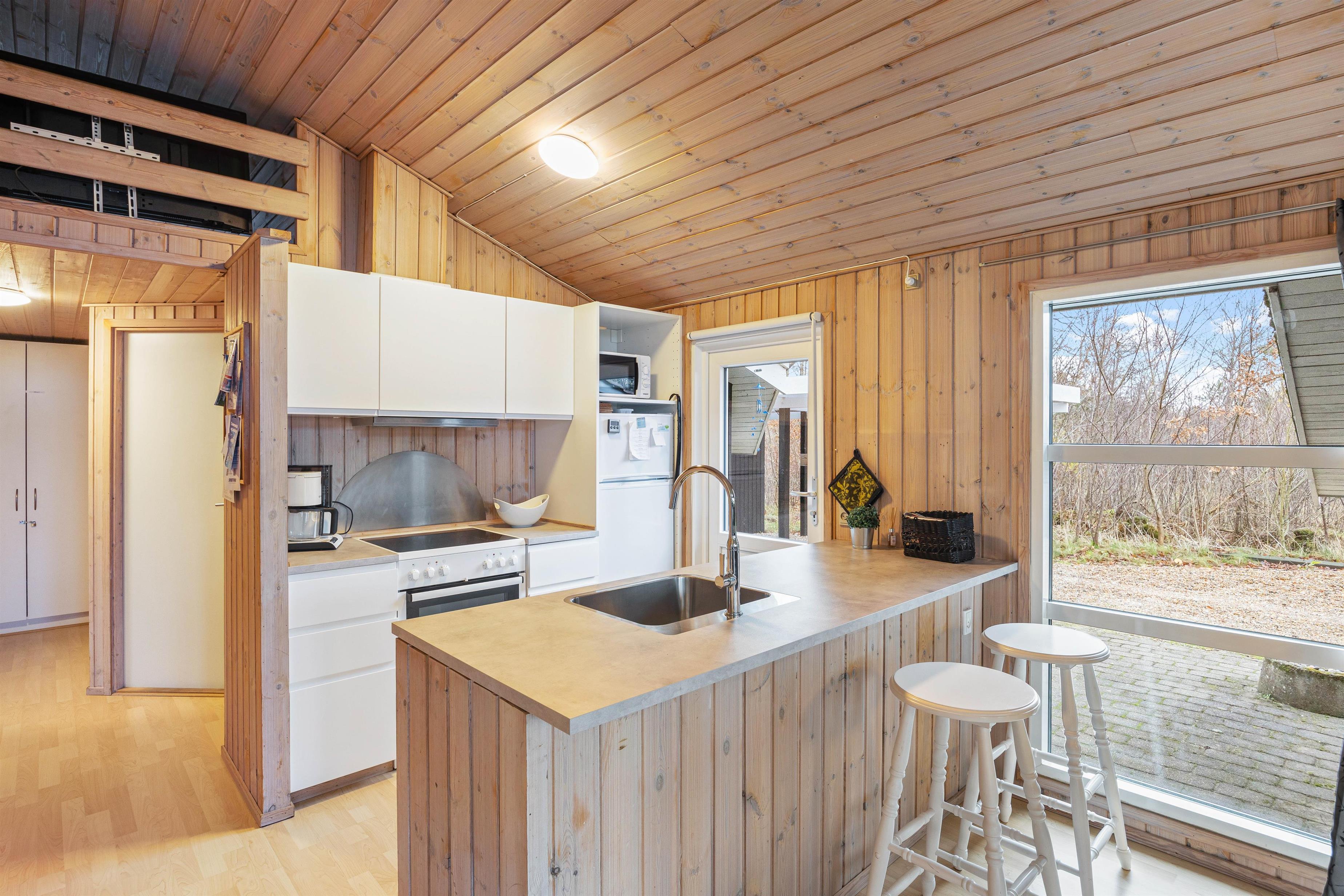 Samlingspunktet i denne feriebolig er den hyggelige og åbent forbundne opholds- og spisestue, hvor I helt sikkert vil tilbringe mange skønne timer sammen. Uanset om I er mest til at lave mad sammen i det veludstyrede køkken eller slappe af i den store sofa med en stor skål popcorn og jeres yndlingsfilm, som I kan streame med sommerhusets Chromecast, mens brændeovnen giver en dejlig varme.