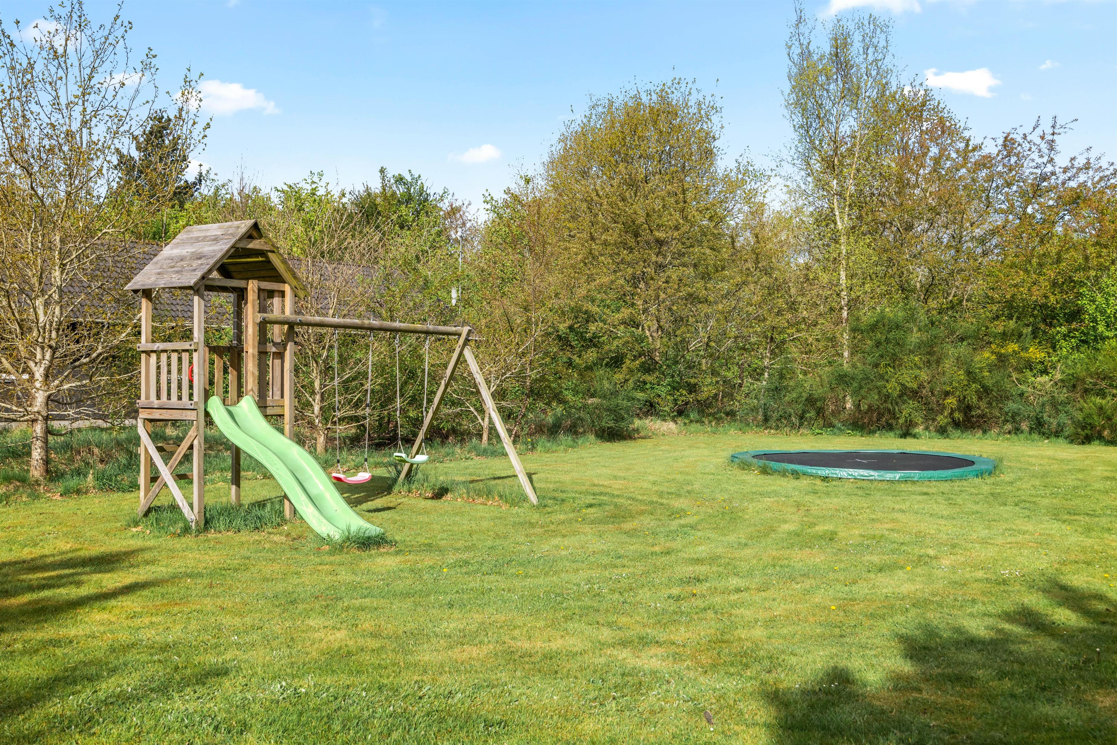 Her er der virkelig også tænkt på de mindste, som kan få brændt en masse krudt af i haven. Hvad enten det er i legetårnet med rutsjebane, gynge eller på trampolinen på den store græsplæne, hvor eksempelvis I kan spille bold.