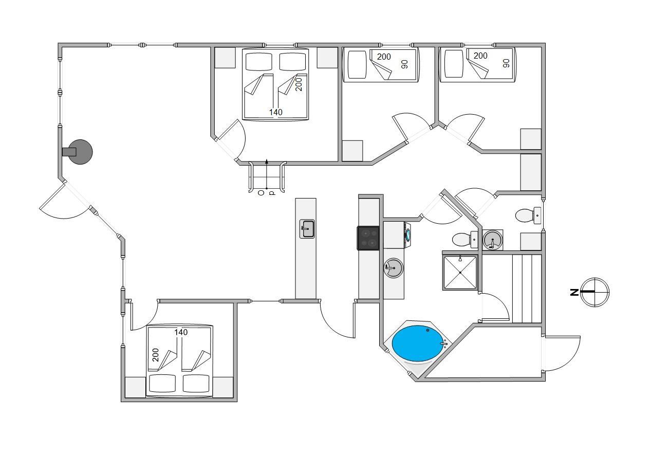 Feriehuset har et areal på 87m² og er opdelt i 4 gode soveværelser, 2 af dem med dobbeltseng og 2 med én enkeltseng. Rejser I med små børn, behøver I ikke medbringe en barneseng eller en højstol, da begge dele allerede er i huset.