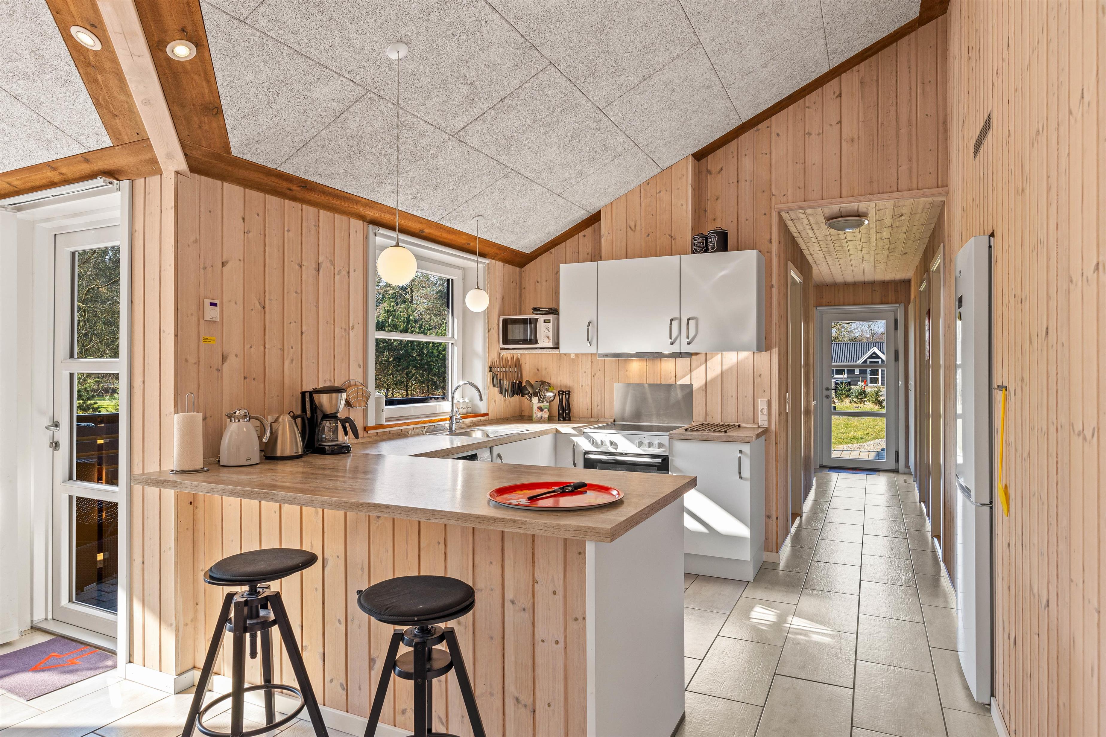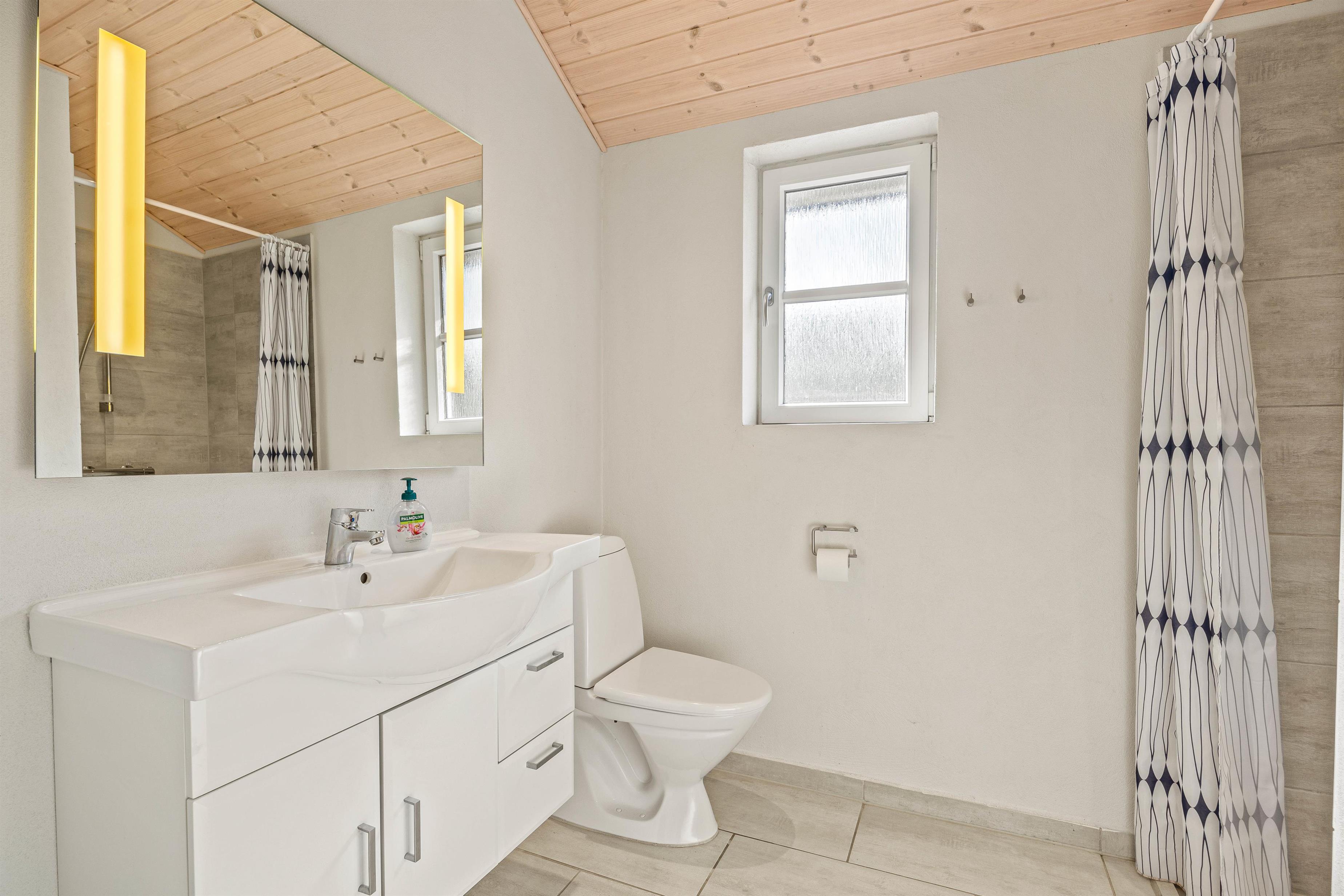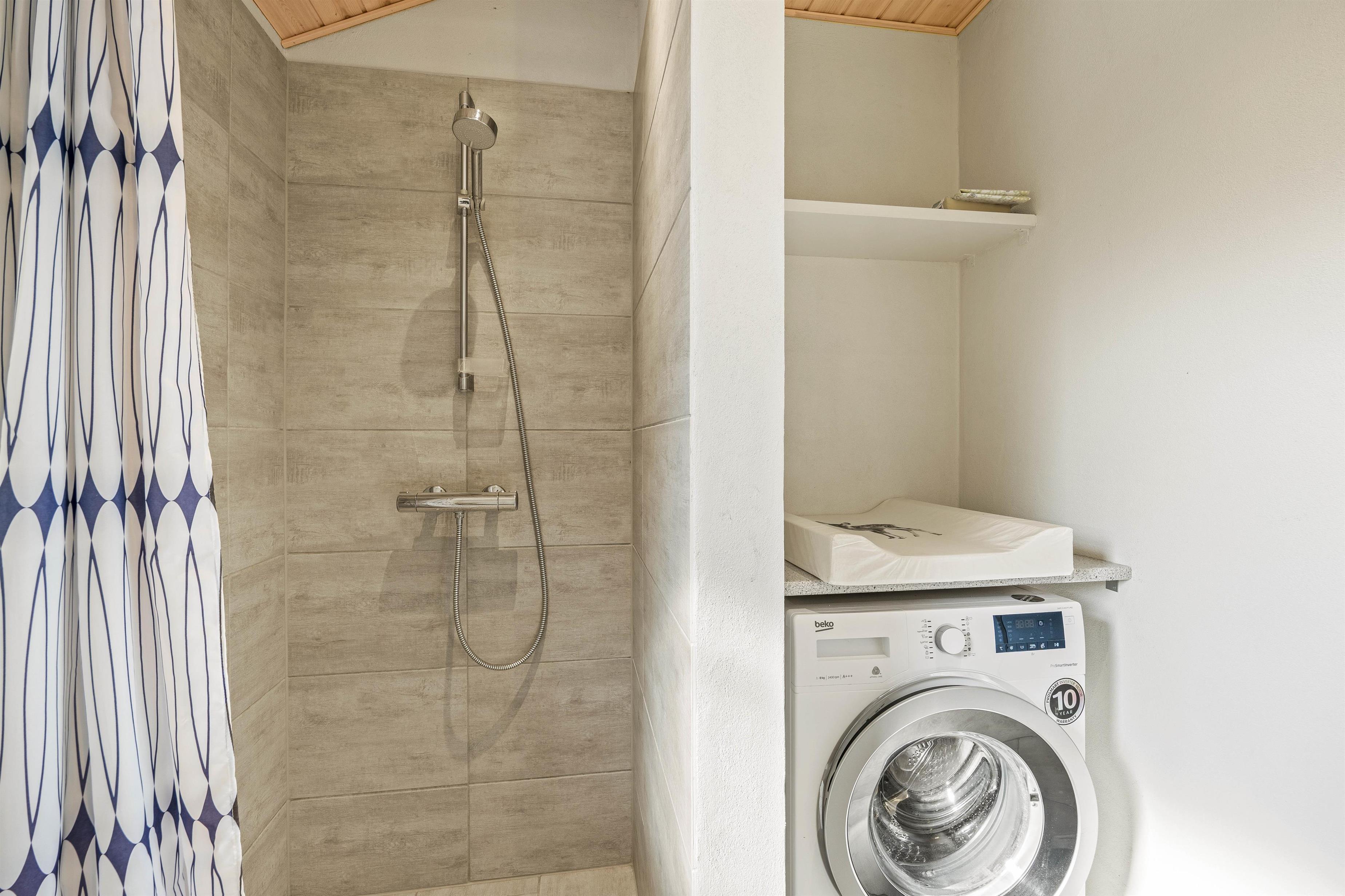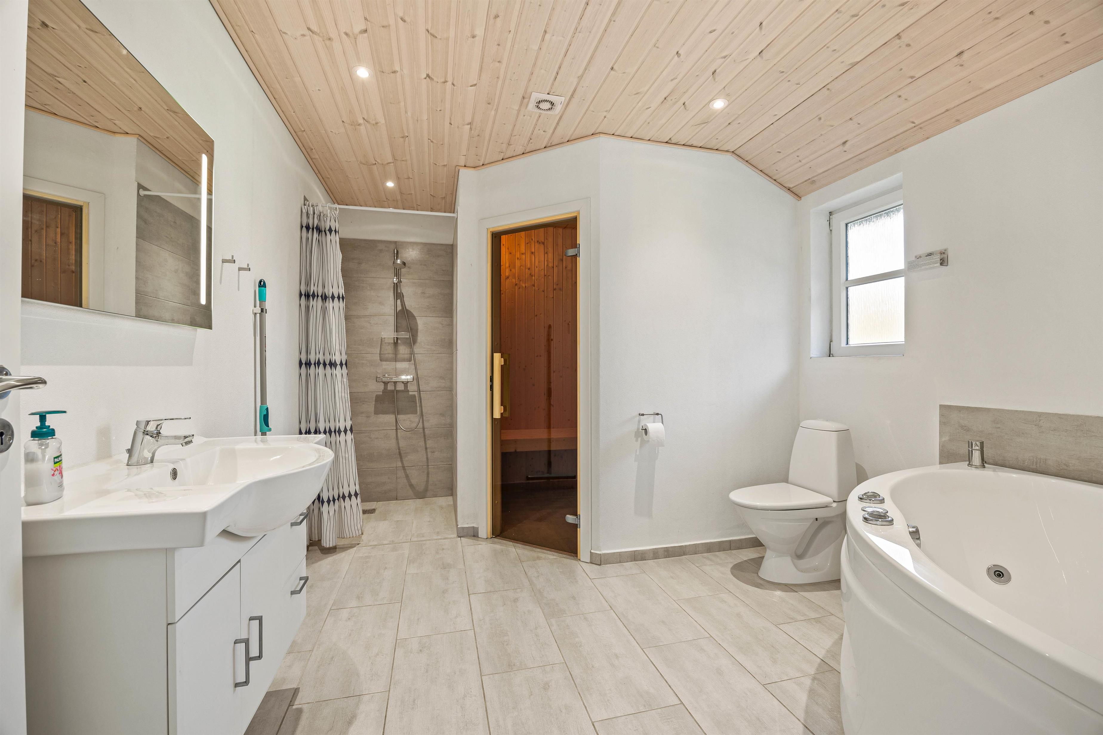 De 2 badeværelser sikrer, at alle har den nødvendige privatliv og komfort, I har brug for under opholdet. Det er også her I finder sommerhusets sauna og spa, hvor I kan blive varmet helt ind til knoglerne efter en lang gåtur i det skønne ferieland. Gulvvarme i hele feriehuset sørger for en behagelig varme.