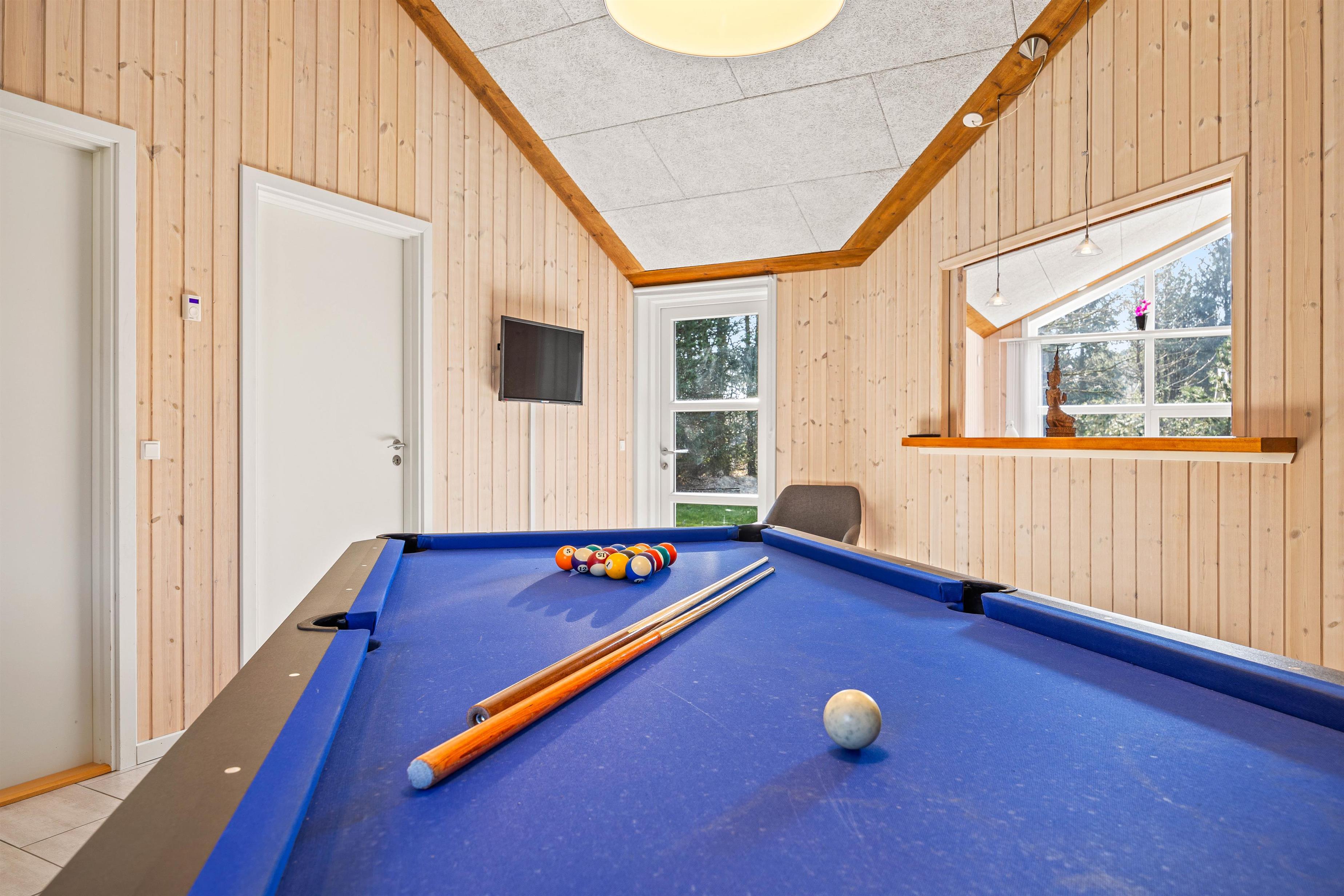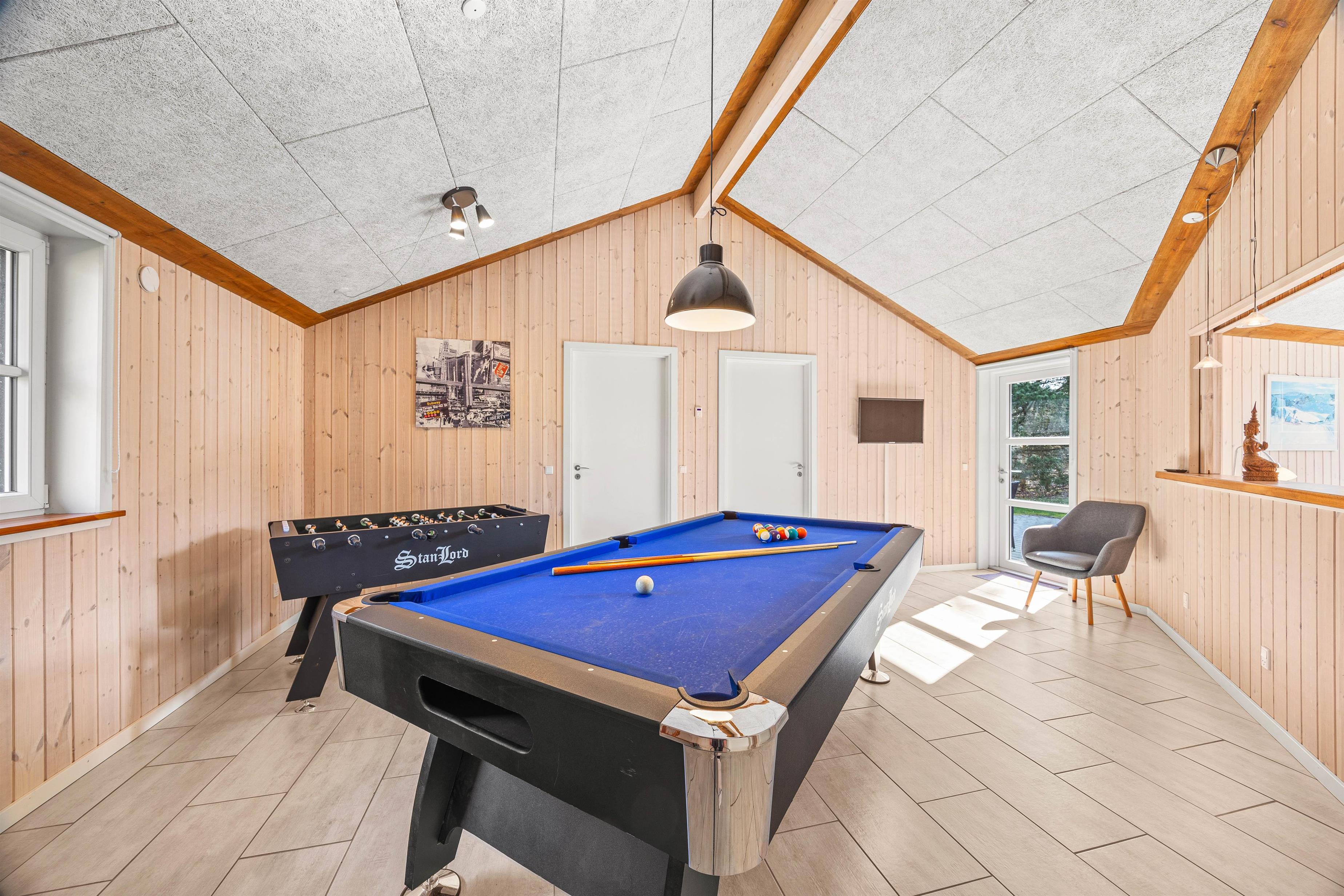 Dette 4-stjernede sommerhus i Jegum Ferieland er et ideelt sted for både afslapning og sjov. Her kan I finde ro i den private sauna eller spa efter en dag fyldt med oplevelser. For de konkurrencelystne af jer, er der både et bordfodbold- og billardbord til rådighed, hvor I kan dyste og nyde hyggelige stunder sammen.