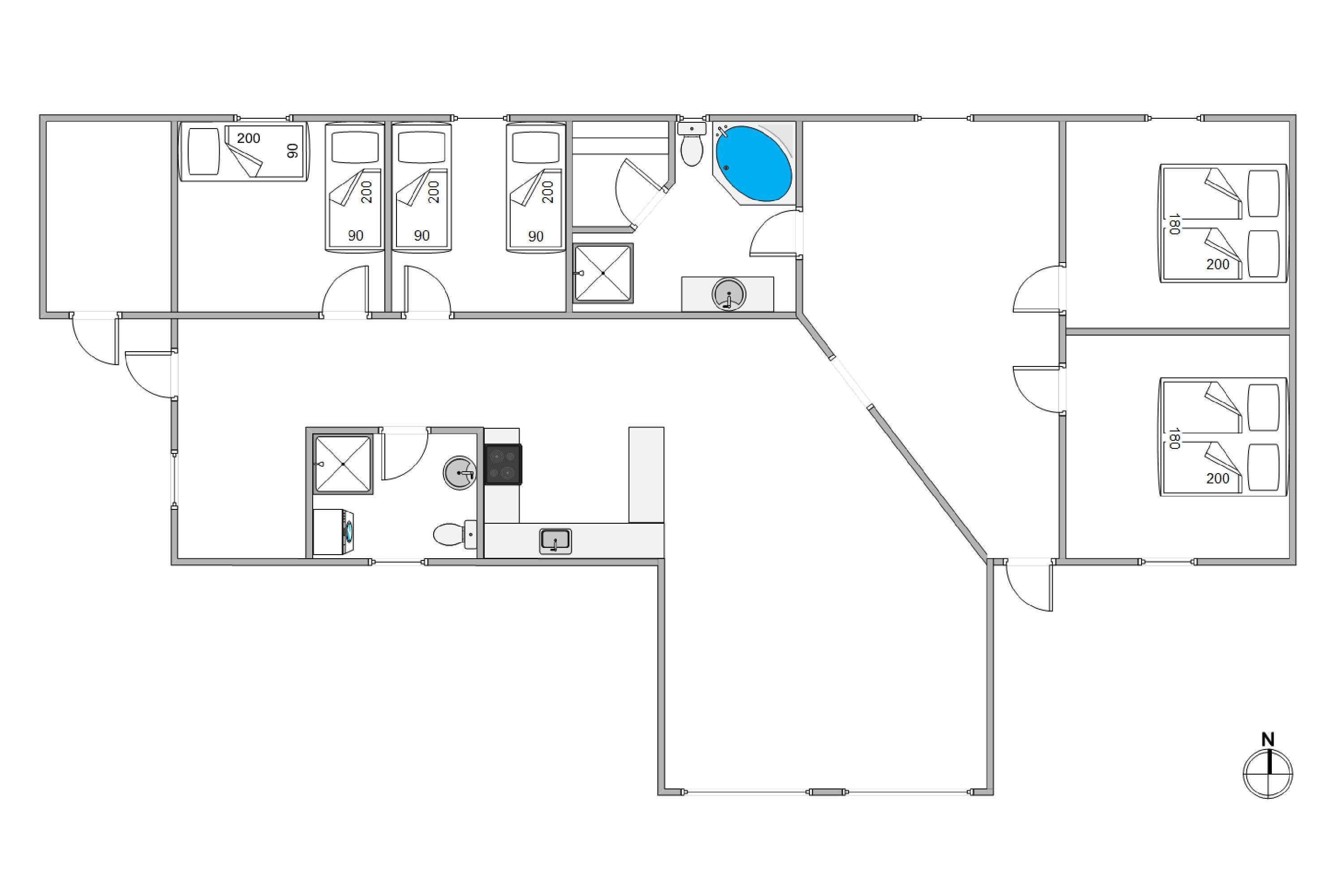 Sommerhuset har 4 soveværelser, hvoraf 2 er indrettet med dobbeltsenge og de sidste 2 soverum hver især har 2 enkeltsenge, så der er plads til hygge med den store familie eller vennerne.
