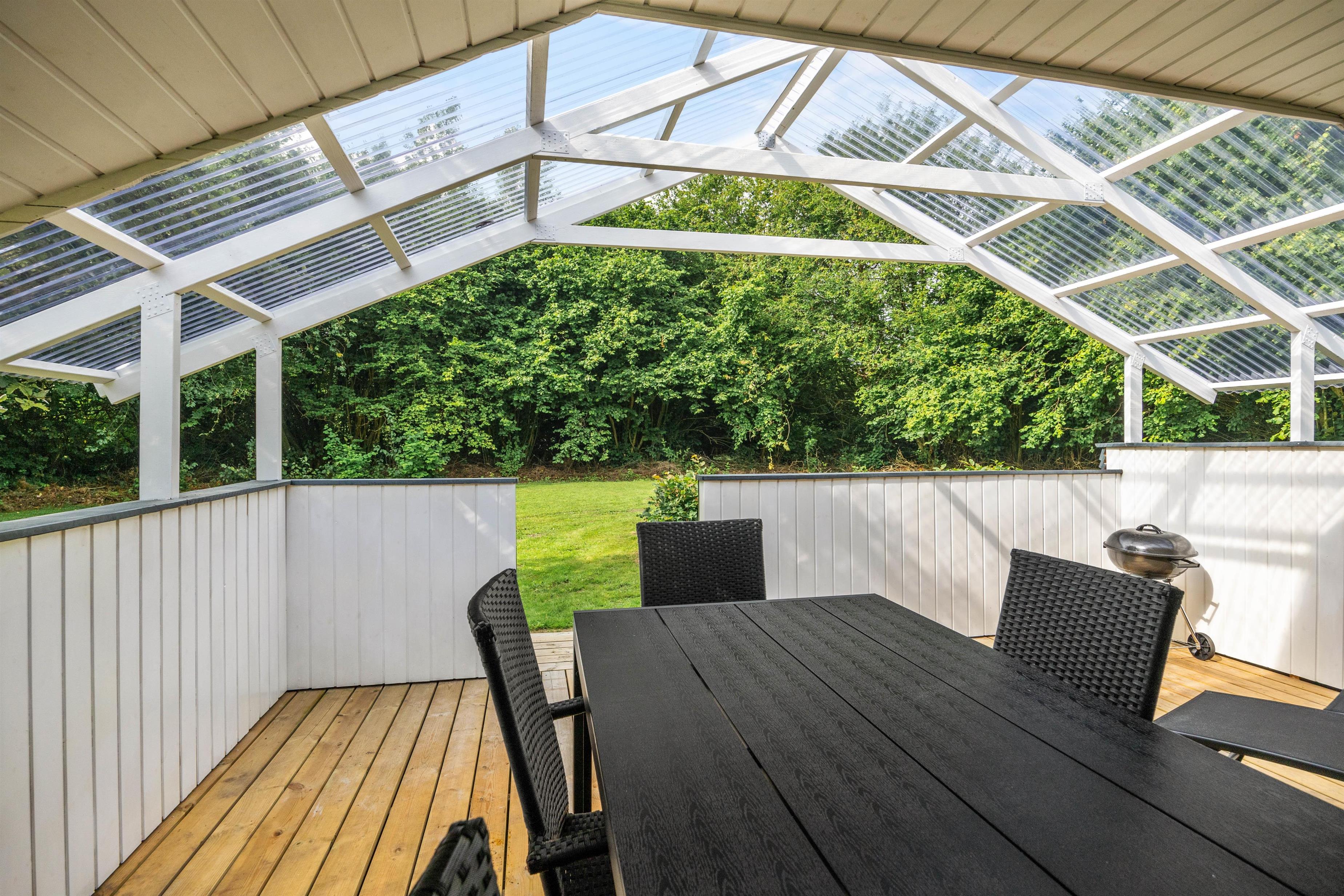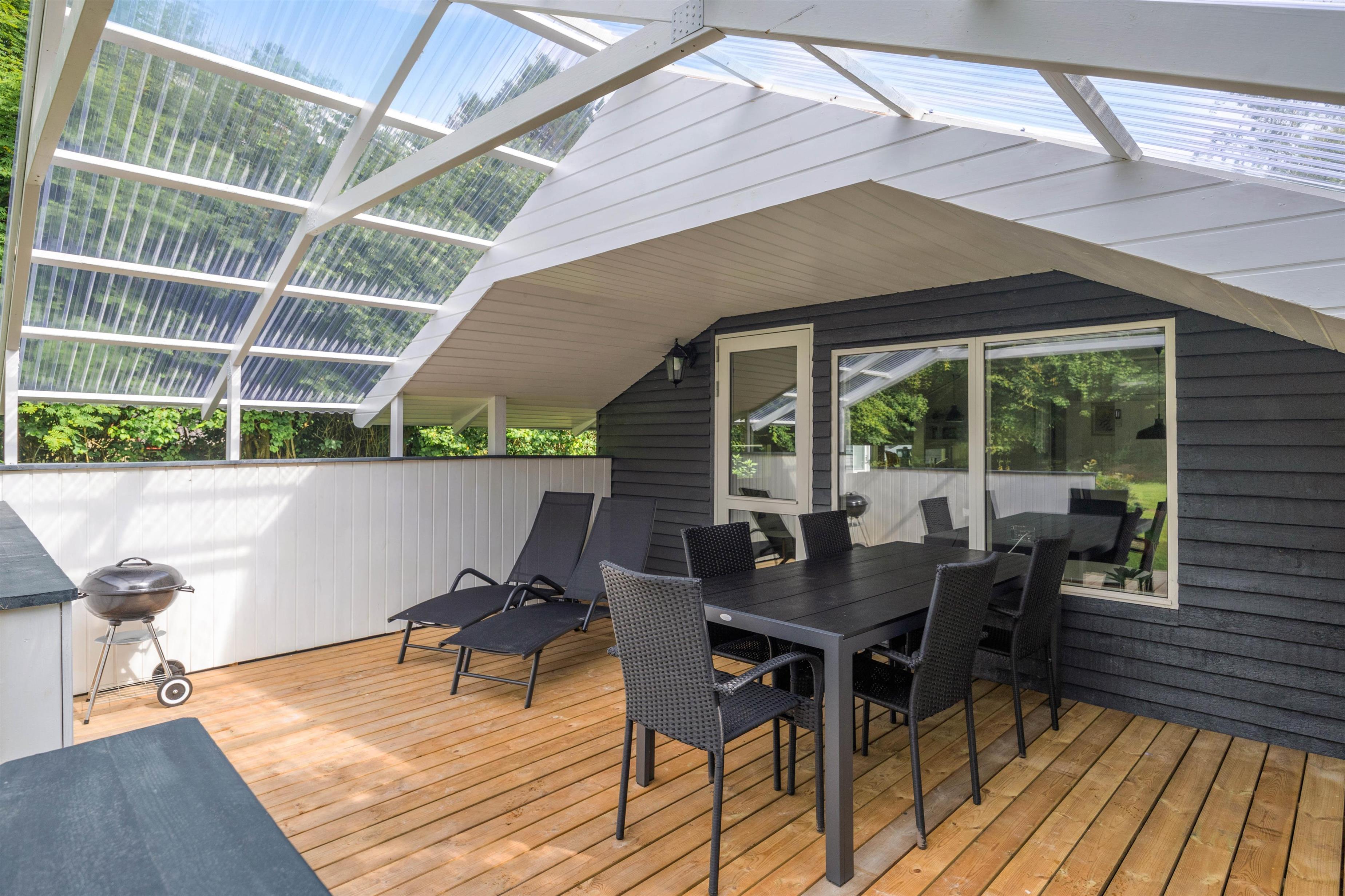 Det udendørs område ved feriehuset i Jegum Ferieland er perfekt til naturelskere og dem, der søger afslapning. Den store terrasse er afskærmet og delvist overdækket, så I kan nyde den friske luft og solen. Start dagen med morgenmad på terrassen, omgivet af naturens beroligende lyde.