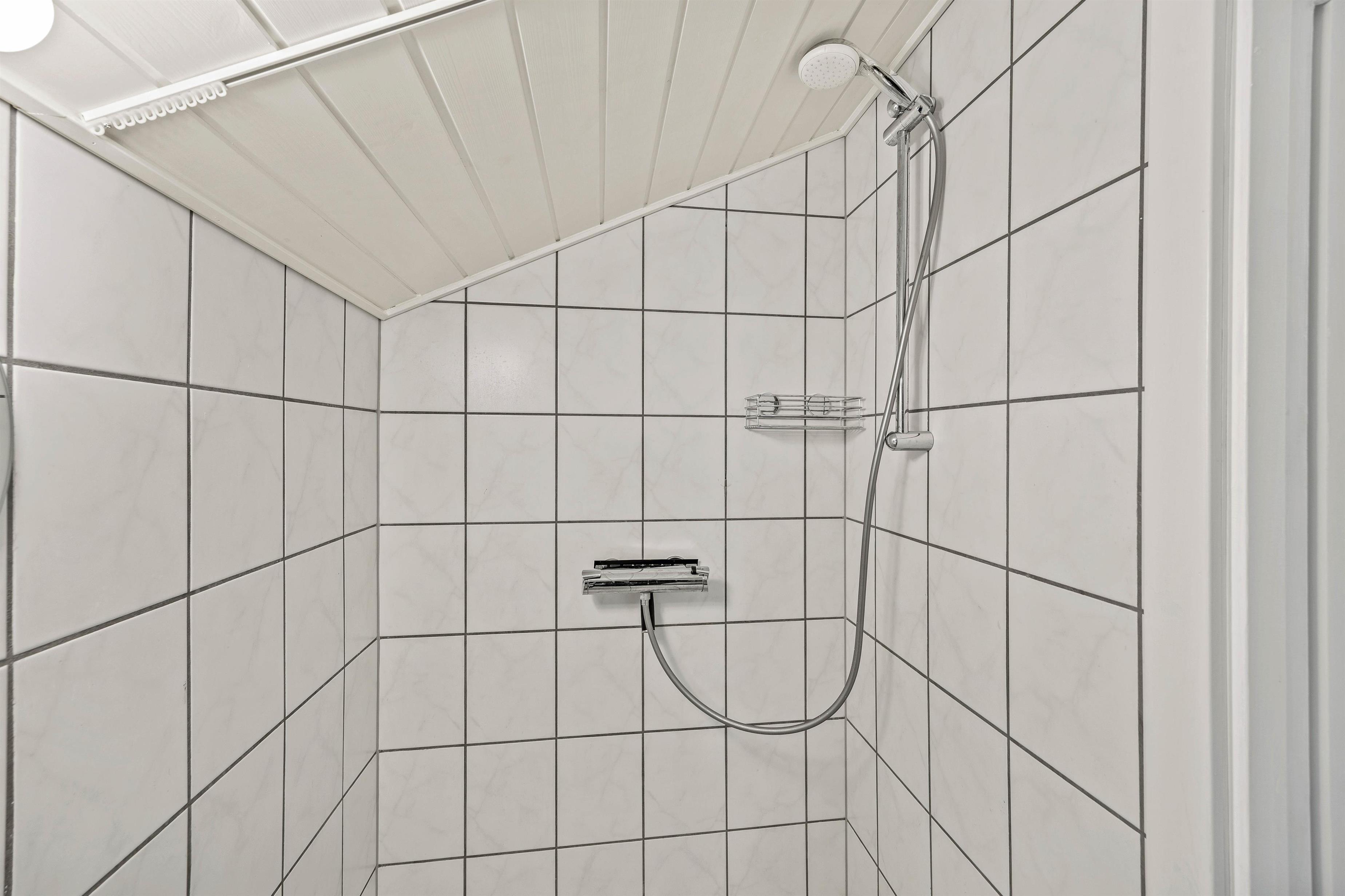 Det smukke, åbne køkken er fuldt udstyret, inklusive en praktisk opvaskemaskine, så I nemt kan tilberede jeres måltider uden at skulle bekymre jer om opvasken. I alt 3 soveværelser, udstyret med 2 dobbeltsenge og 1 enkeltseng, sikrer afslappende nætter og privatliv for alle gæster. Det lille badeværelse har gulvvarme og sikrer, at I ikke får kolde fødder, selv på køligere dage.