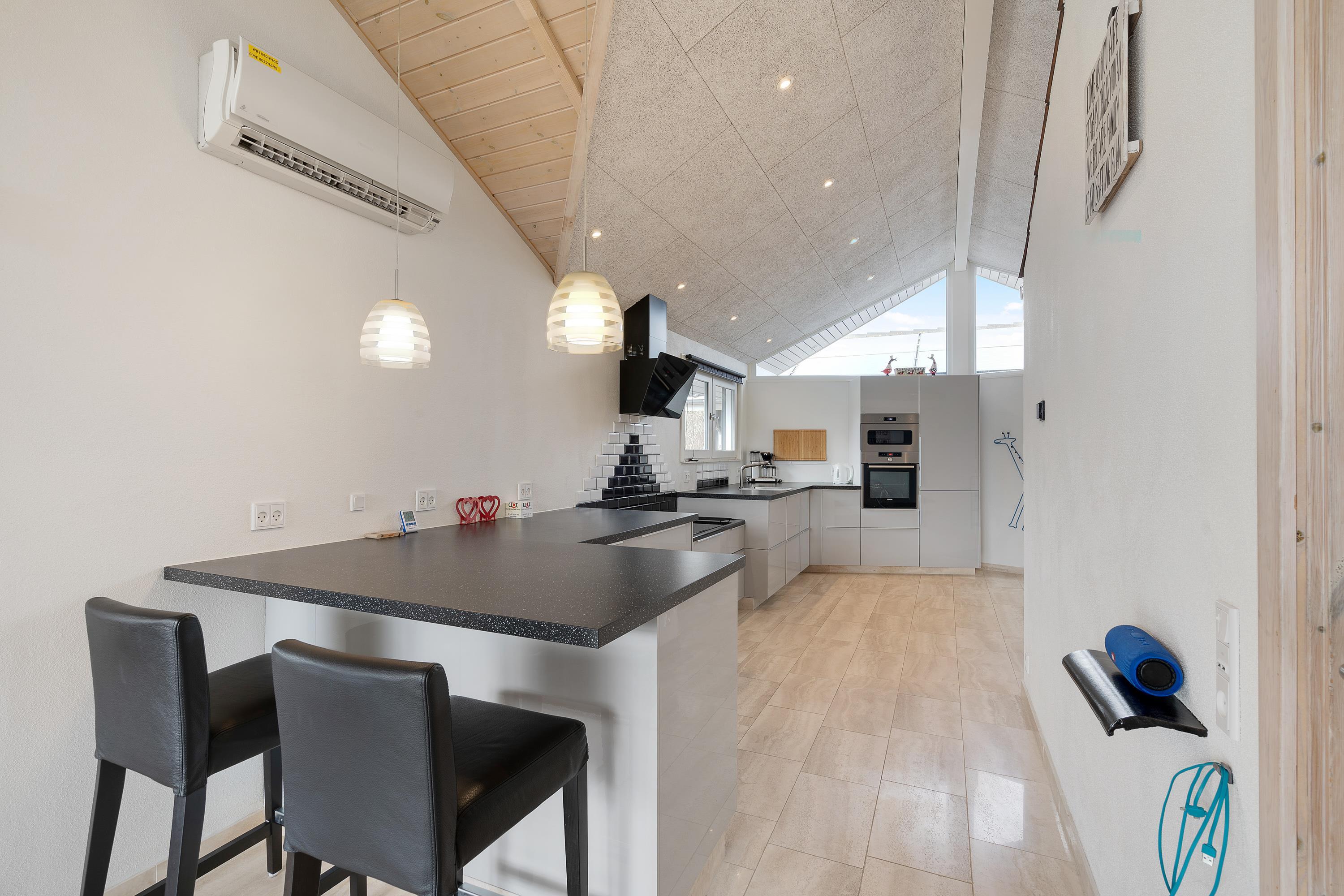I sommerhuset vil I altid kunne nyde et godt indeklima. En energivenlig varmepumpe sørger for behagelige temperaturer i feriehuset, mens gulvvarmen i køkken, indgangsparti og på begge badeværelser holder fødderne varme. Skal der skrues op for varmen og hyggen, tænder I bare op i brændeovnen i stuen.