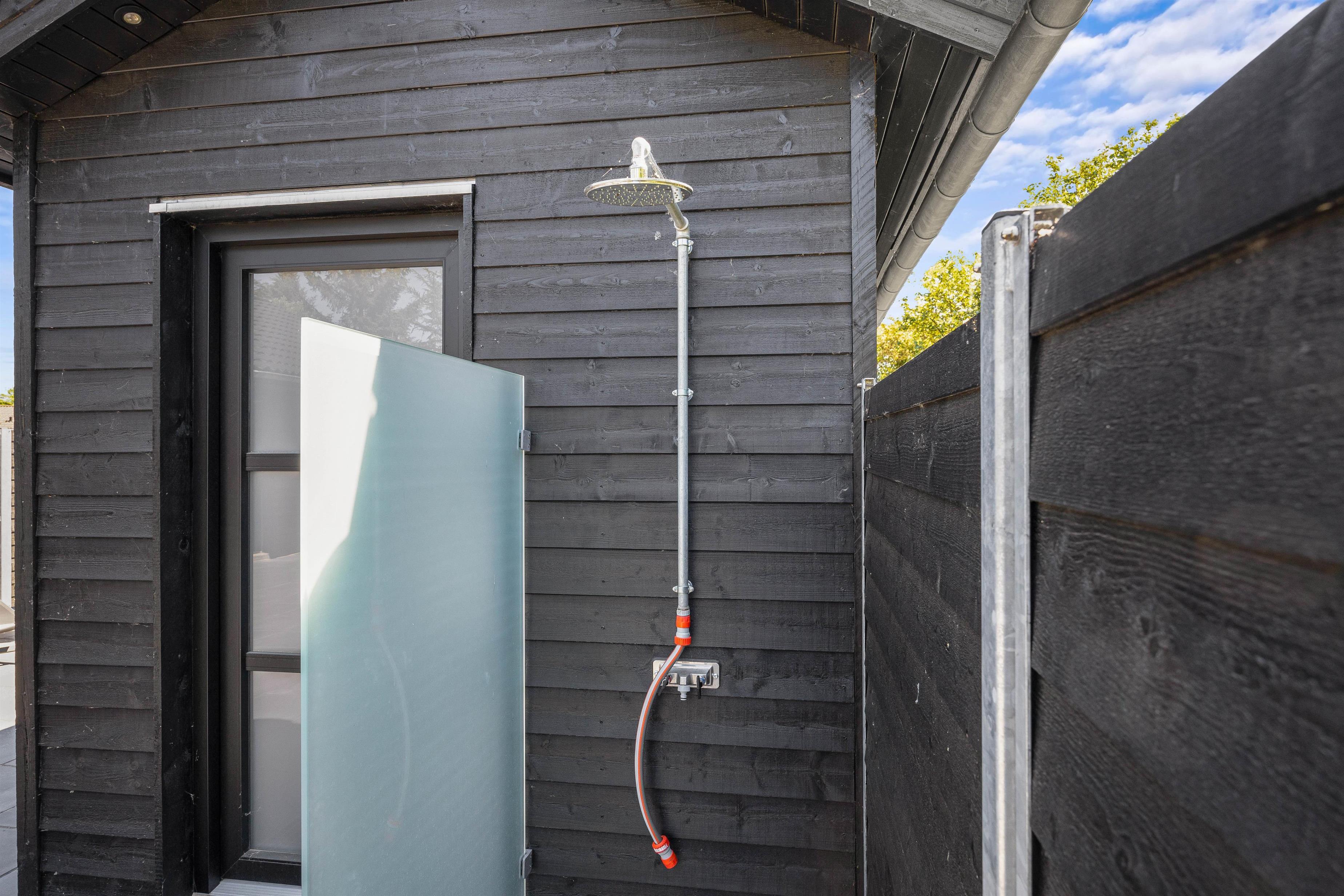 I kan også benytte jer af den udendørs sauna, uanset årstiden. Her kan I blive varmet rigtig godt igennem kun afbrudt af en tur under udebruseren fra april til november.