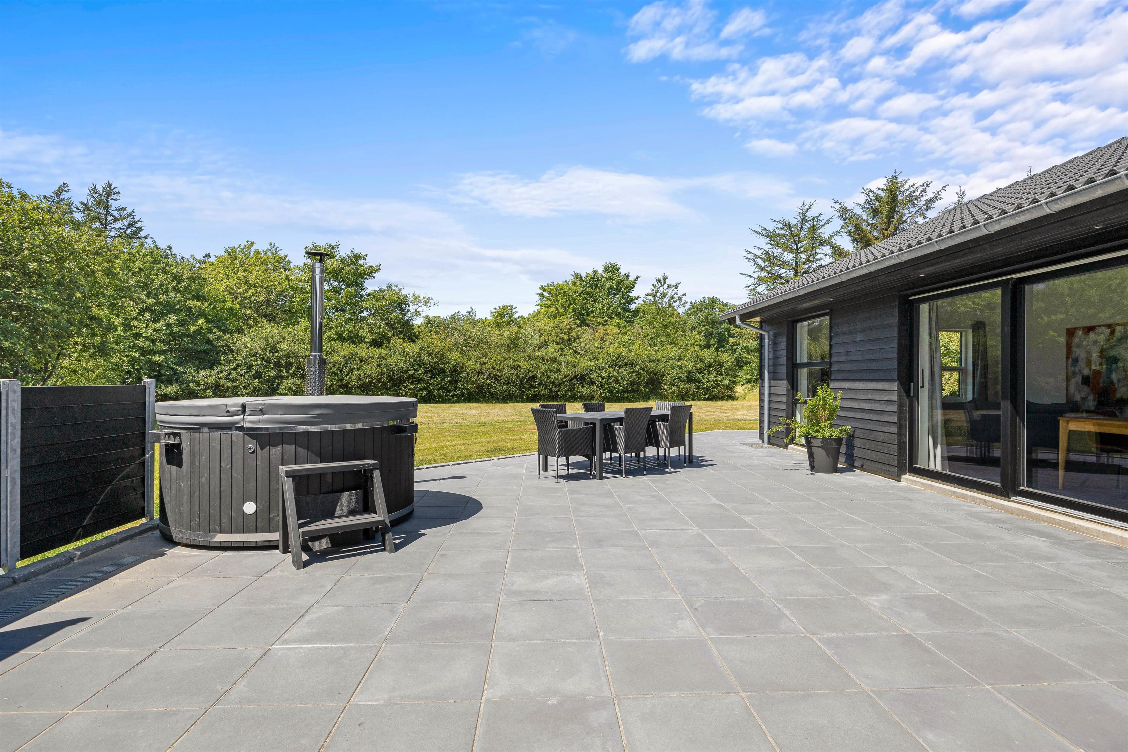 Sommerhuset på Nøddehaven 54 er bygget i 2023, og har plads til 6 personer. Her er både vildmarksbad, udendørs sauna og udebruser, så I rigtig kan nyde de skønne omgivelser i Jegum Ferieland, mens I slapper helt af.