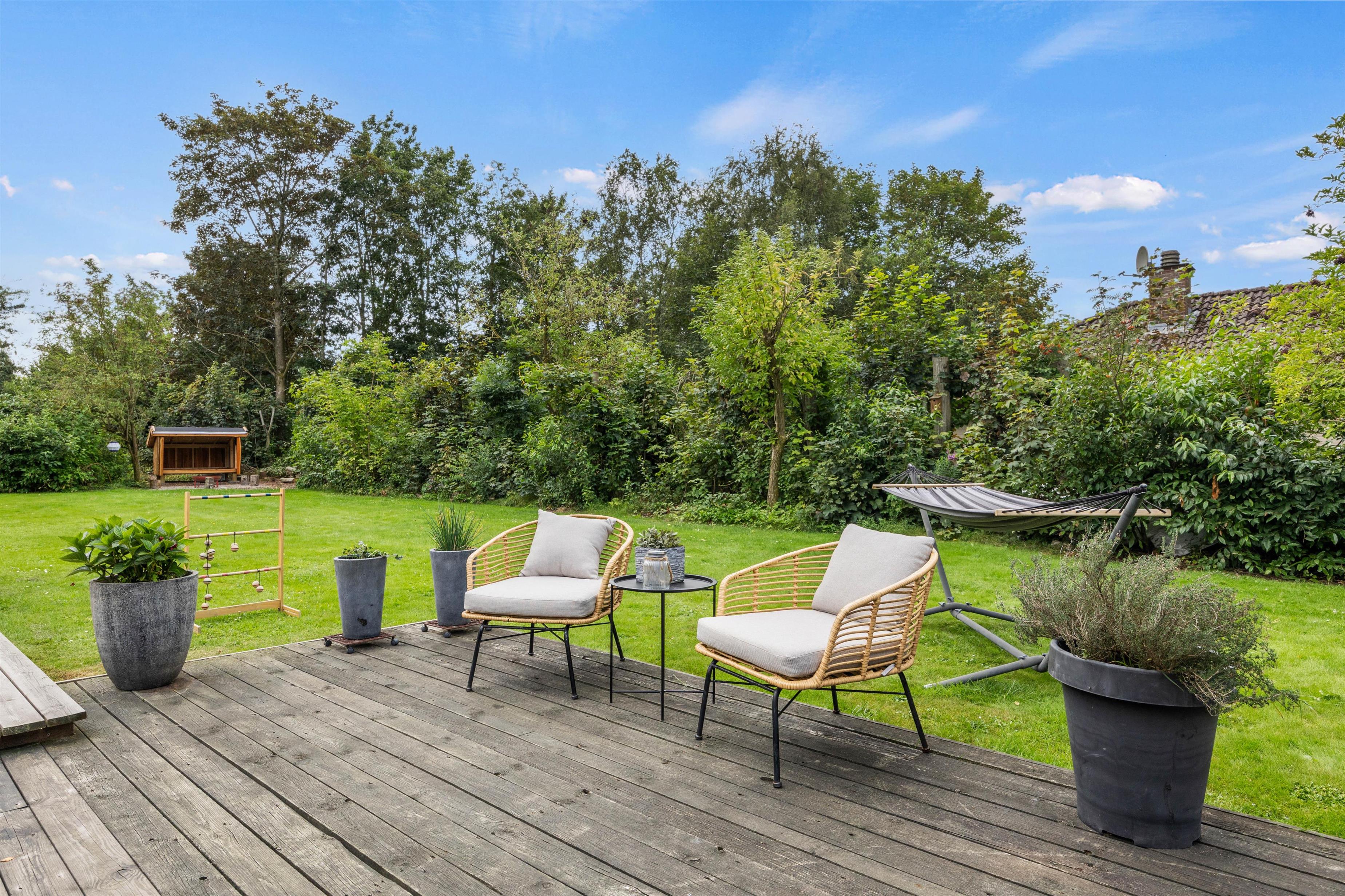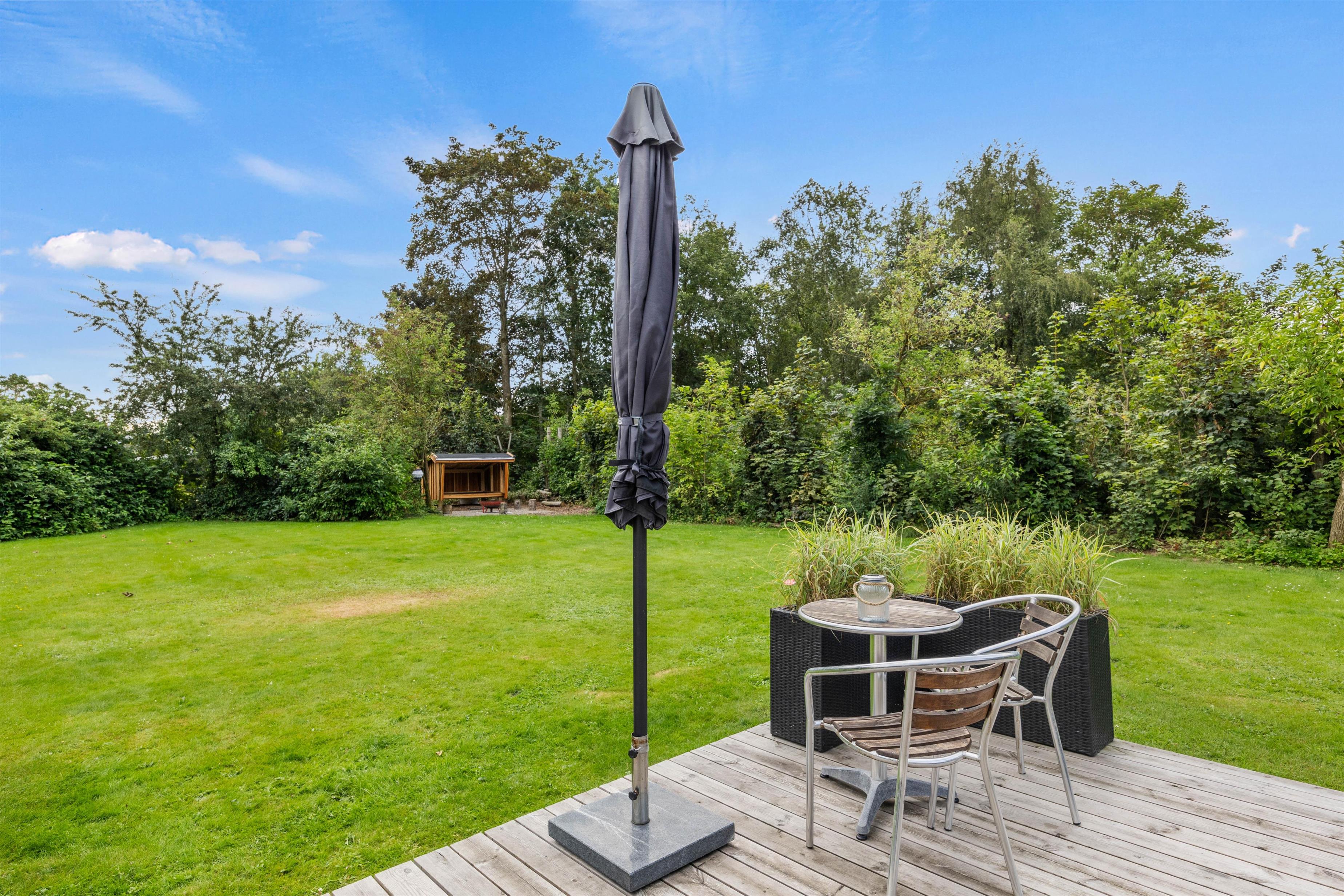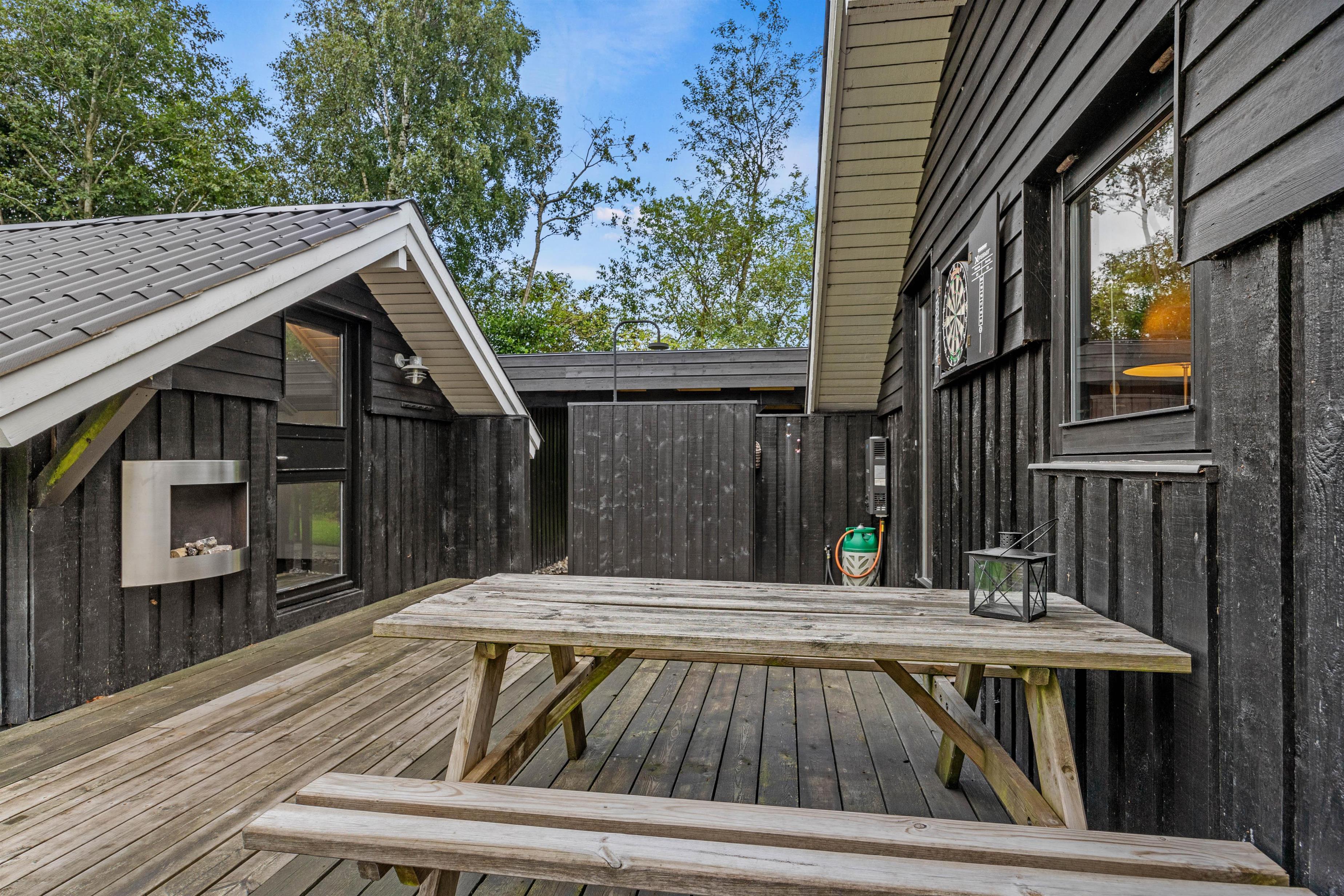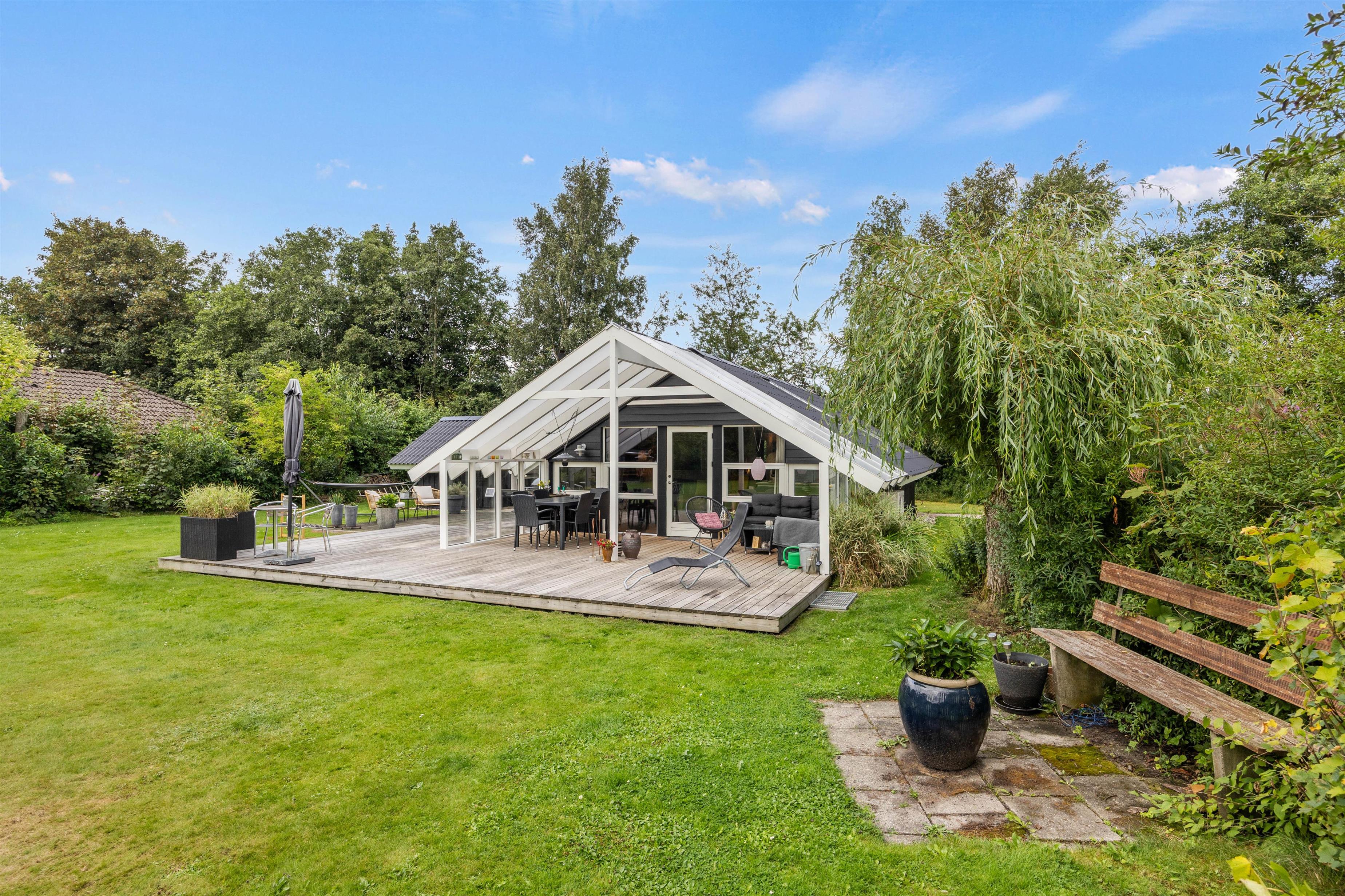 Sommerhuset byder på dejlige, udendørs faciliteter med flere terrasser – åben, afskærmet og delvist overdækket. Disse terrasser er perfekte til at nyde aftensmåltider under åben himmel. I kan bruge grillen og havemøblerne til at tilberede og nyde alt fra grillpølser til burgere i de hyggelige omgivelser. Solvogne og en parasol sørger for, at I kan slappe af og nyde de solrige dage.