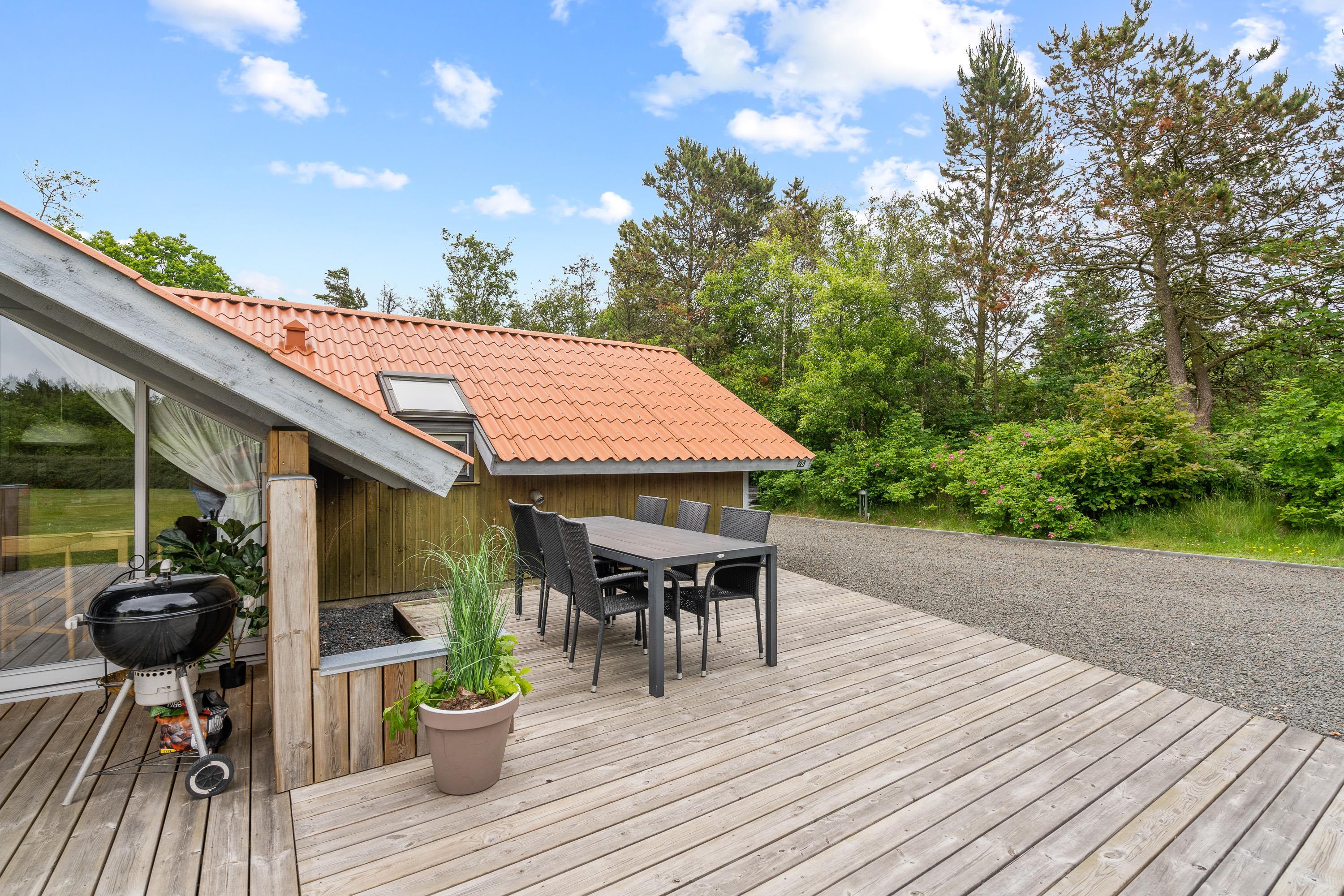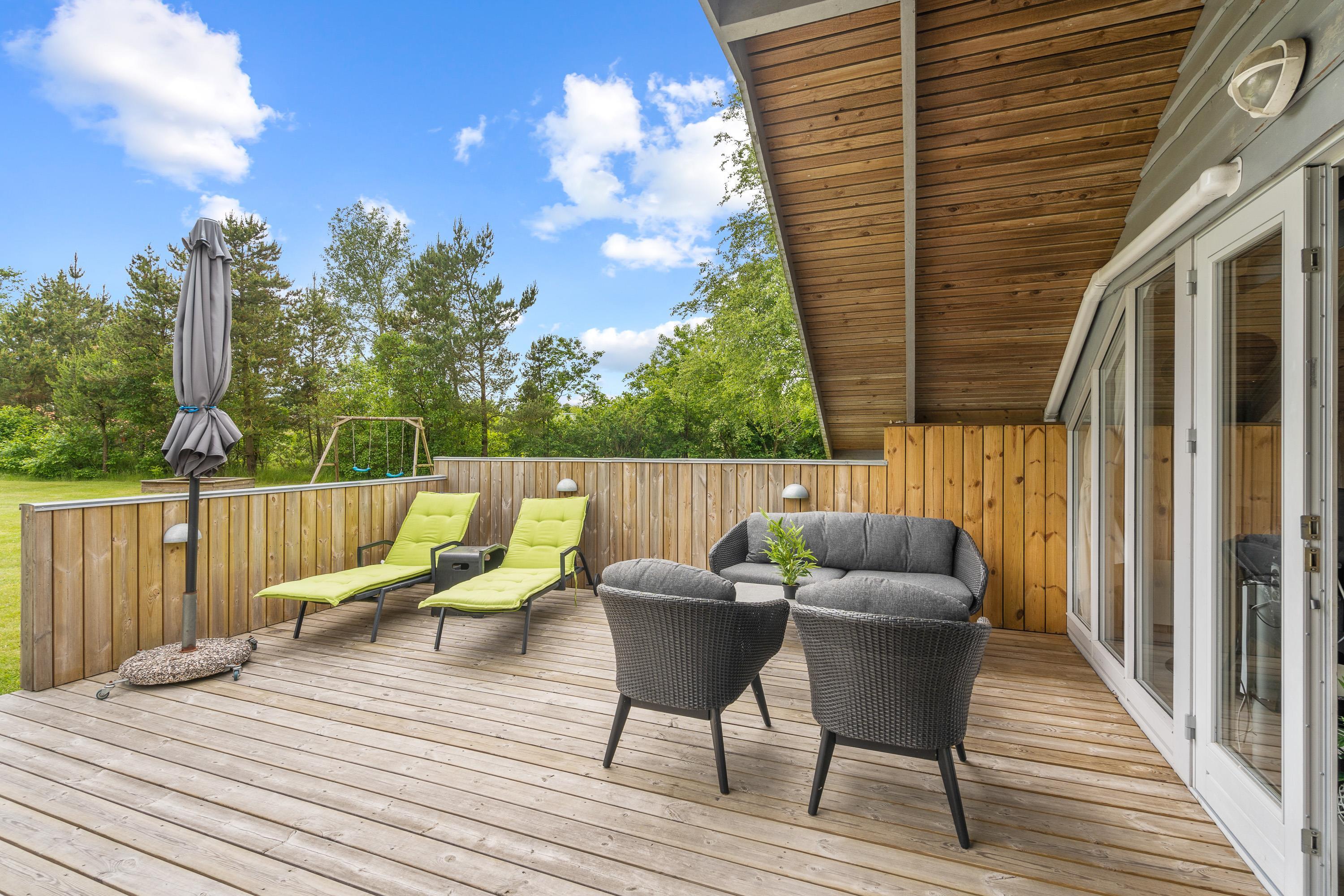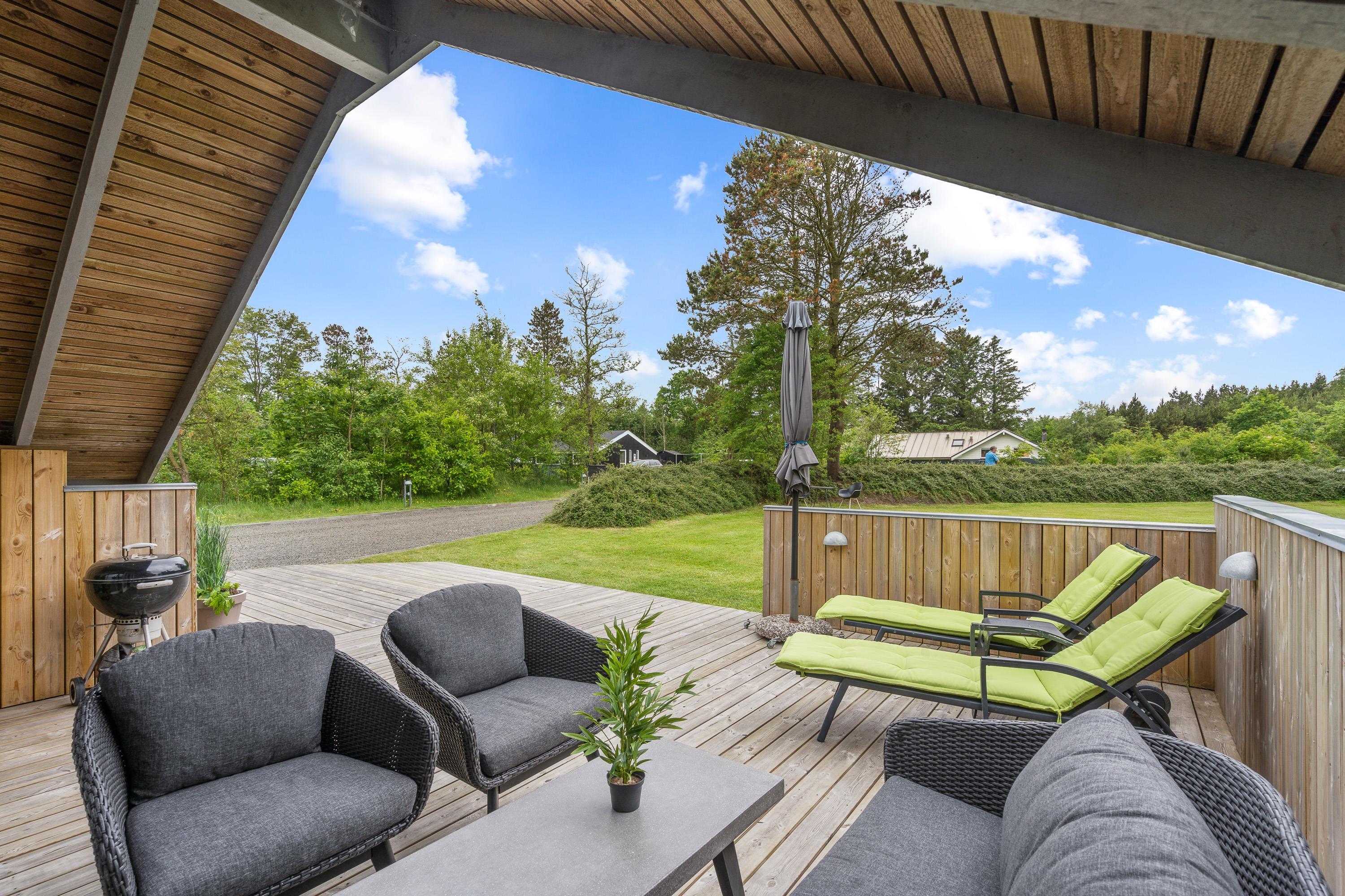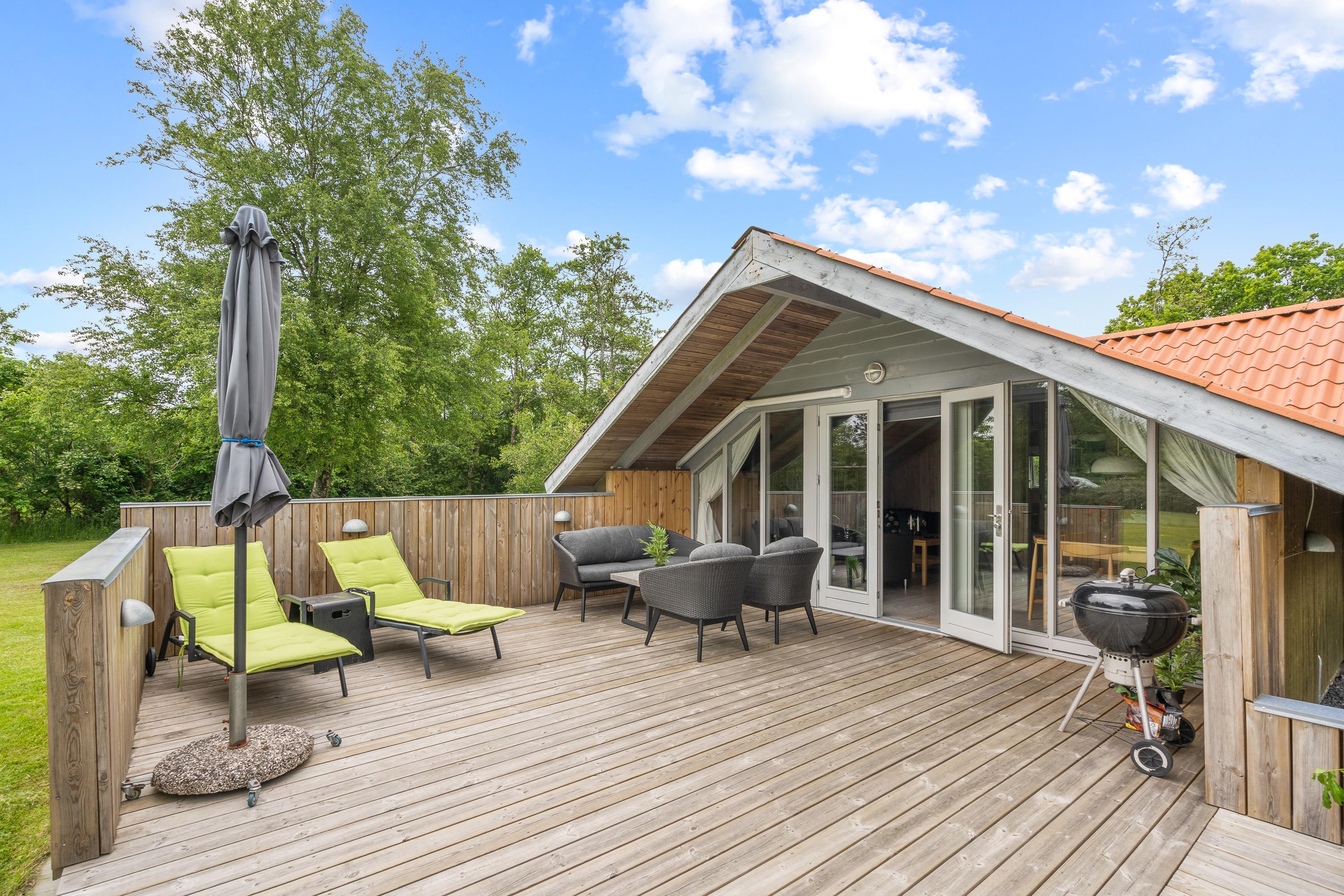 Udendørs venter jer også en terrasse, hvor I har både liggestole, havemøbler og en grill til rådighed, så I kan få mest muligt ud af de varme og solrige feriedage, som I kan nyde udendørs fra morgen til aften.