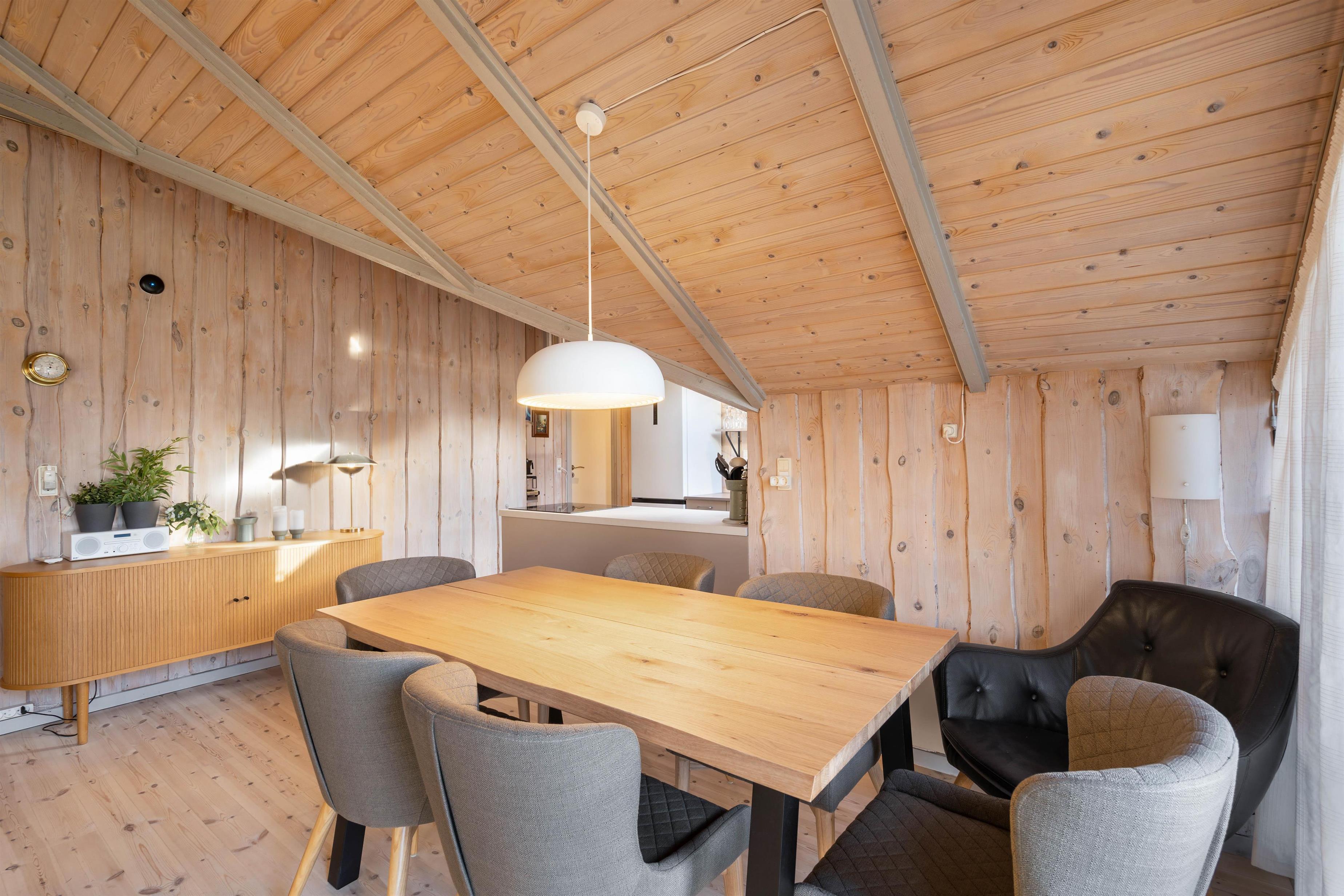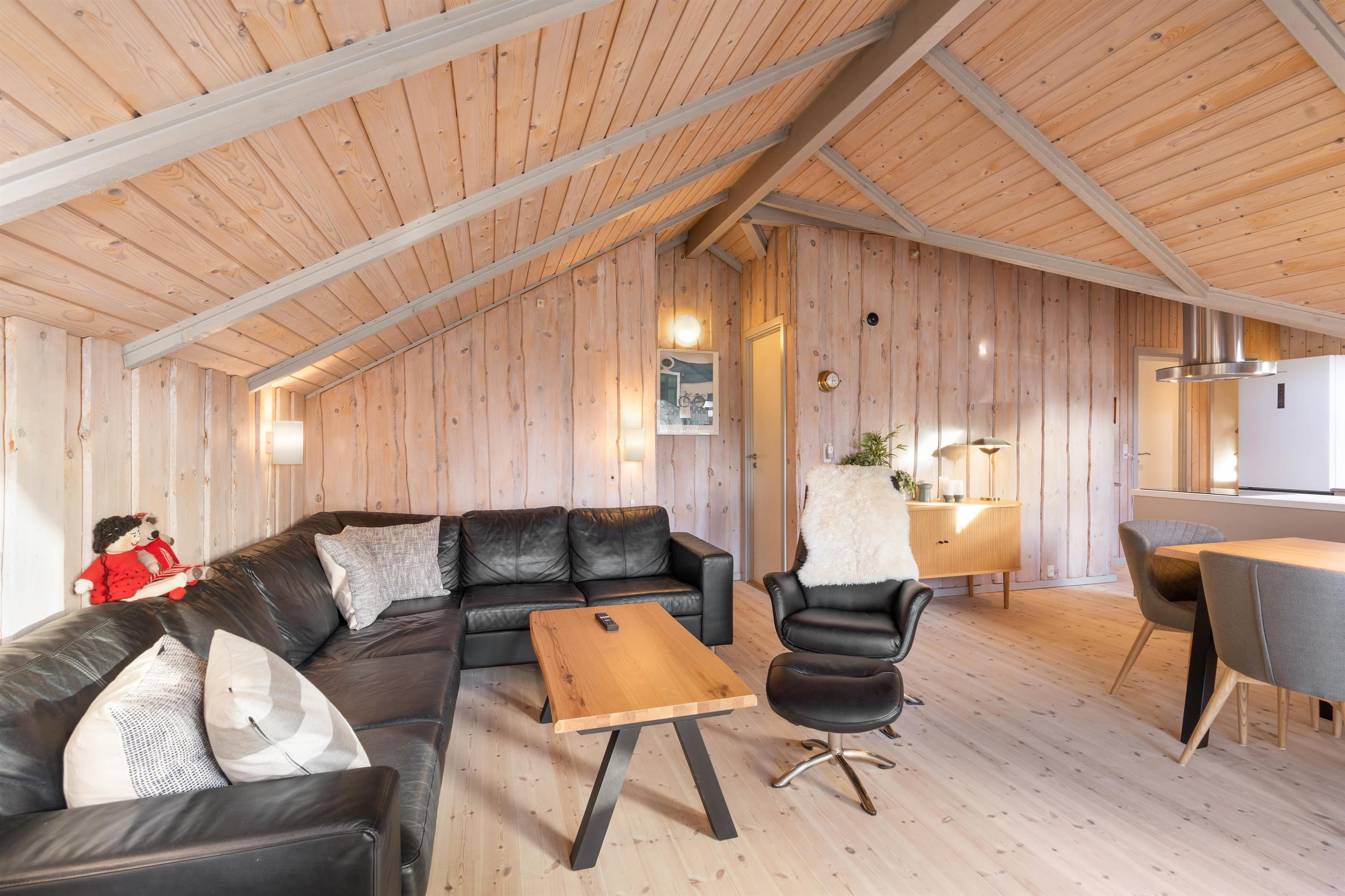 I feriehuset på Nordskrænten 28 er det alrummet, der udgør feriehusets hjerte og jeres samlingspunkt. Her kan I lave mange forskellige ting sammen, men selv hvis I laver forskellige ting, kan I stadig nyde hinandens selskab.