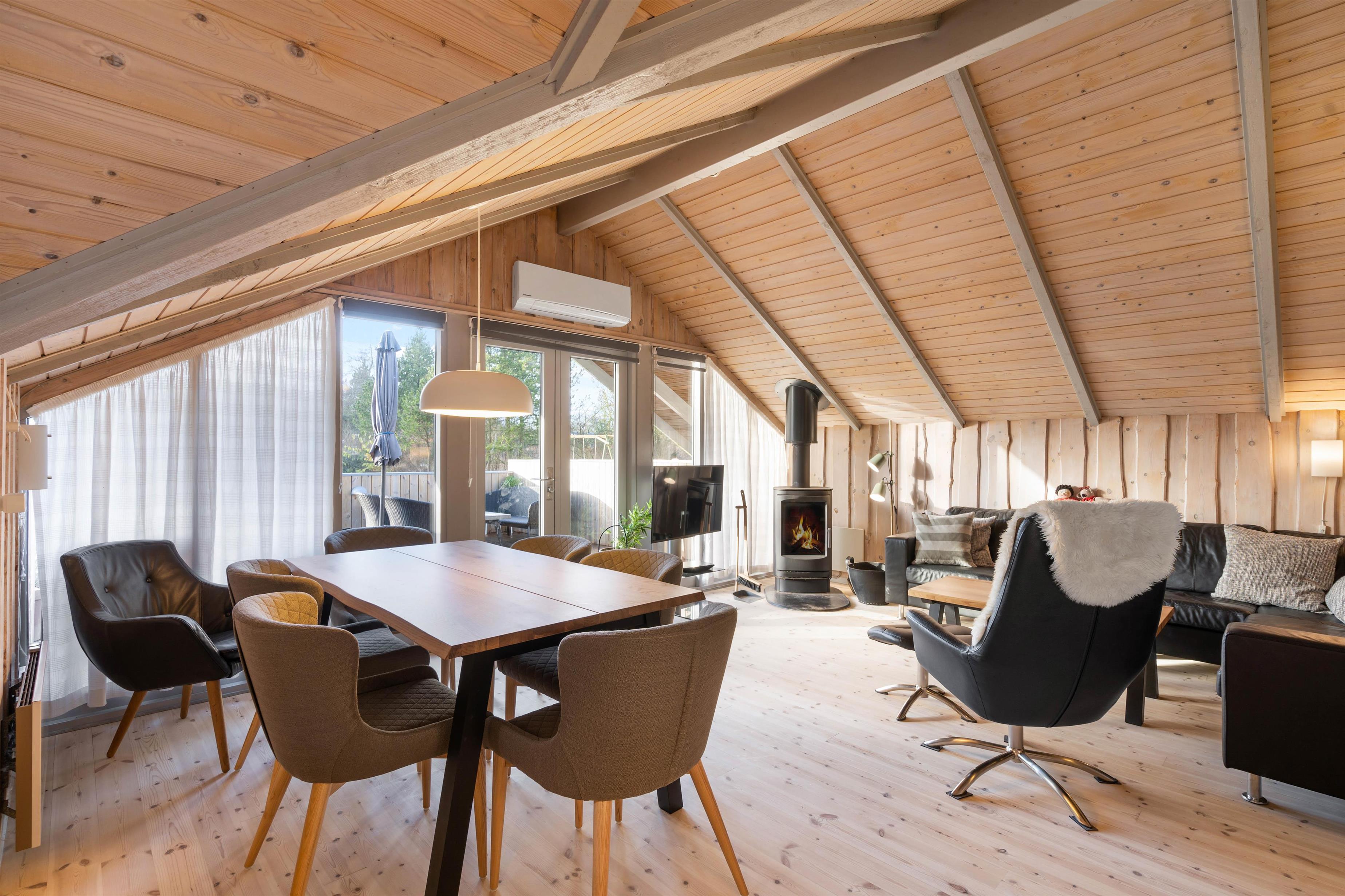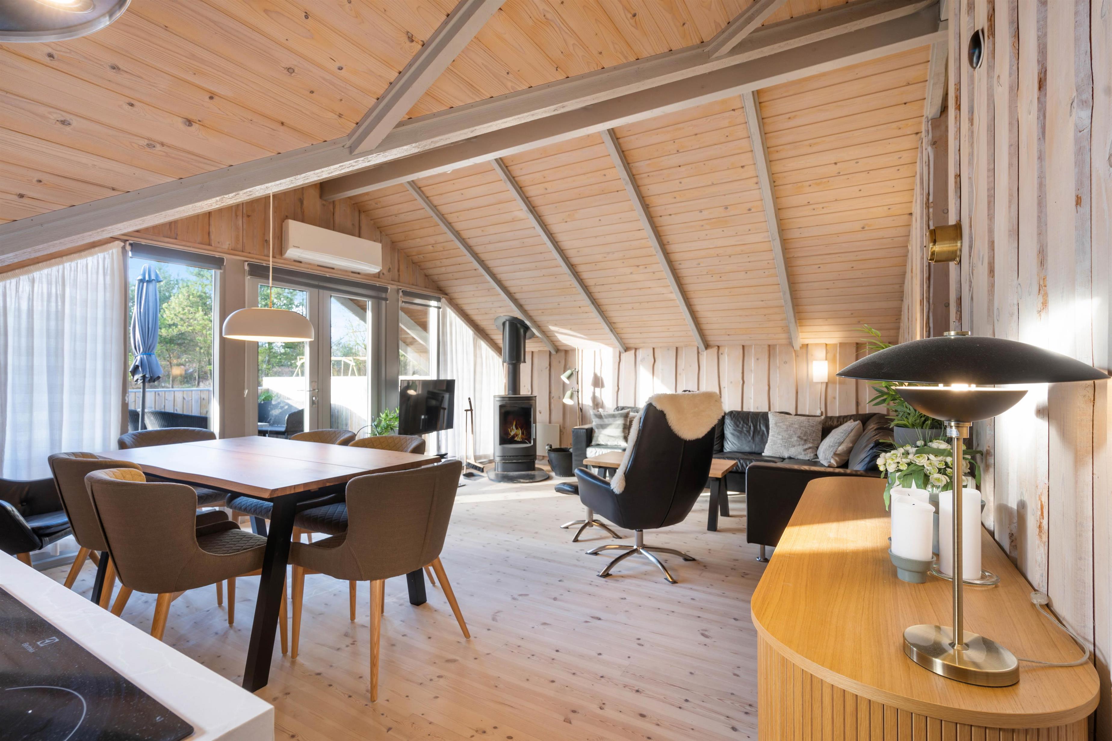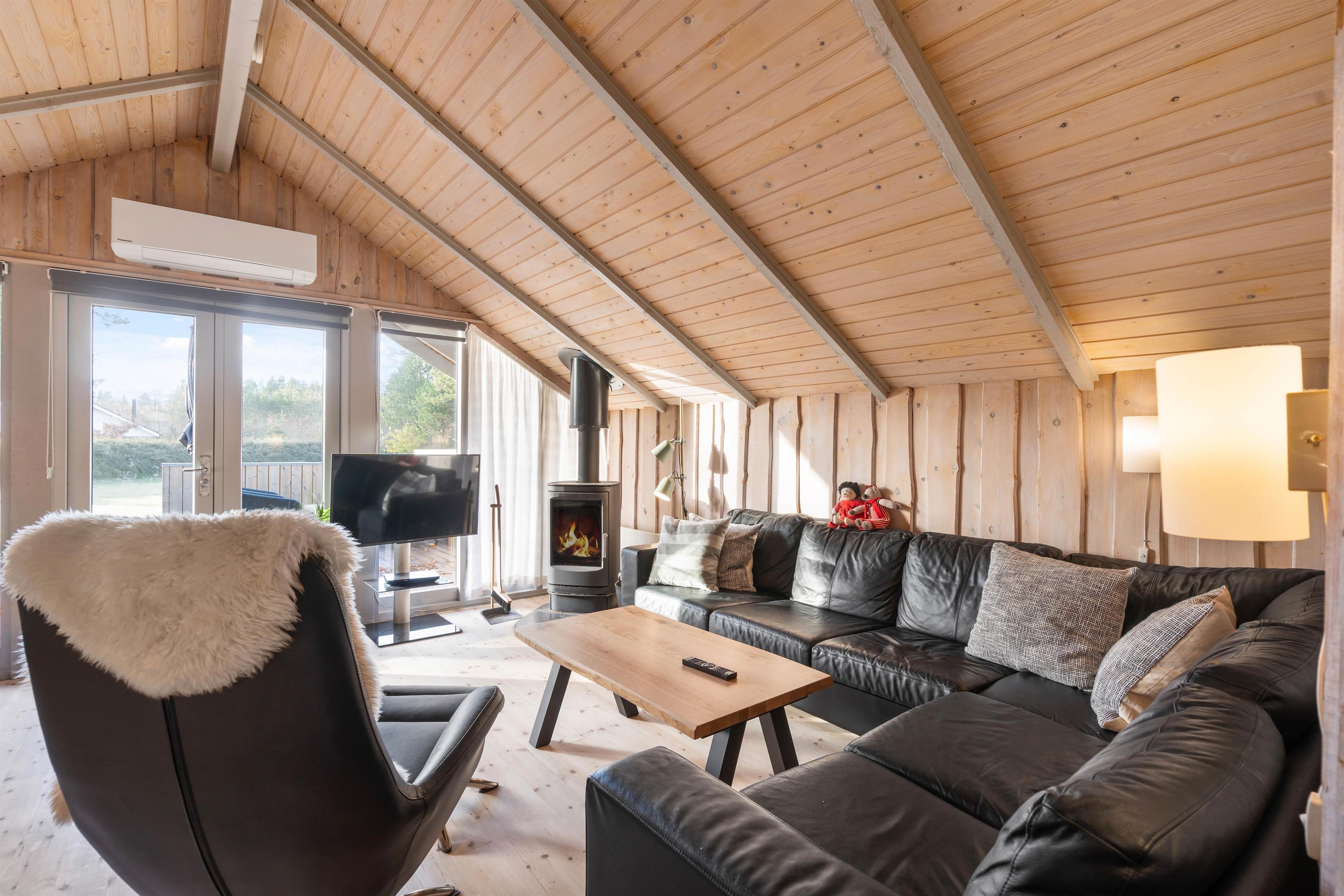 I alrummet kan I også tænde op i brændeovnen, der ikke kun sørger for at sprede dejlig varme i rummet, men den er samtidig med til at fuldende den hyggelige feriestemning. Foruden brændeovnen er der også en varmepumpe, der på energivenlig vis sørger for et godt indeklima.
