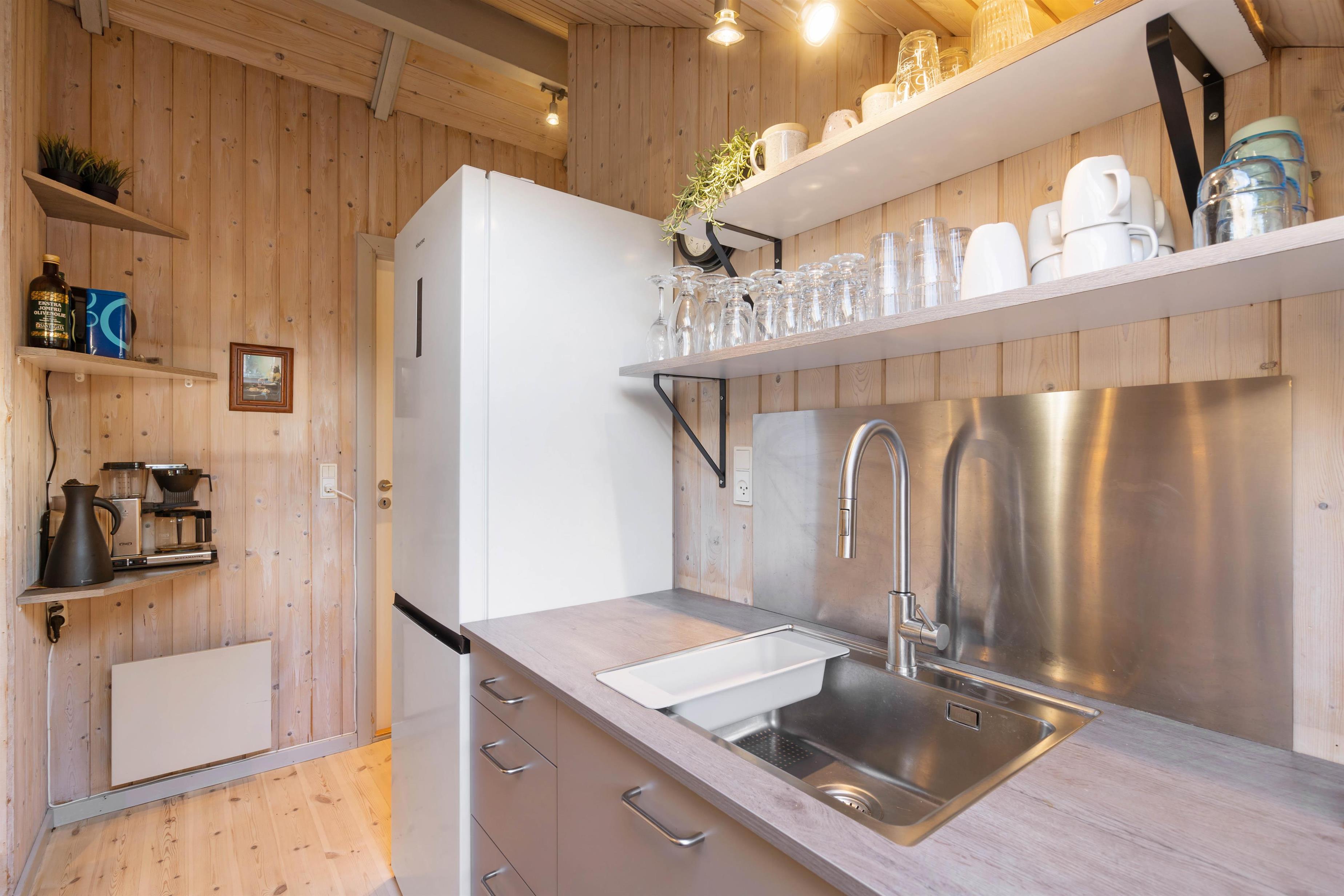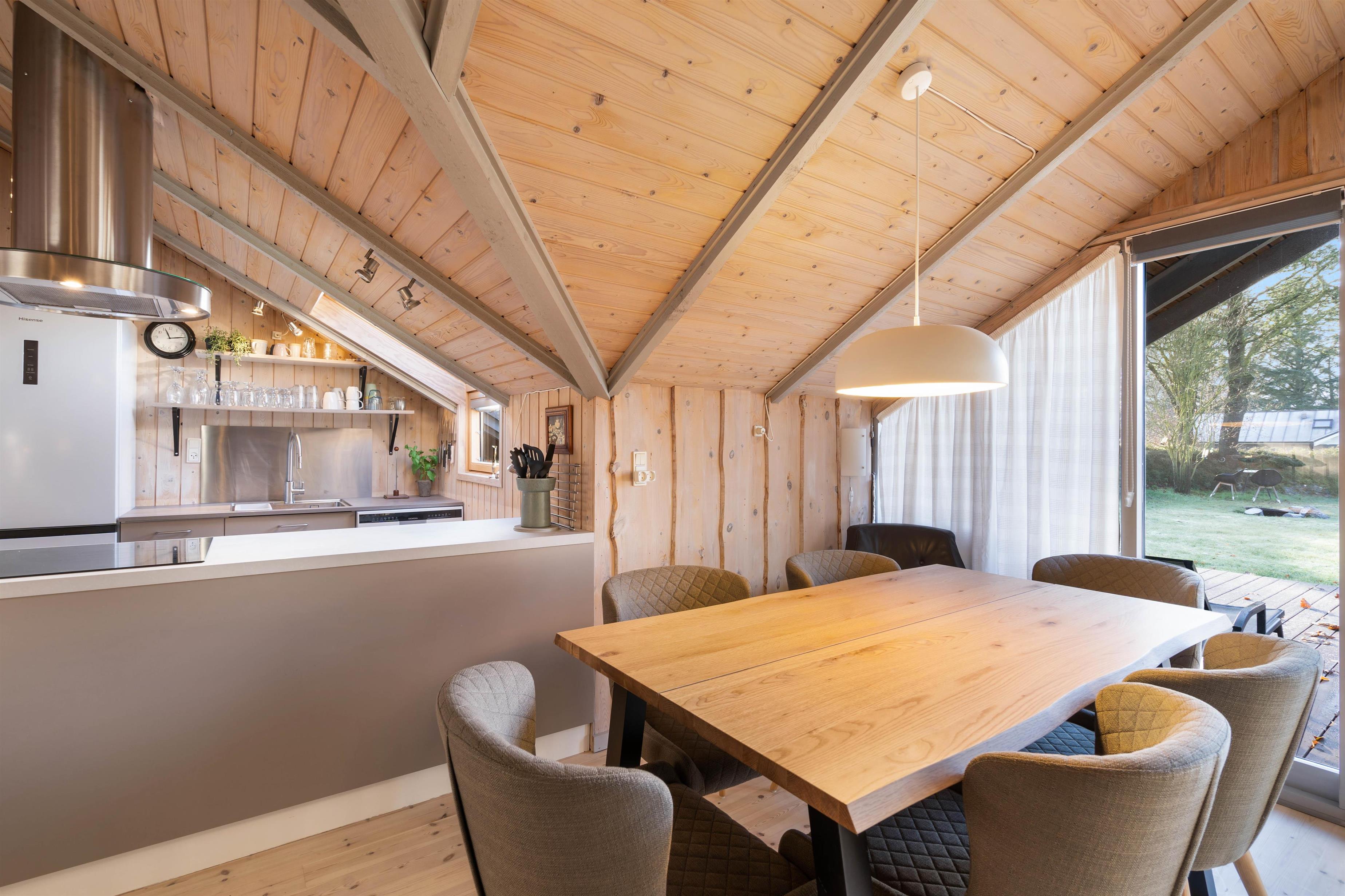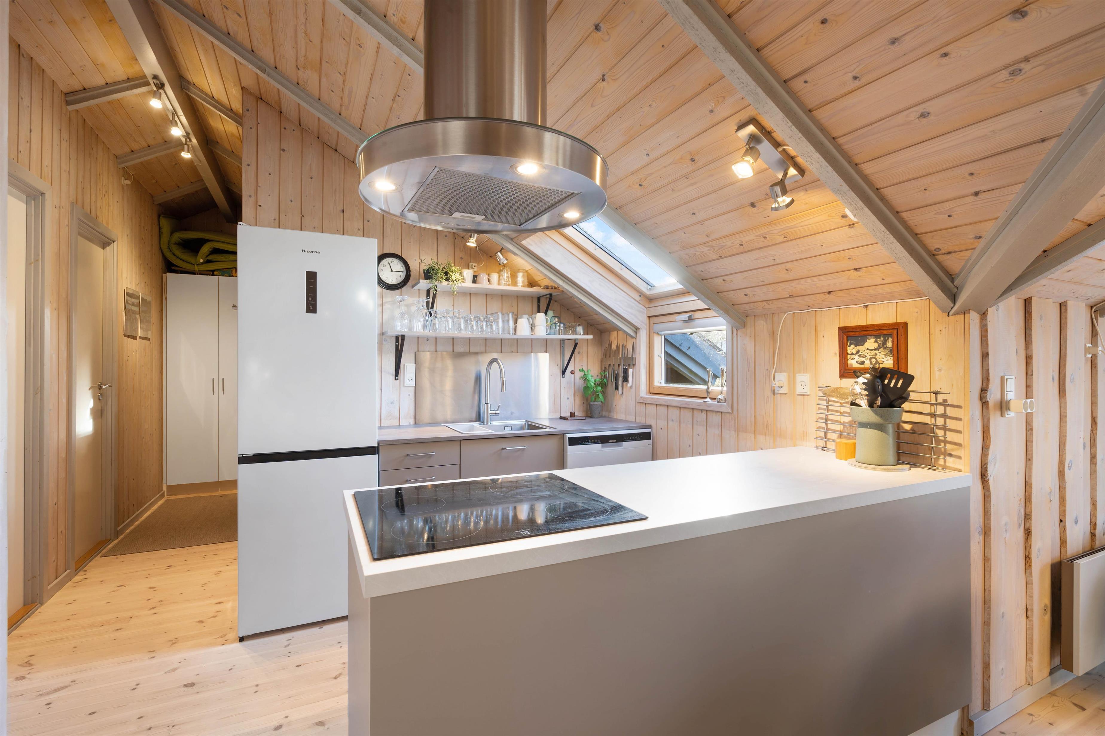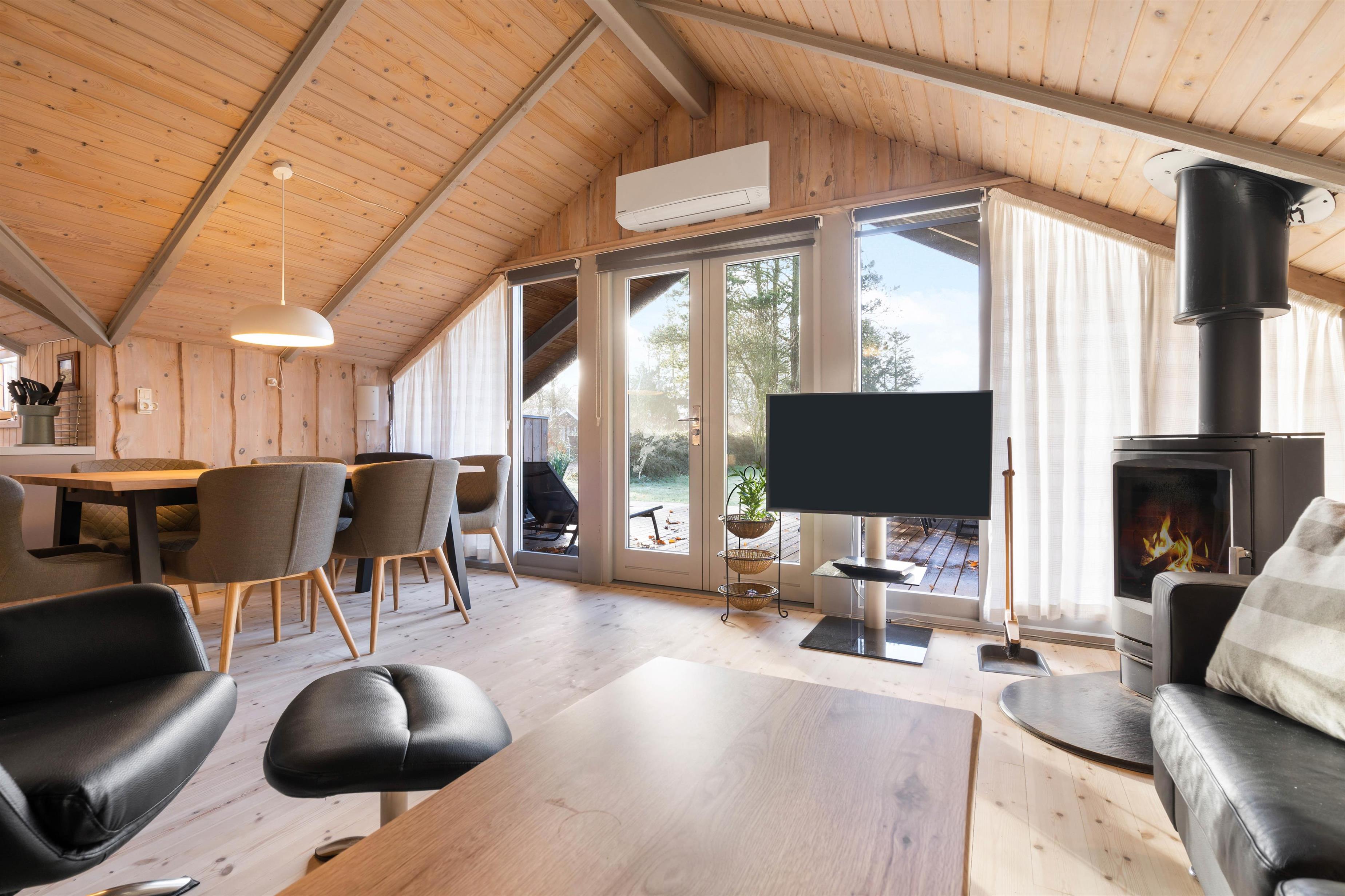I alrummet kan I også tænde op i brændeovnen, der ikke kun sørger for at sprede dejlig varme i rummet, men den er samtidig med til at fuldende den hyggelige feriestemning. Foruden brændeovnen er der også en varmepumpe, der på energivenlig vis sørger for et godt indeklima.