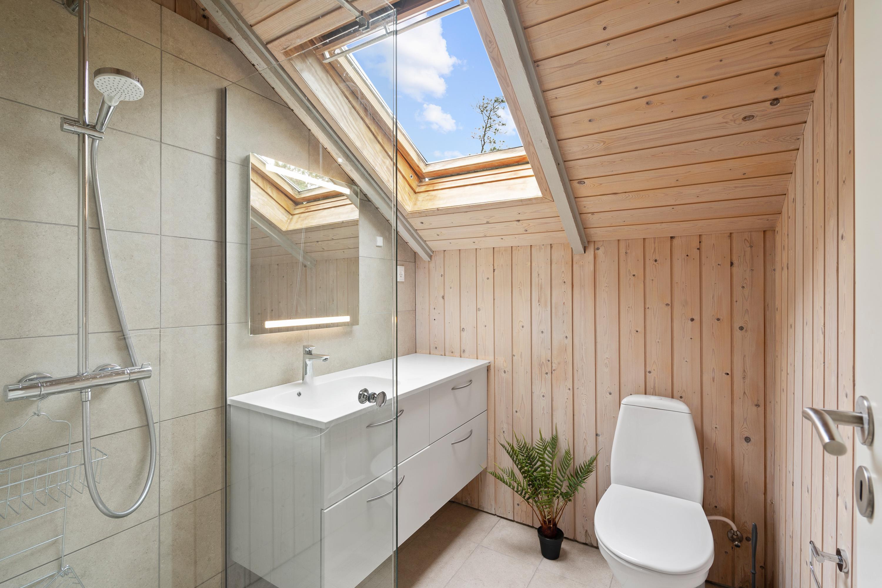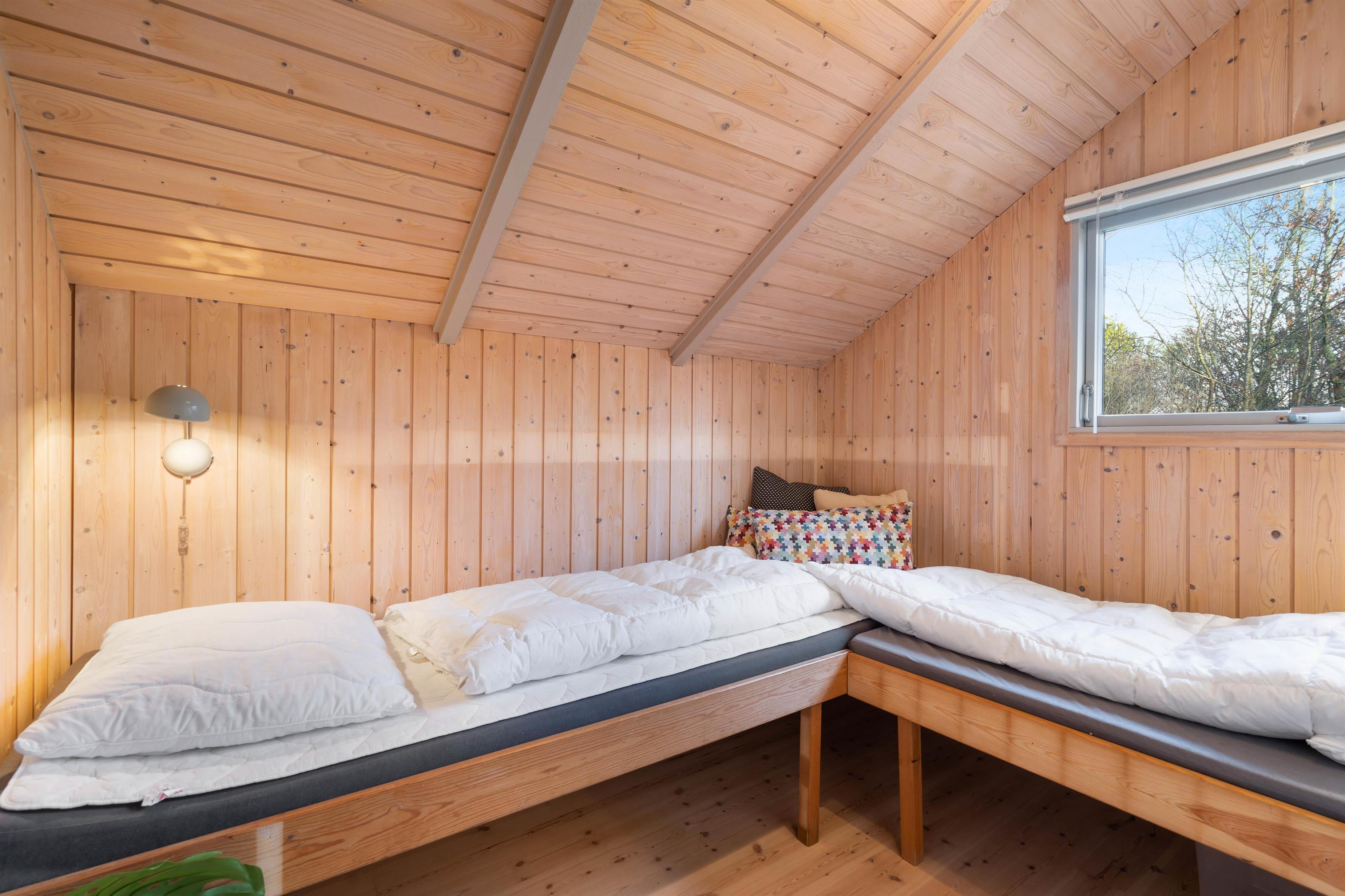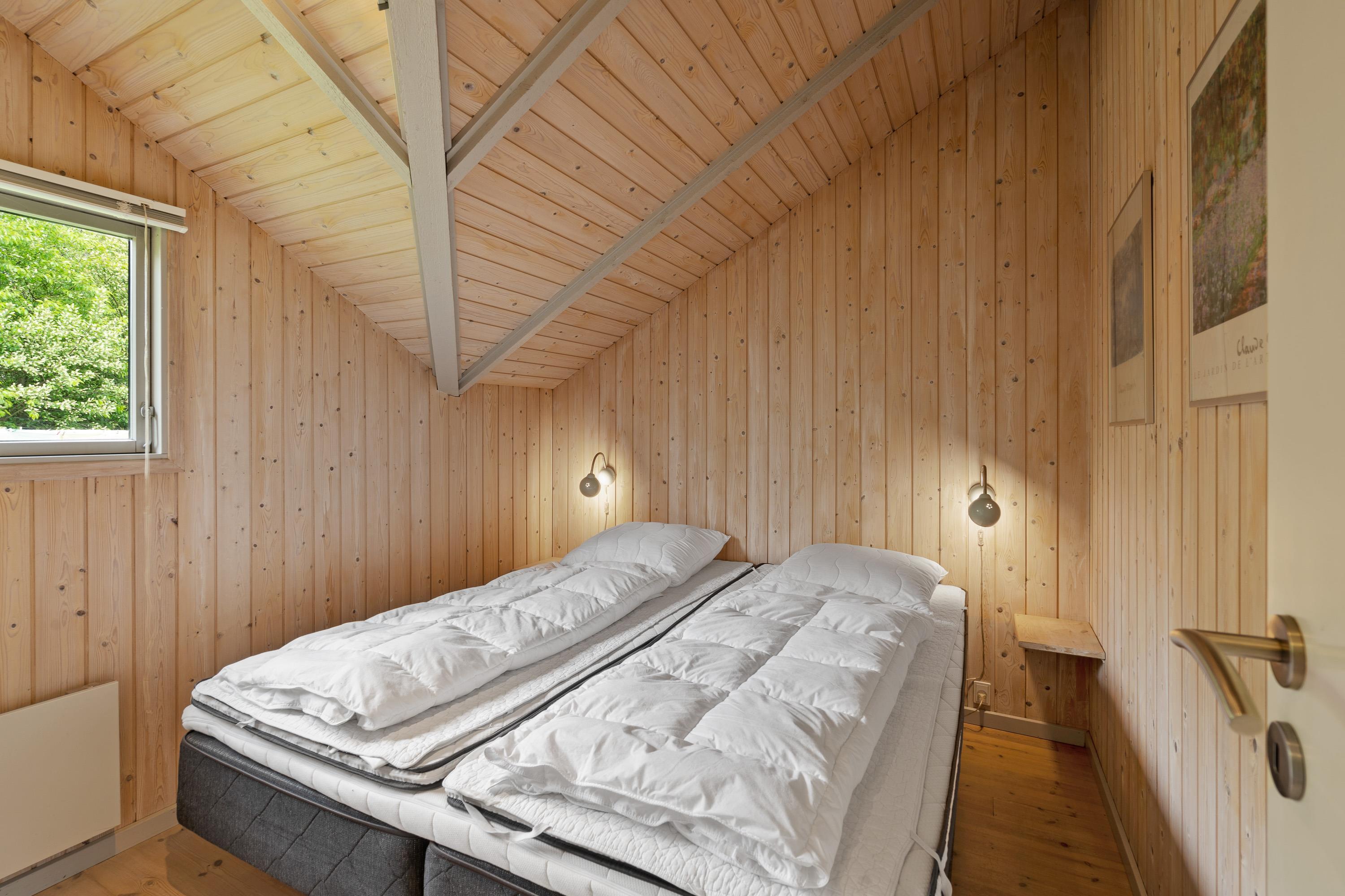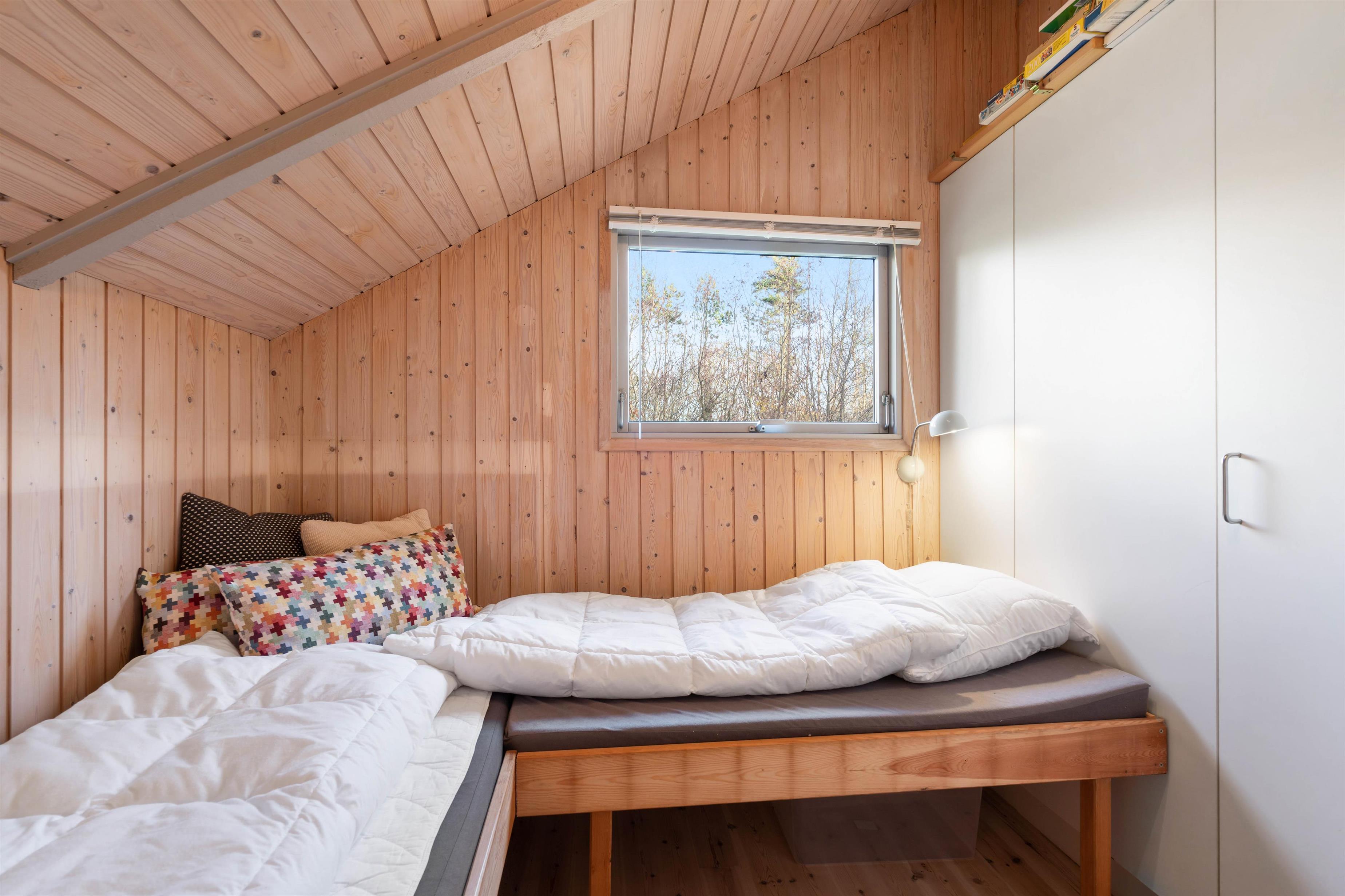 Sommerhusets 65 kvadratmeter byder desuden på 3 soveværelser, hvor I kan samle ny energi, så I er helt klar til de kommende feriedage. 2 af soveværelserne er indrettet med en dobbeltseng hver, og det tredje soveværelse er indrettet med 1 etageseng. På badeværelset er der gulvvarme, så I slipper for at starte feriedagene med kolde fødder.