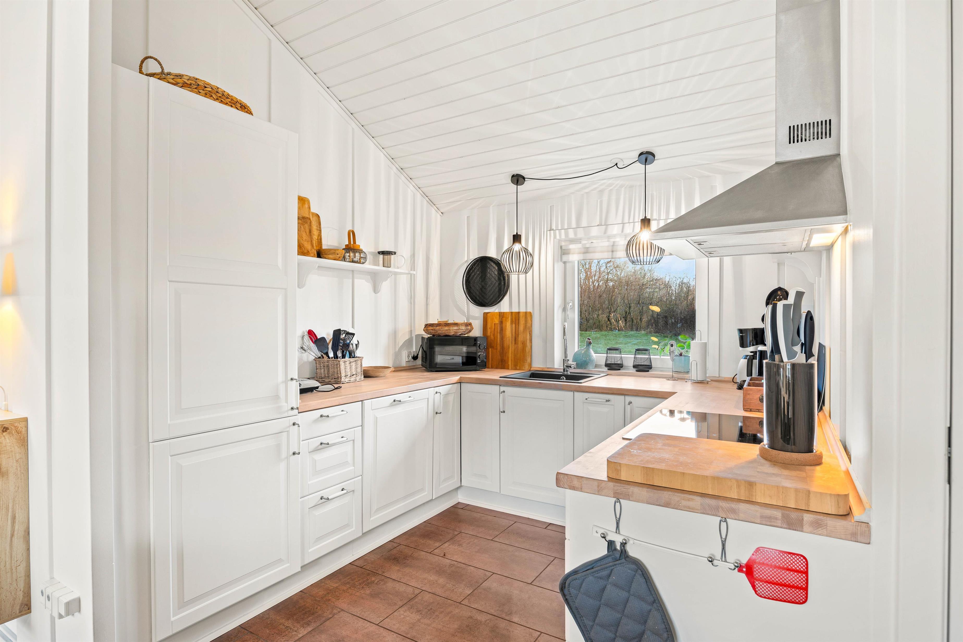 Ferieboligen fra 2005 er utrolig velholdt, hvilket I allerede vil bemærke, når I triller ind i indkørslen. Også indvendig er der hyggelig atmosfære og højt til loftet. Det store opholdsrum, hvor stue, køkken og spisestue er samlet, giver jer mulighed for at nyde hinandens nærvær, selvom I fordyber jer i forskellige ting; nogle lægger puslespil ved spisebordet, andre læser en god bog i sofaen eller går i køkkenet og laver magiske ferieretter.