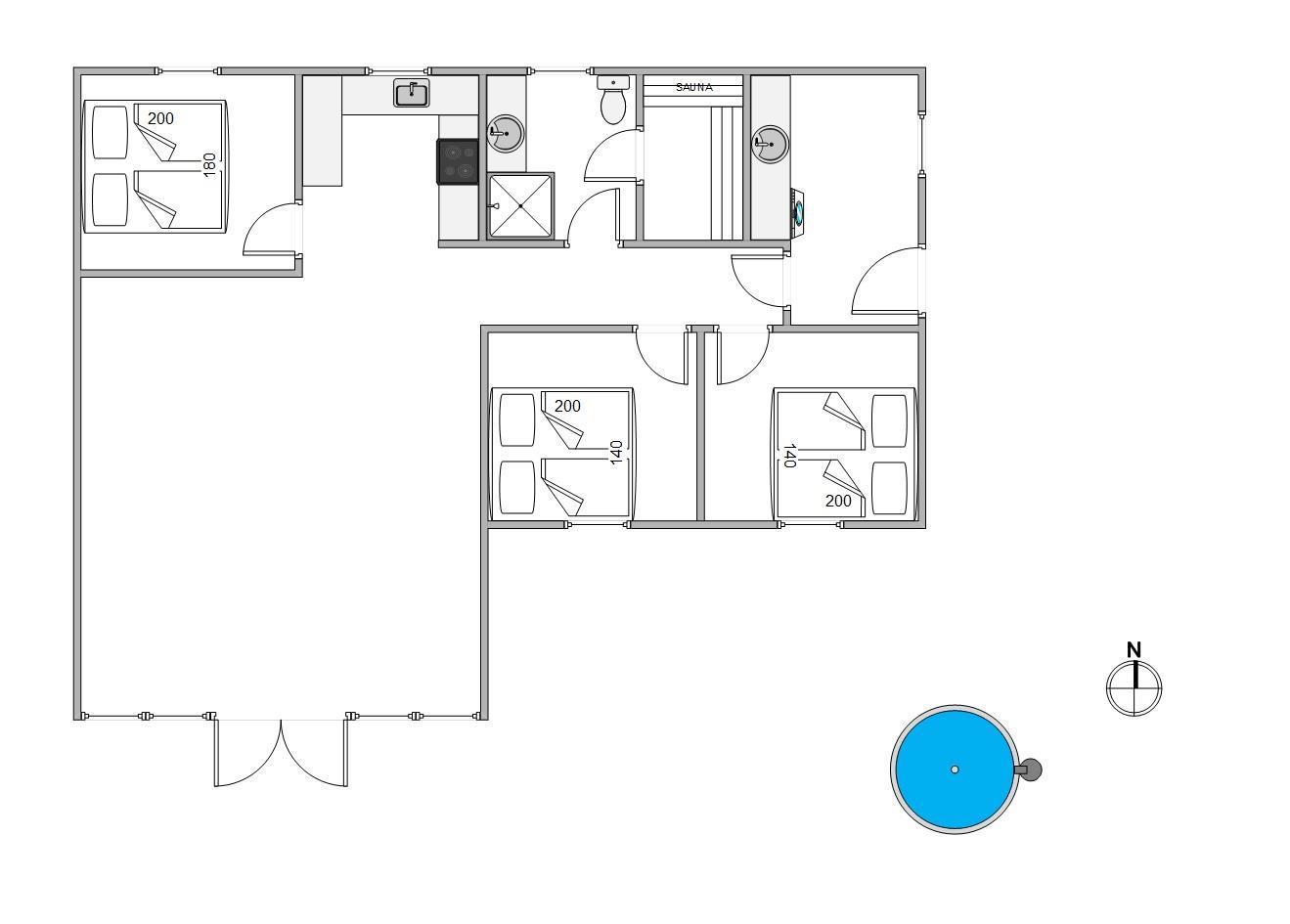 Blomstervangen 161 kan danne rammerne omkring en fantastisk ferie for op mod 6 feriegæster. Planløsningen byder på 3 gode soverum, som alle er udstyret med gode dobbeltsenge samt et badeværelse med adgang til feriehusets sauna. Her kan I koble af fra hverdagen og få musklerne varmet igennem efter en lang god dag på farten.
