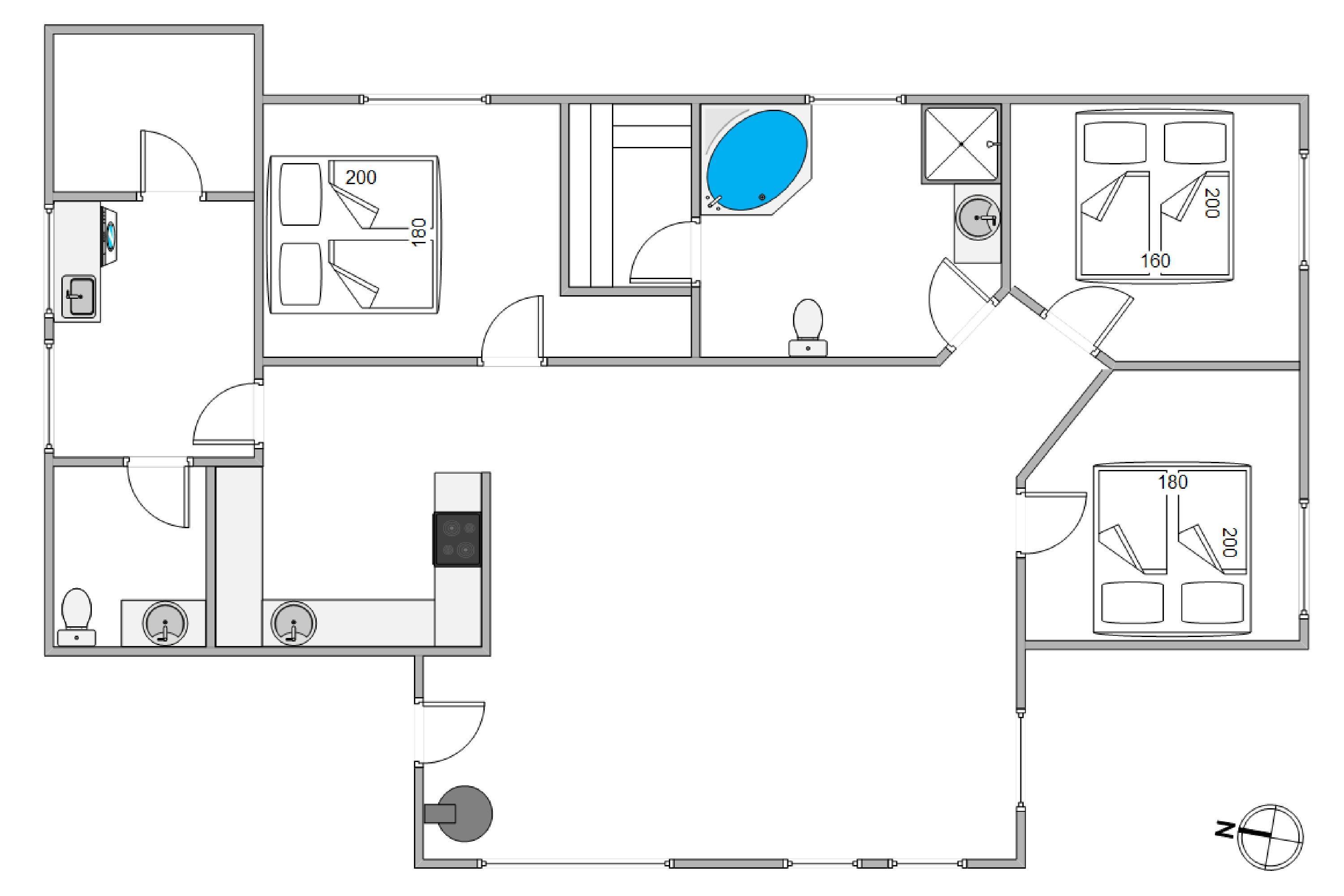 Badeværelset tilbyder en skøn tømmespa, perfekt til ren afslapning og velvære. Dertil findes der også et gæstetoilet, så I undgår kø og kan nyde en mere ubesværet feriedagligdag. Dette sommerhus er således klar til at levere både hyggelig charme og praktisk komfort under hele jeres ophold.