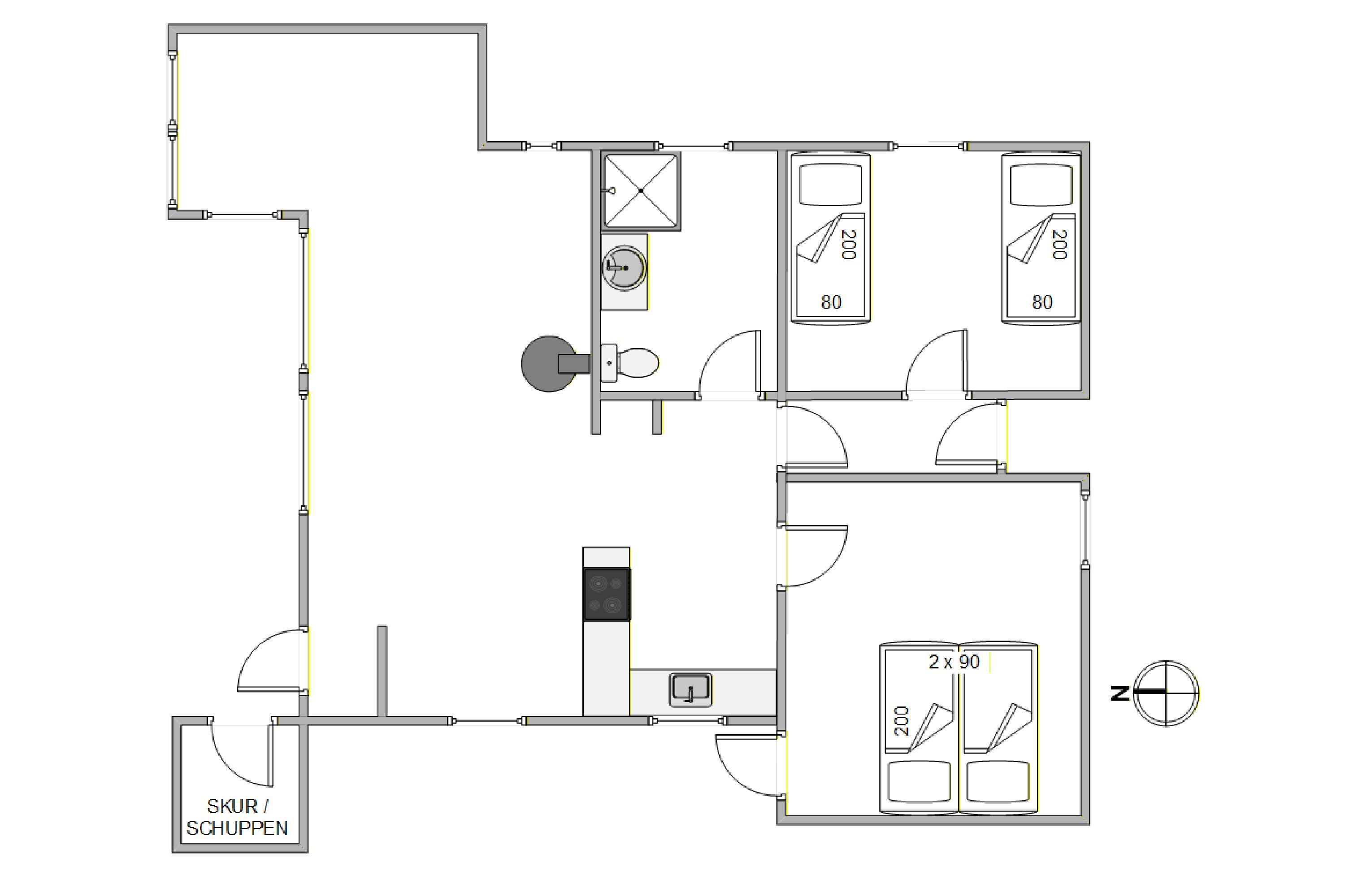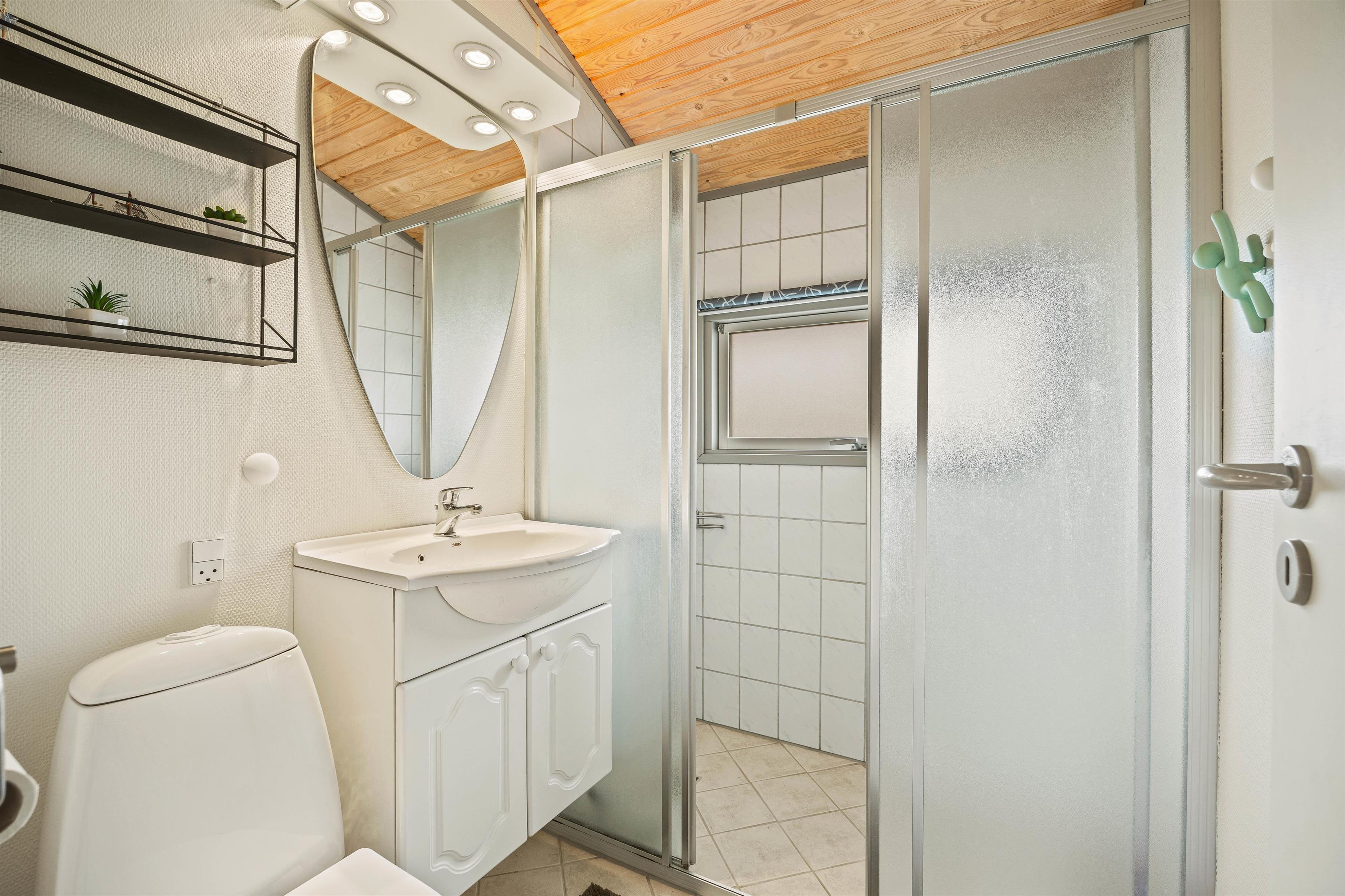 Sommerhuset tilbyder også et fint badeværelse med alle nødvendigheder, så I kan starte dagen, forfriskede og veloplagte. Med 4 sovepladser fordelt på 2 lyse og hyggelige soverum, er der rigeligt med plads til både afslapning og natlig ro, så alle vågner op med fornyet energi til en ny dag i ferielandet.