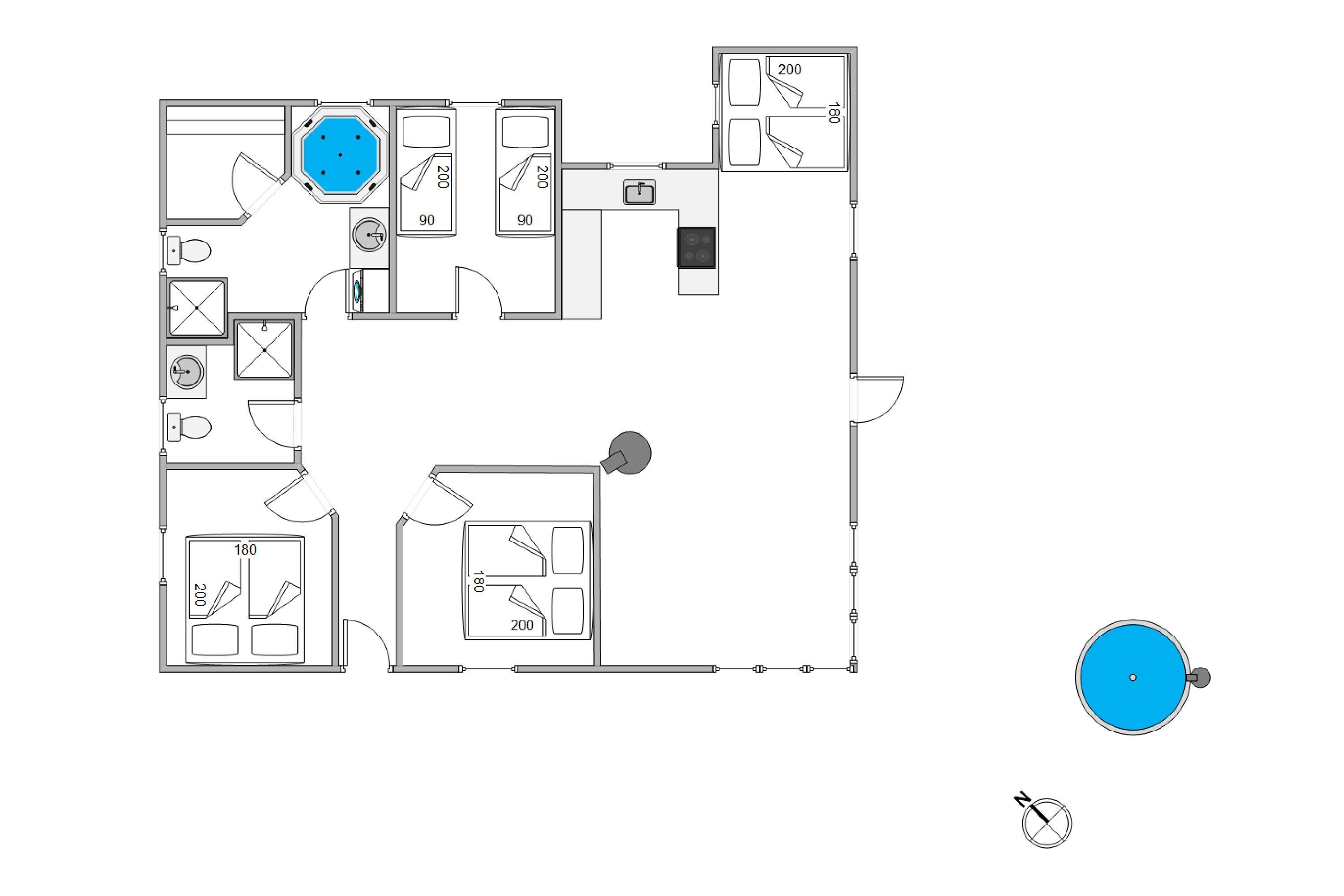 Efter en dag fuld af aktiviteter kan I slappe af i vildmarksbadet, der har plads til op til 5 personer. Denne fredfyldte oase af natur og underholdning er også praktisk for dem med elektrisk bil, da der findes et ladestik til el-bil ved sommerhuset, så I kan udforske området uden bekymringer over batteriniveau.