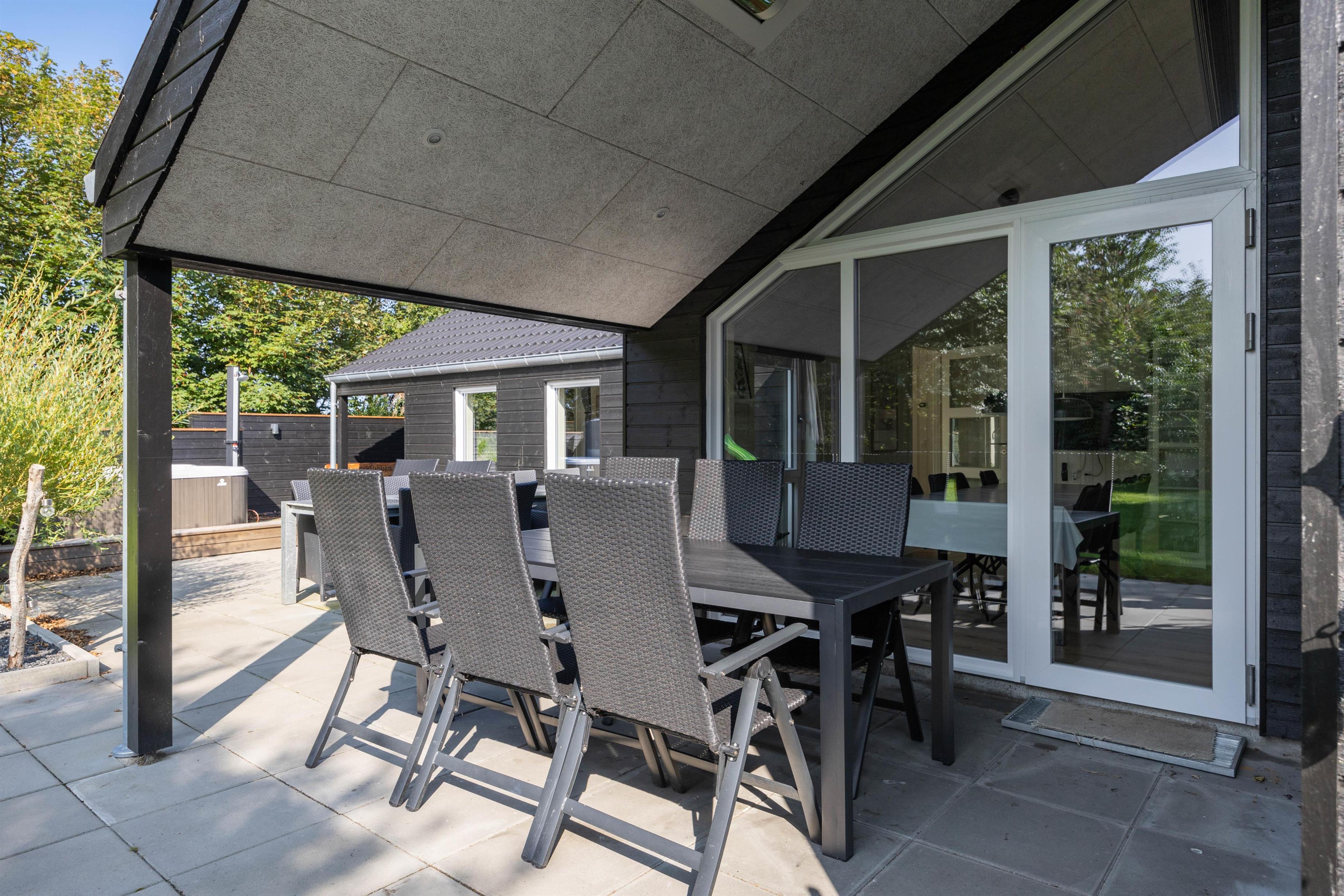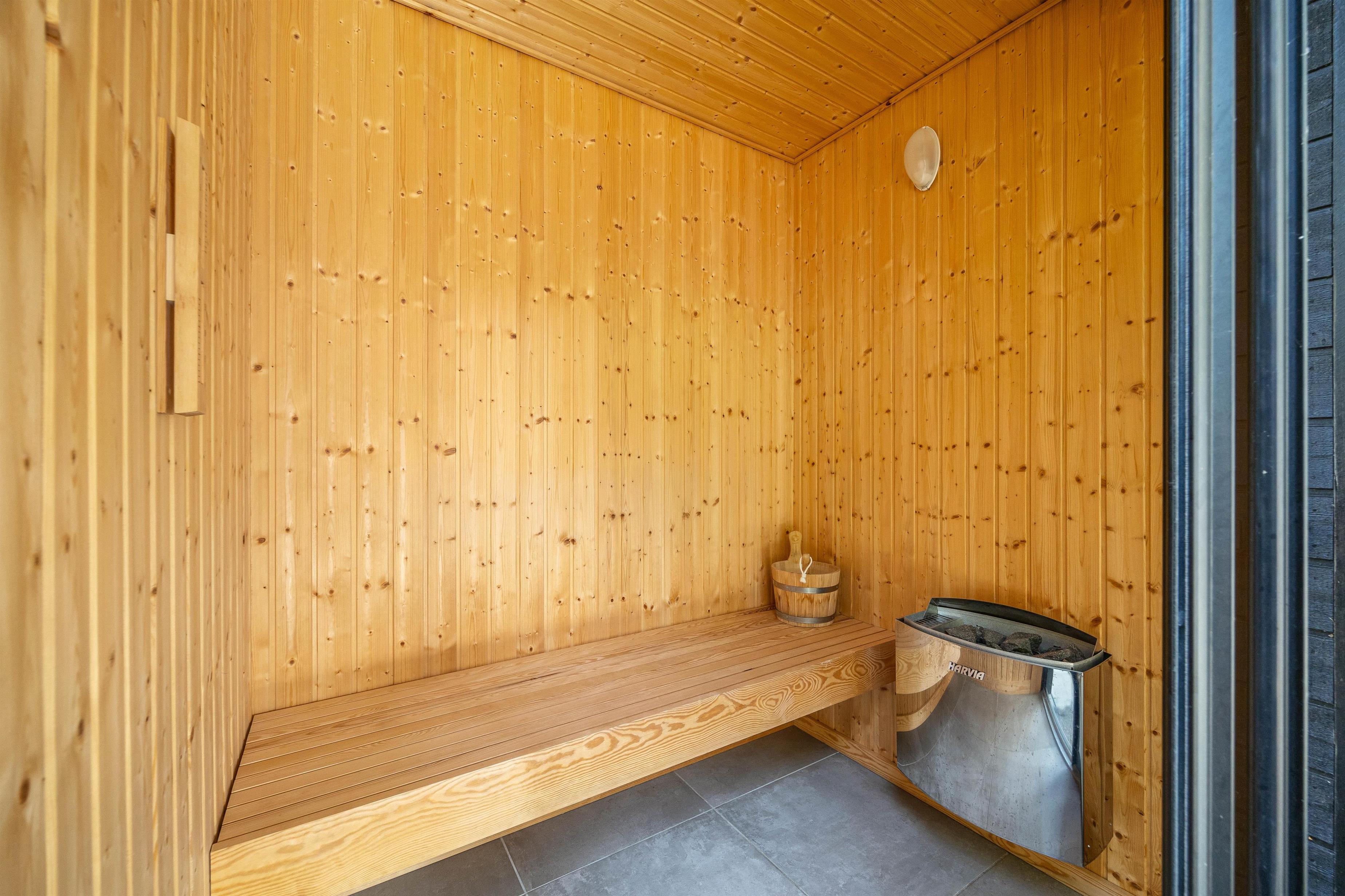 På den store, indbydende terrasse står et stort, udendørs spabad, hvor I rolig kan synke ned i de varme bobler og læne hovedet tilbage. Dertil kommer en lækker udendørs sauna, som fuldender den luksuriøse ferieoplevelse.