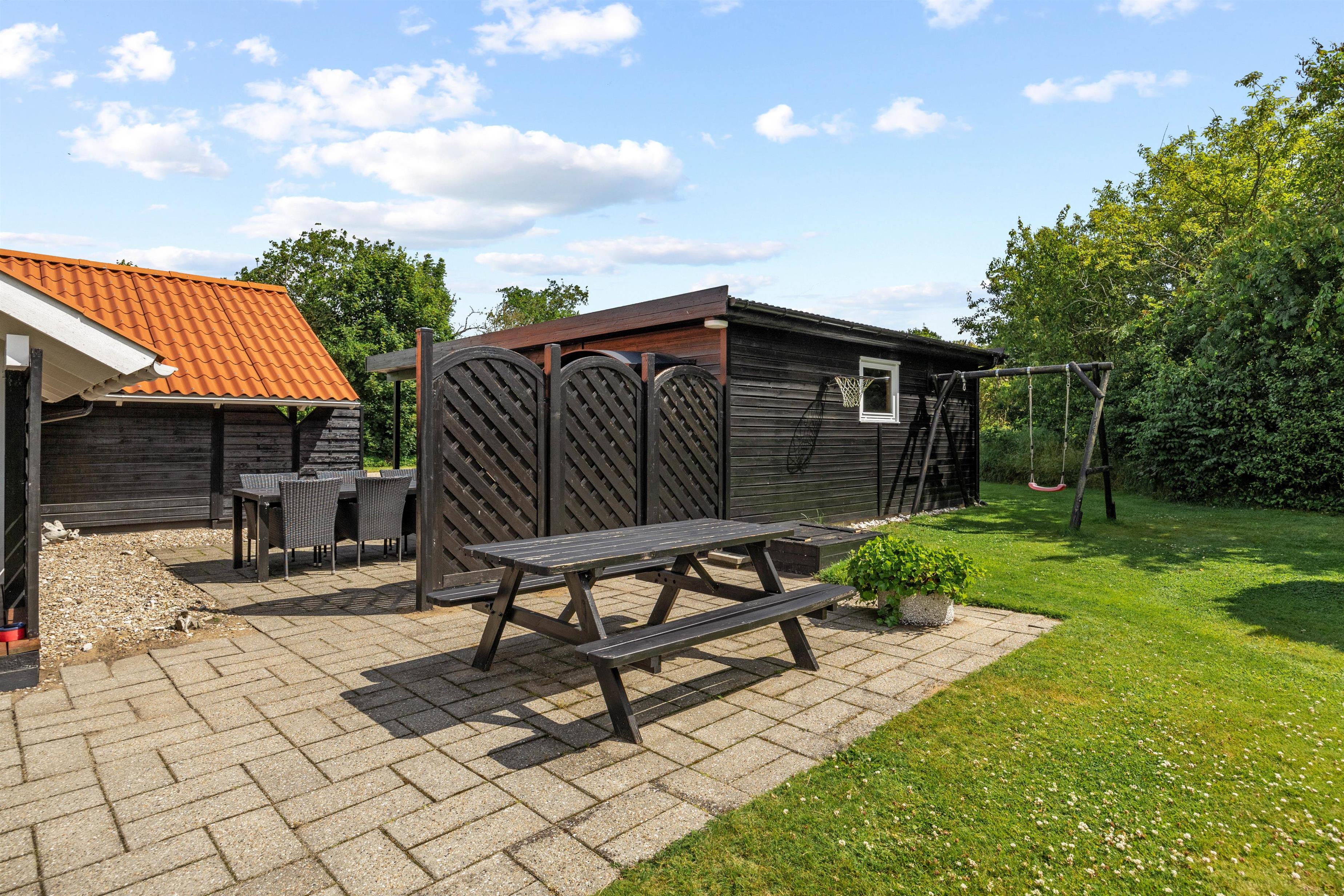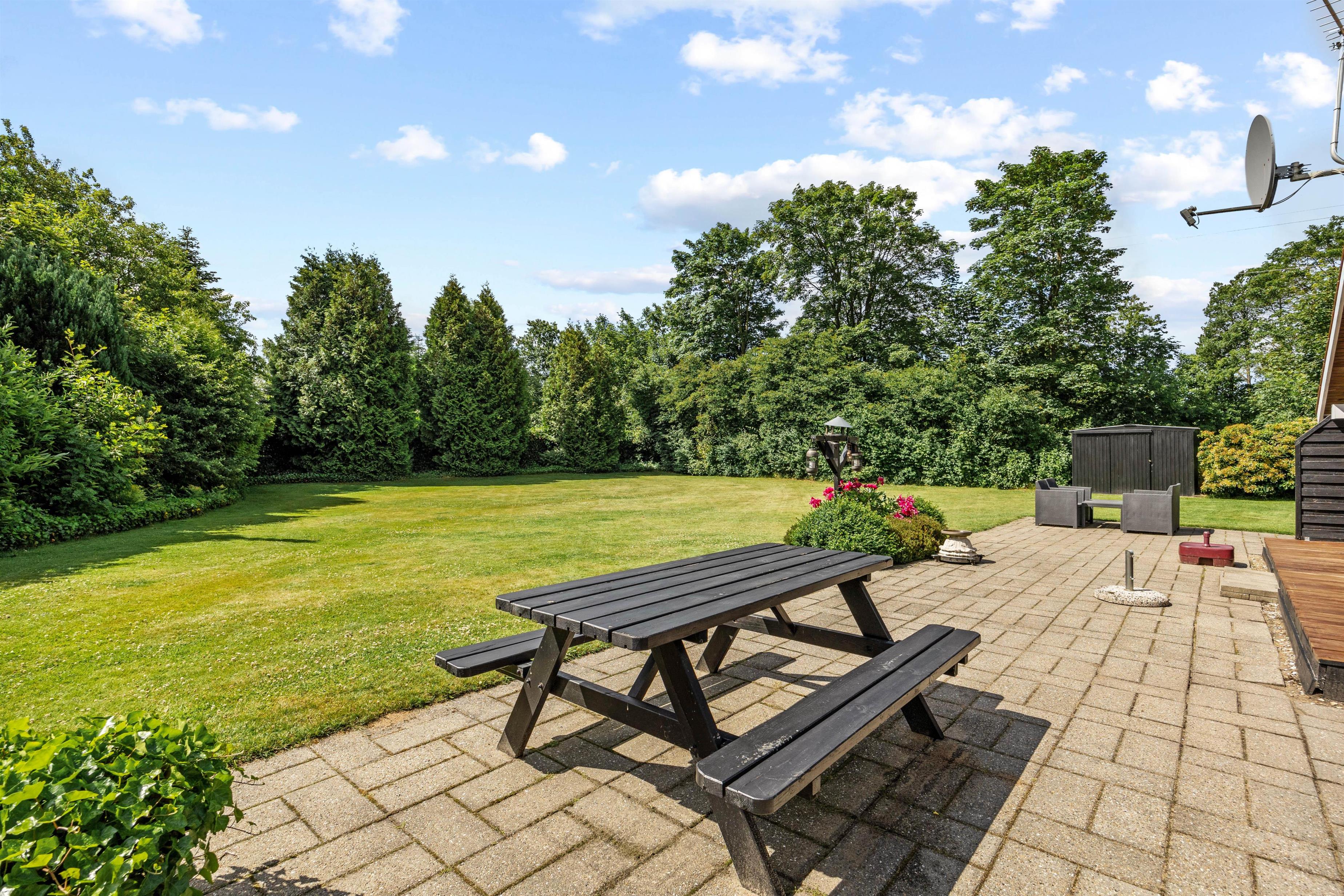 Den 1700m2 store plænegrund indbyder til både afslapning og aktive timer. På de solrige dage er det oplagt at nyde morgenkaffen eller noget køligt at drikke på den overdækkede terrasse. Havemøblerne giver rig mulighed for at samle familie og venner til hyggelige grillmåltider og samtaler, der trækker ud til langt ud på aftenen. Haven er også et paradis for børnene, med både gynge og sandkasse, som sikrer timevis af leg og fornøjelse i det fri.
