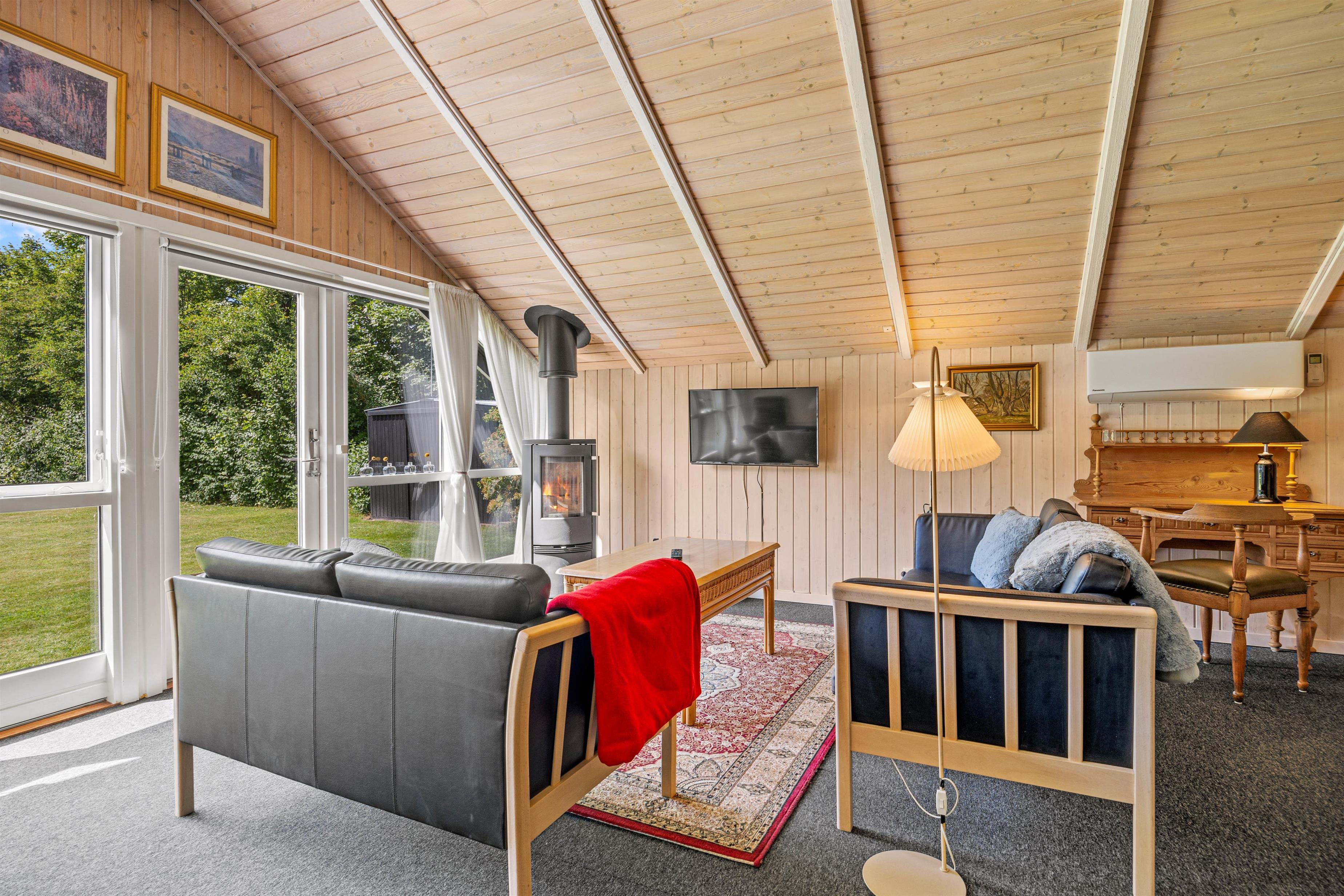 Sommerhuset byder på 3 dejligt soveværelser, som giver jer den perfekte mulighed for en god nats søvn, så I vågner friske og veludhvilede – klar til en ny dag fyldt med eventyr. De hyggelige aftener kan nydes foran brændeovnen, hvor den knitrende ild spreder både varme og en helt speciel sommerhusstemning. Med Chromecast kan I streame jeres yndlingsfilm eller serier, hvilket gør det nemt at hygge indenfor, når vejret ikke viser sig fra sin bedste side.