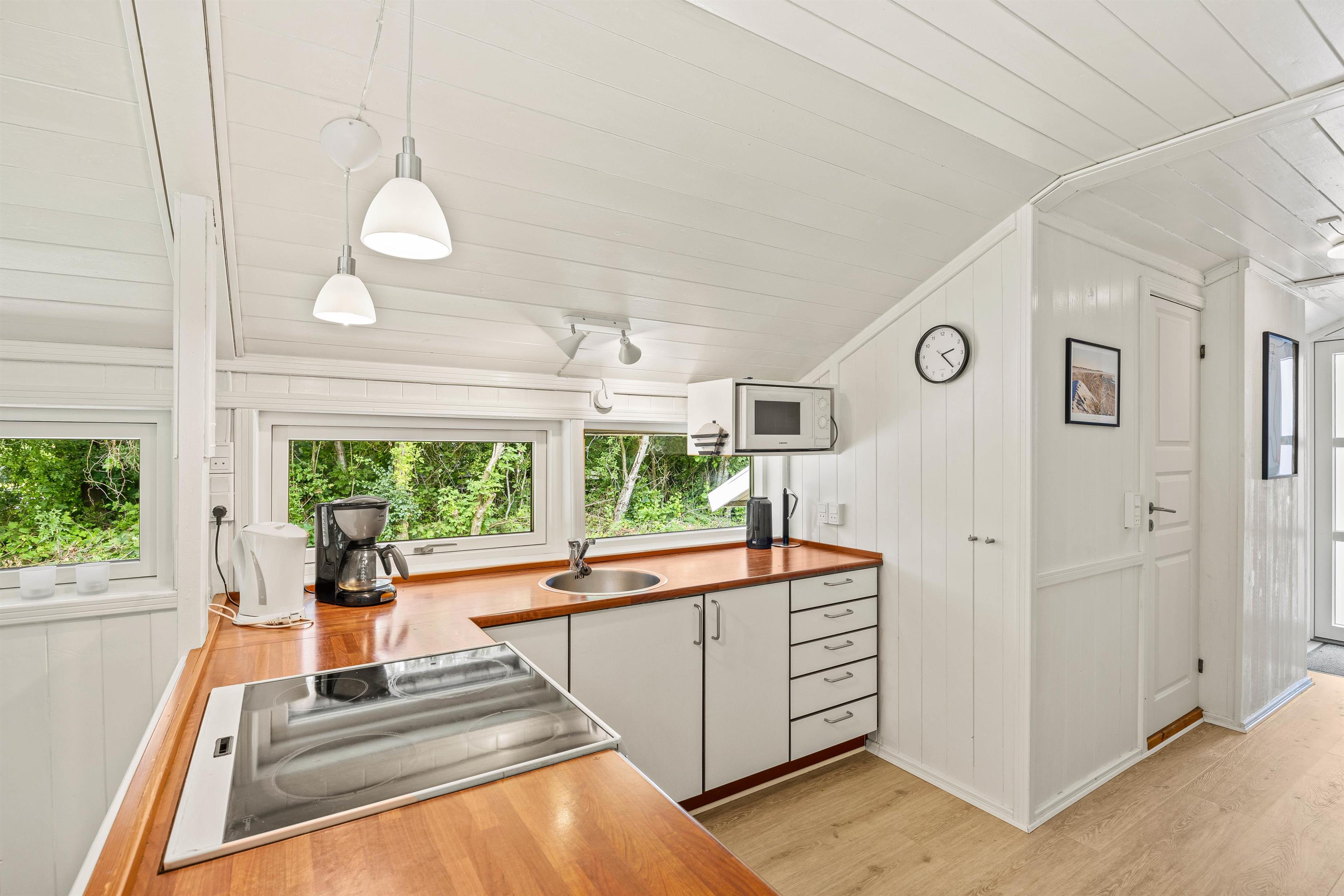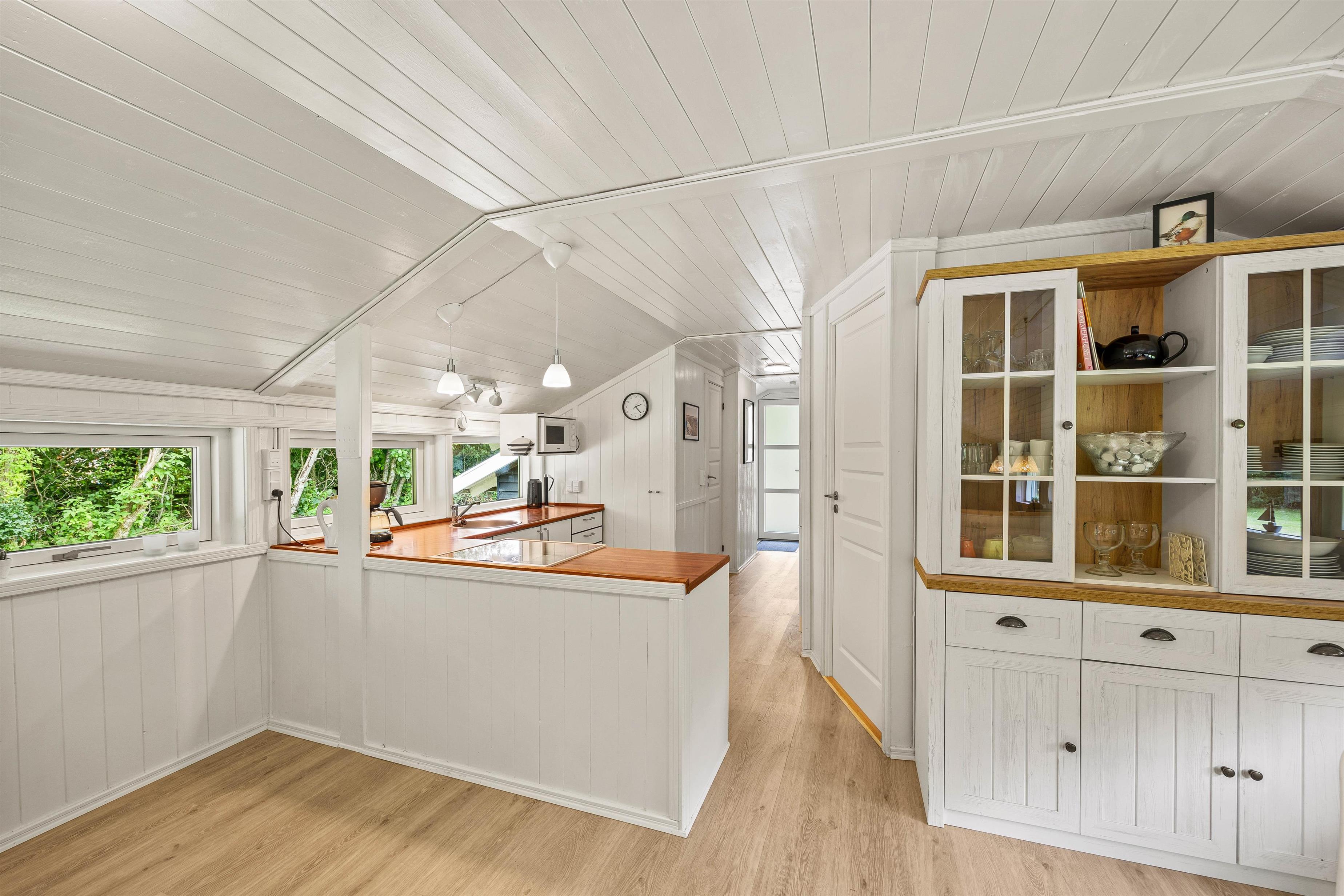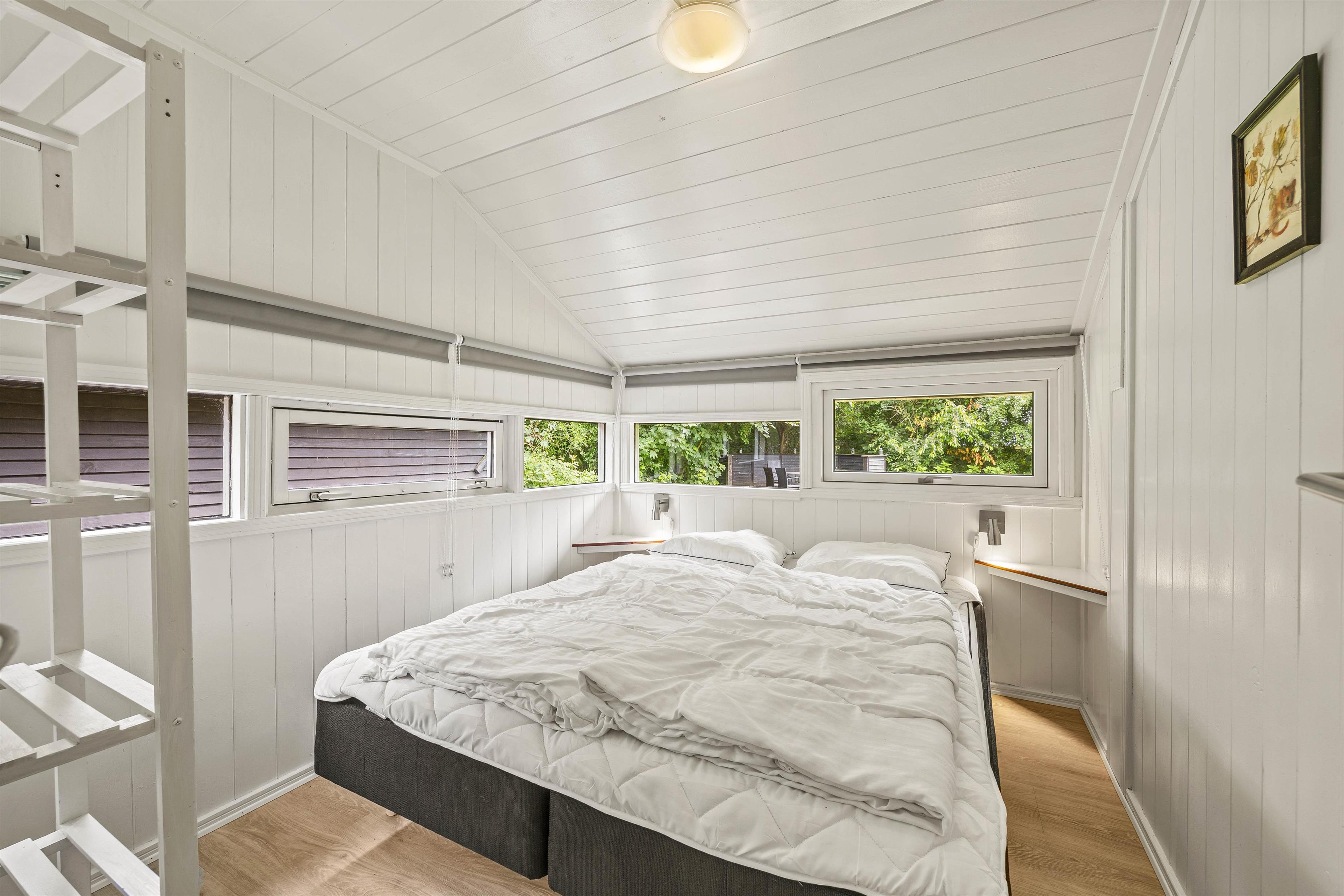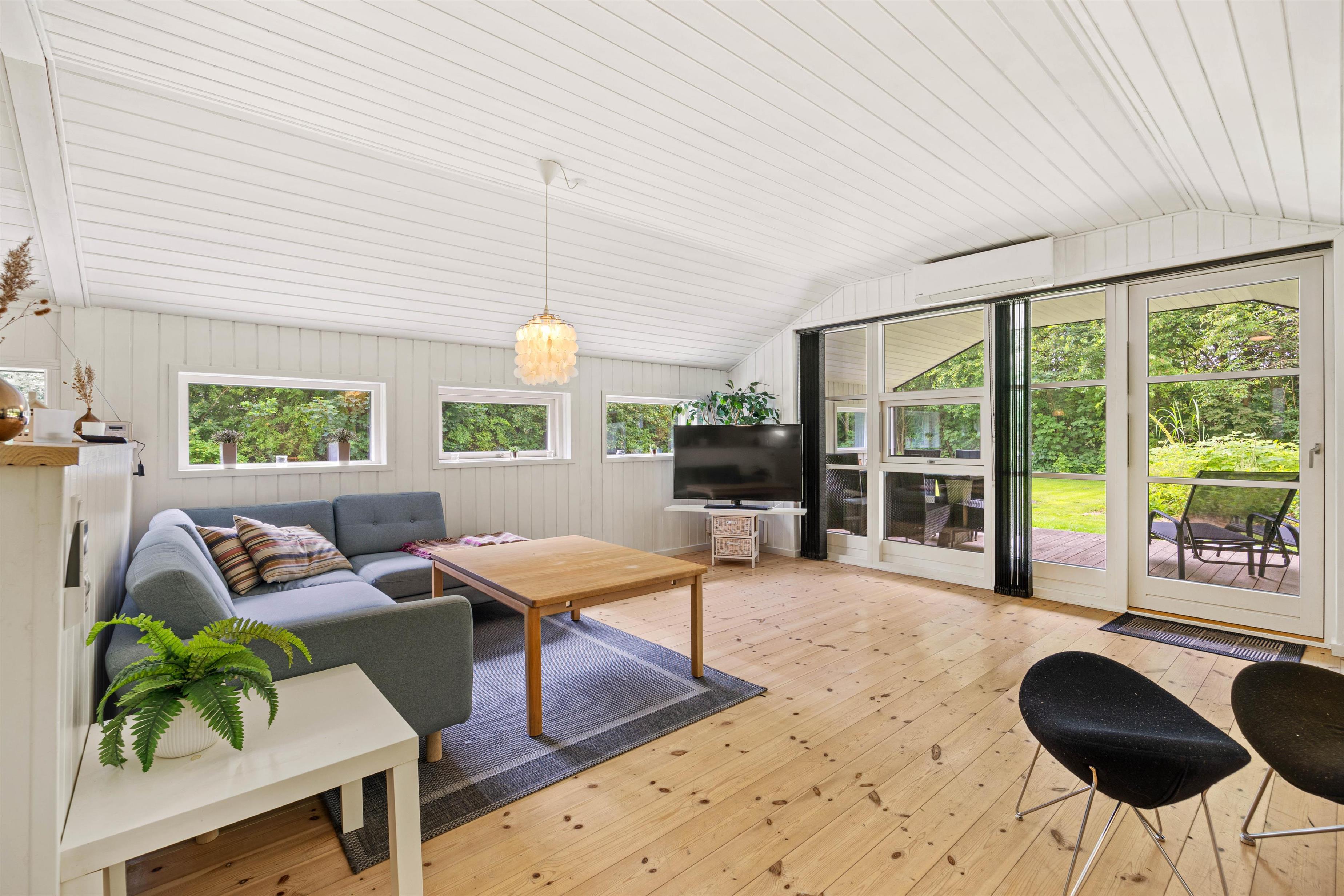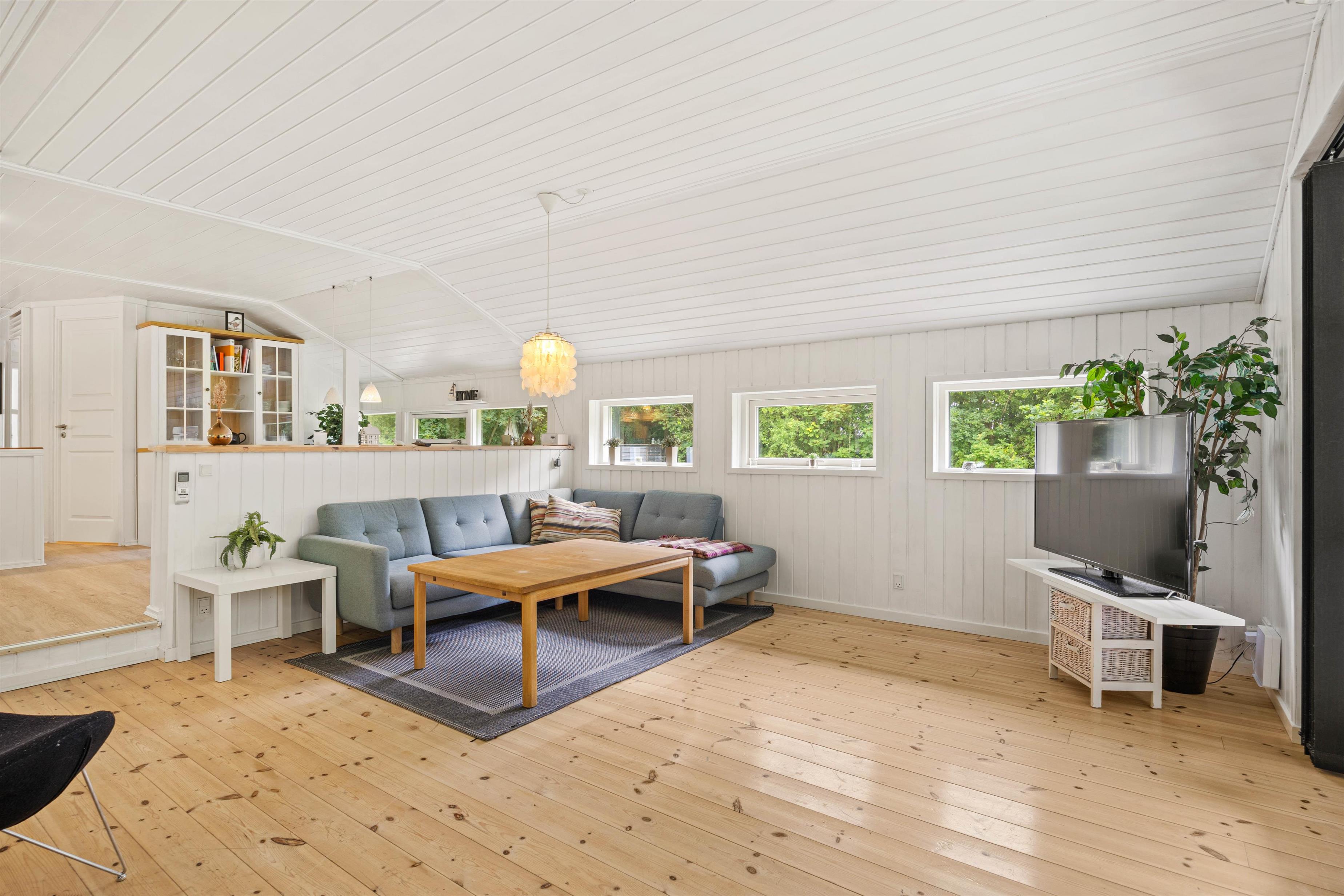 Her er 3 soveværelser, så I er sikret en god nattesøvn. Sommerhuset på Birkelunden 11 er udstyret med hverdagens vigtigste hjælpere; en energibesparende varmepumpe, en 50L fryser og opvaskemaskinen klarer opvasken for jer.