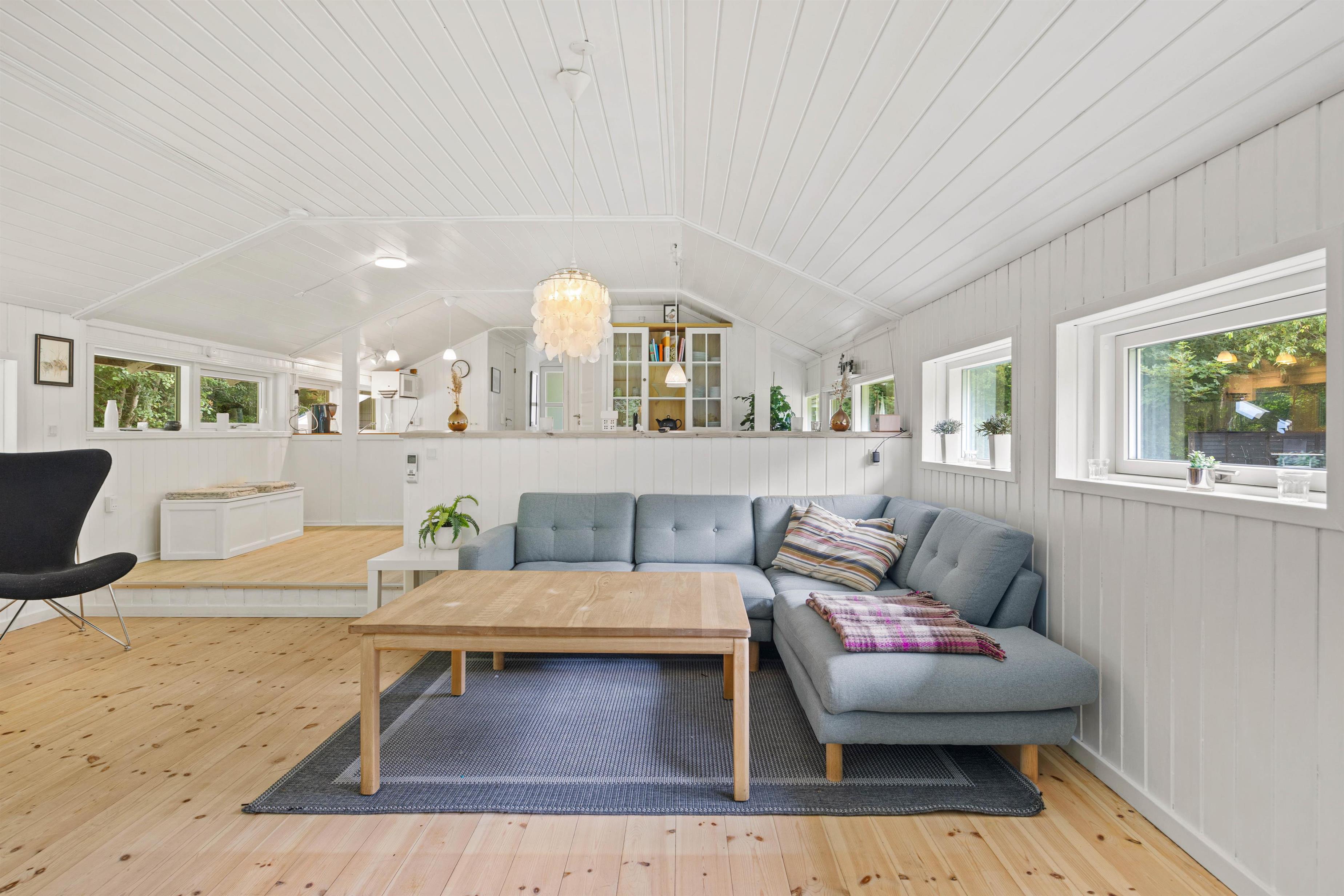 Velkommen på Birkelunden 11 i Jegum. Med sine 85 m2 er her plads til 5 glade feriegæster. Feriehuset er hyggeligt og enkelt indrettet med behagelige møbler og vinduerne inviterer dagslyset indenfor. Her er åbent køkken/opholdsrum til familielivet og plads til både fællesmadlavning i køkkenet og brætspilsaftner. I stuen sørger brændeovnen for den rette feriestemning. Sid her med en god bog, en friskbrygget kop kaffe og mærk varmen brede sig - dét er ægte sommerhushygge.