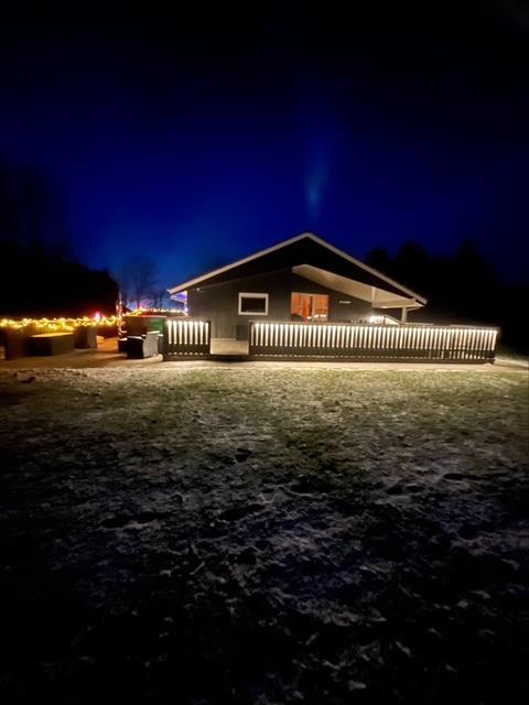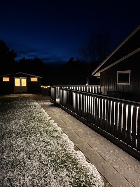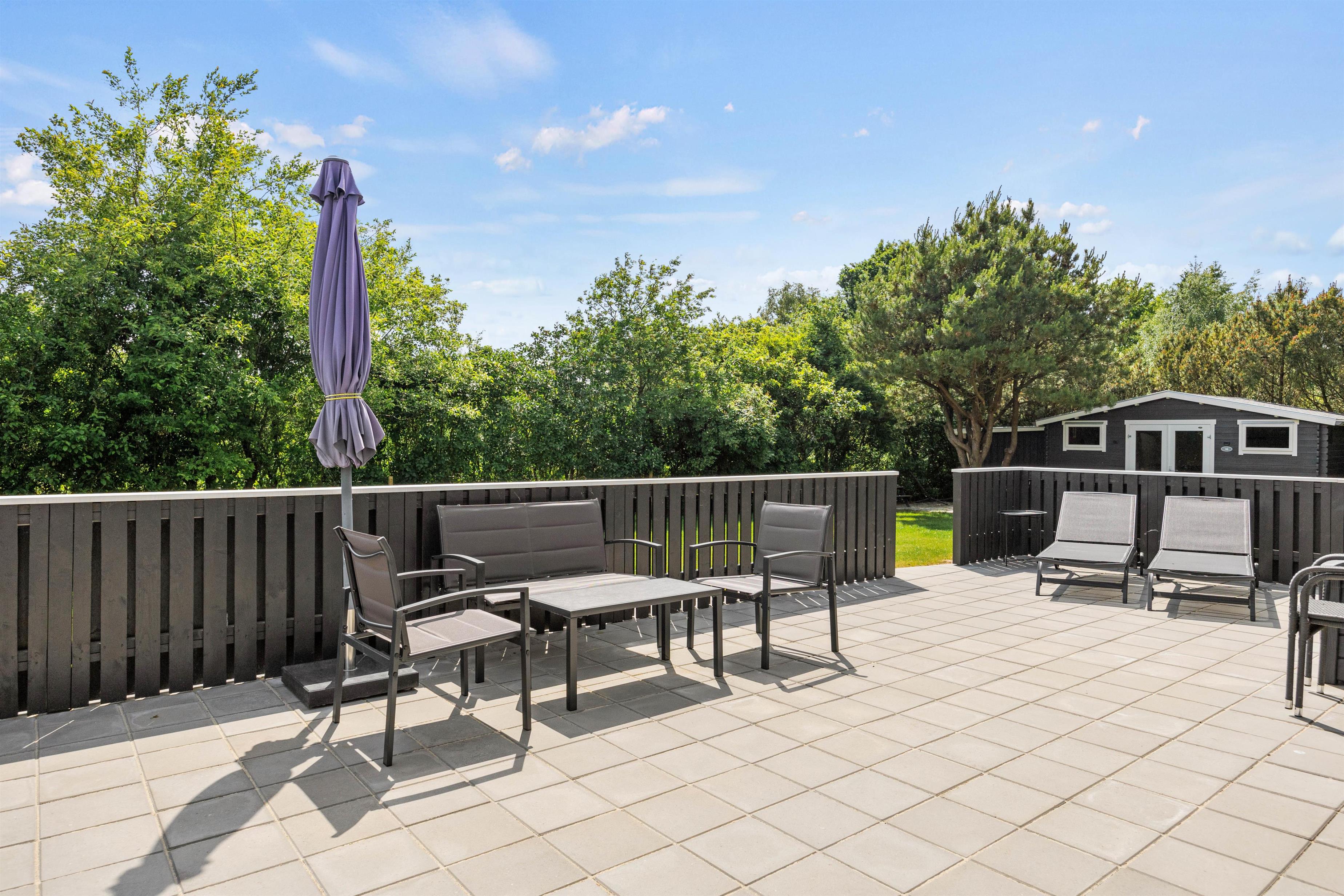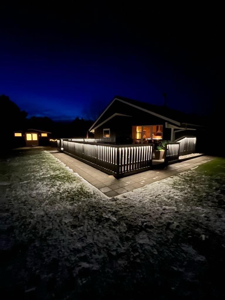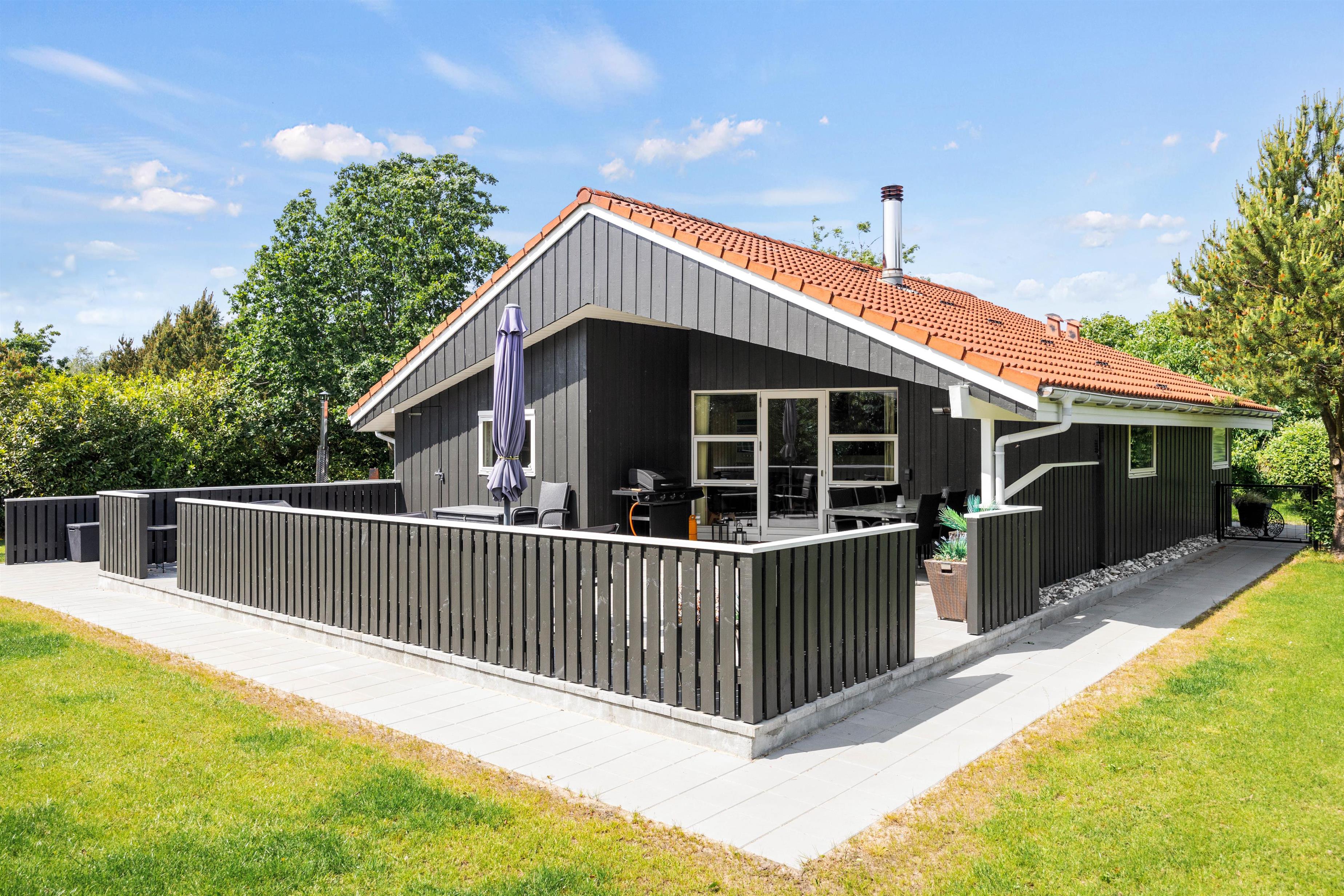 Fra stuen kan I træde ud på den overdækkede terrasse, som forlænger opholdsrummet ud i det fri og giver mulighed for at nyde frisk luft i al slags vejr. Udearealerne er indbydende med en afskærmet terrasse, hvor I uforstyrrede kan nyde måltider ved grillen og slappe af i havemøblerne. For at fuldende oplevelsen kan I også synke ned i det indbydende vildmarksbad for en perfekt afslutning på dagen.