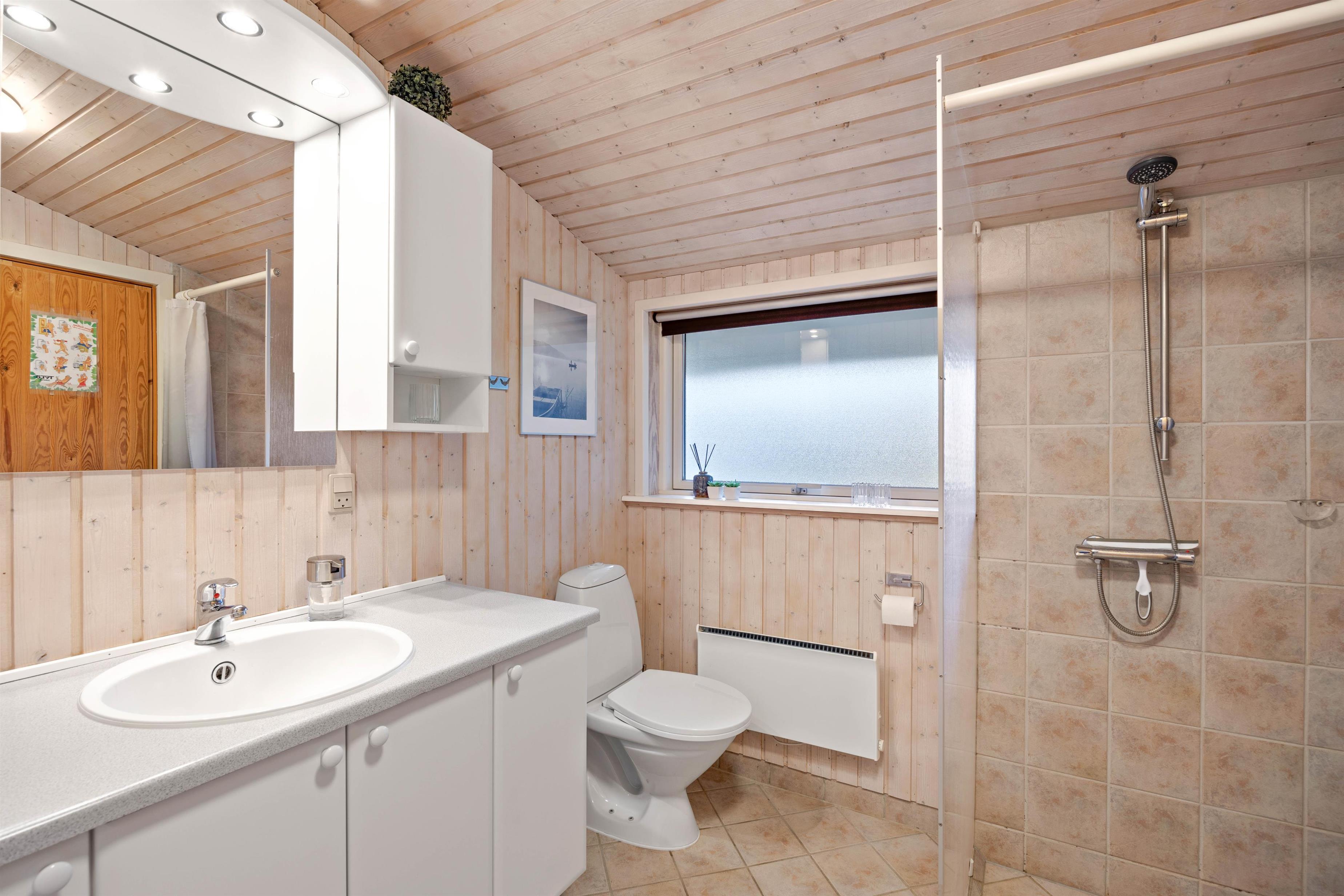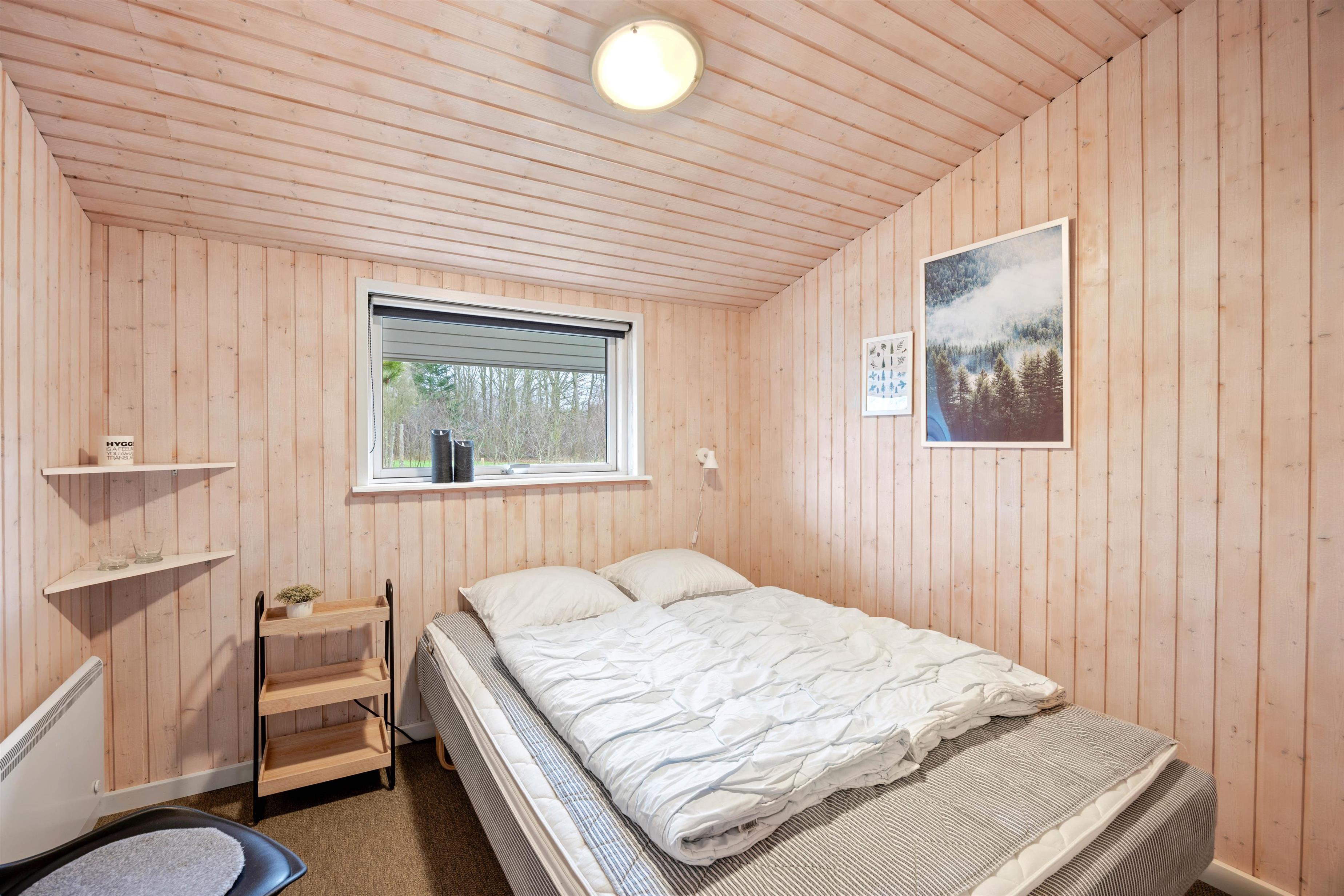 I forhold til sovepladser tilbyder sommerhuset 3 rummelige soveværelser, alle udstyret med dobbeltsenge. Badeværelset fuldender boligen med sin funktionelle indretning og luksuriøs gulvvarme samt sauna, der sikrer velvære på selv de køligere dage. Der er også vaskemaskine og tørretumbler, så garderoben kan holdes ren under hele opholdet.