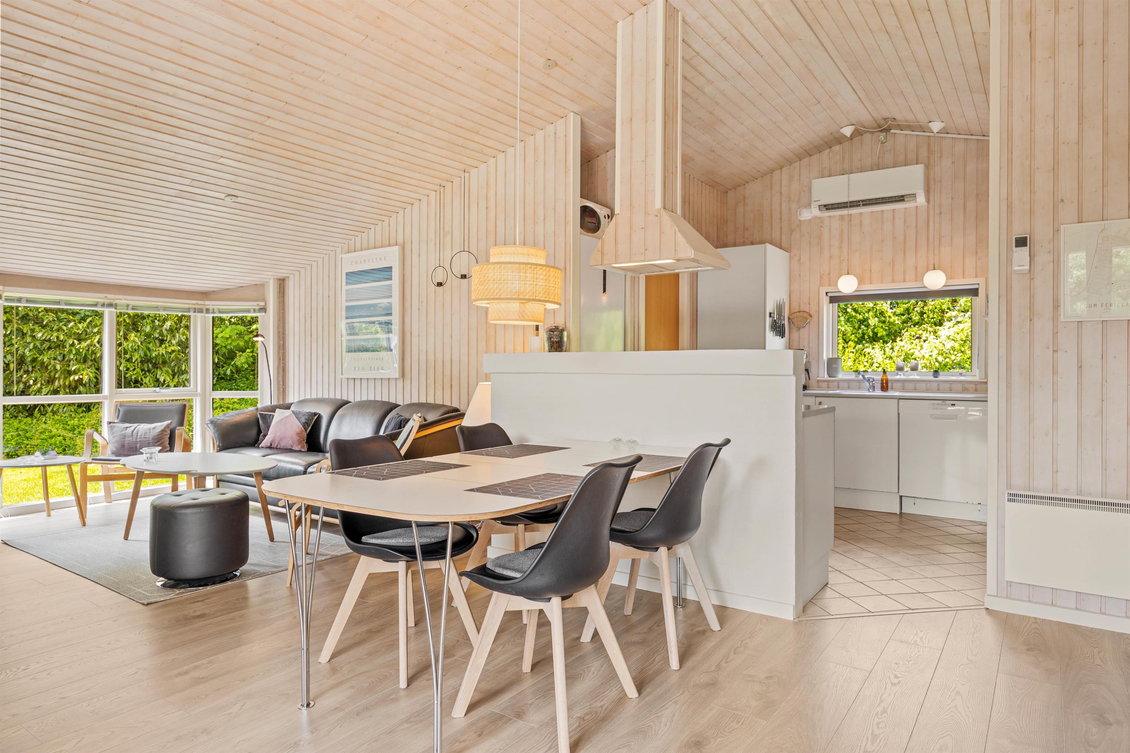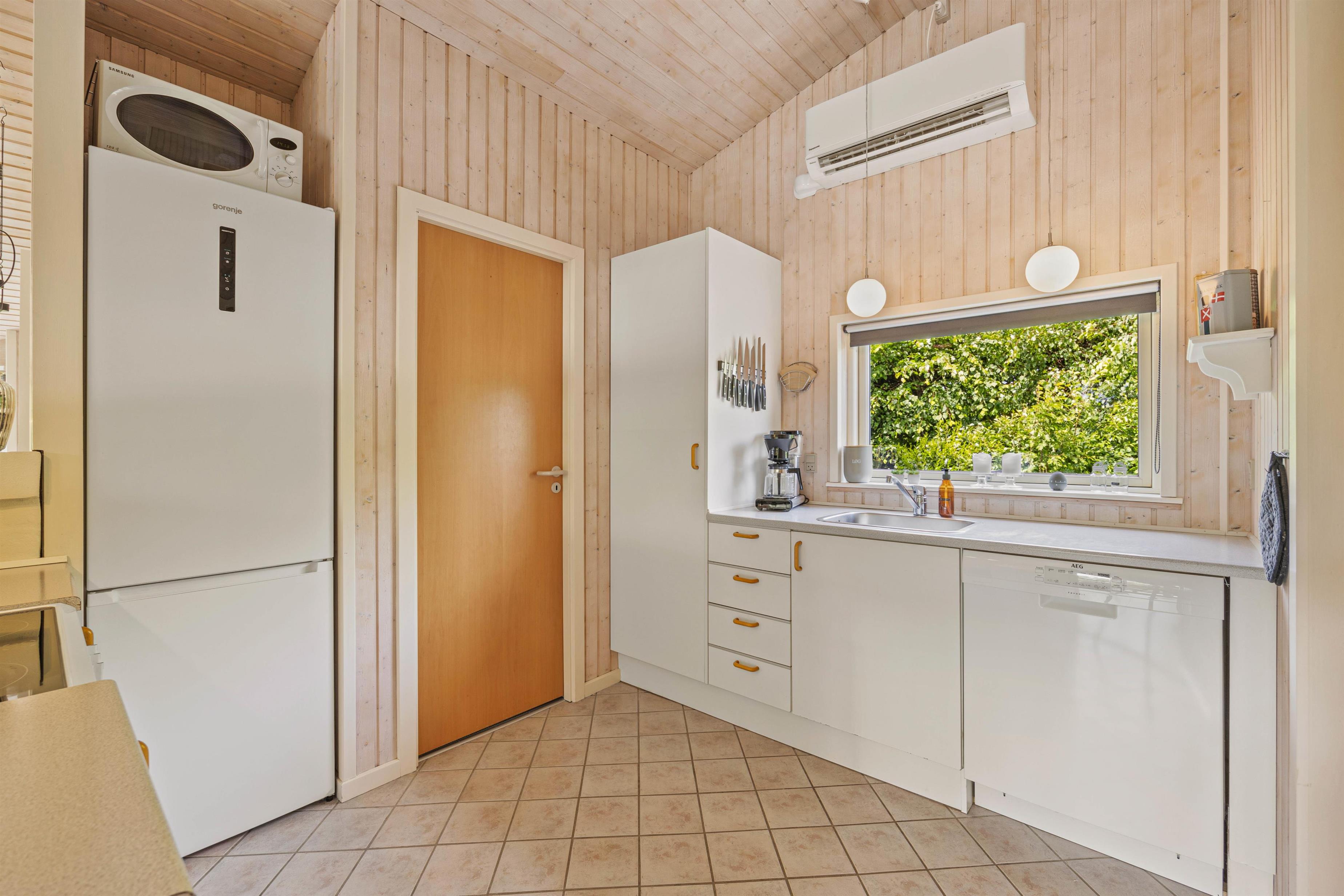 Inde i sommerhuset træder I først ind i det veludstyrede køkken, som er praktisk indrettet med opvaskemaskine. Her kan I tilberede lækre måltider og nemt klare de huslige pligter. Stuealrummet venter lige ved siden af og er lyst indrettet med snas for de hyggelige deltajer, hvor brændeovnen skaber en hyggelig atmosfære. Den skønne alkove skaber en ekstra hyggekrog, hvor man kan nyde en god bog.