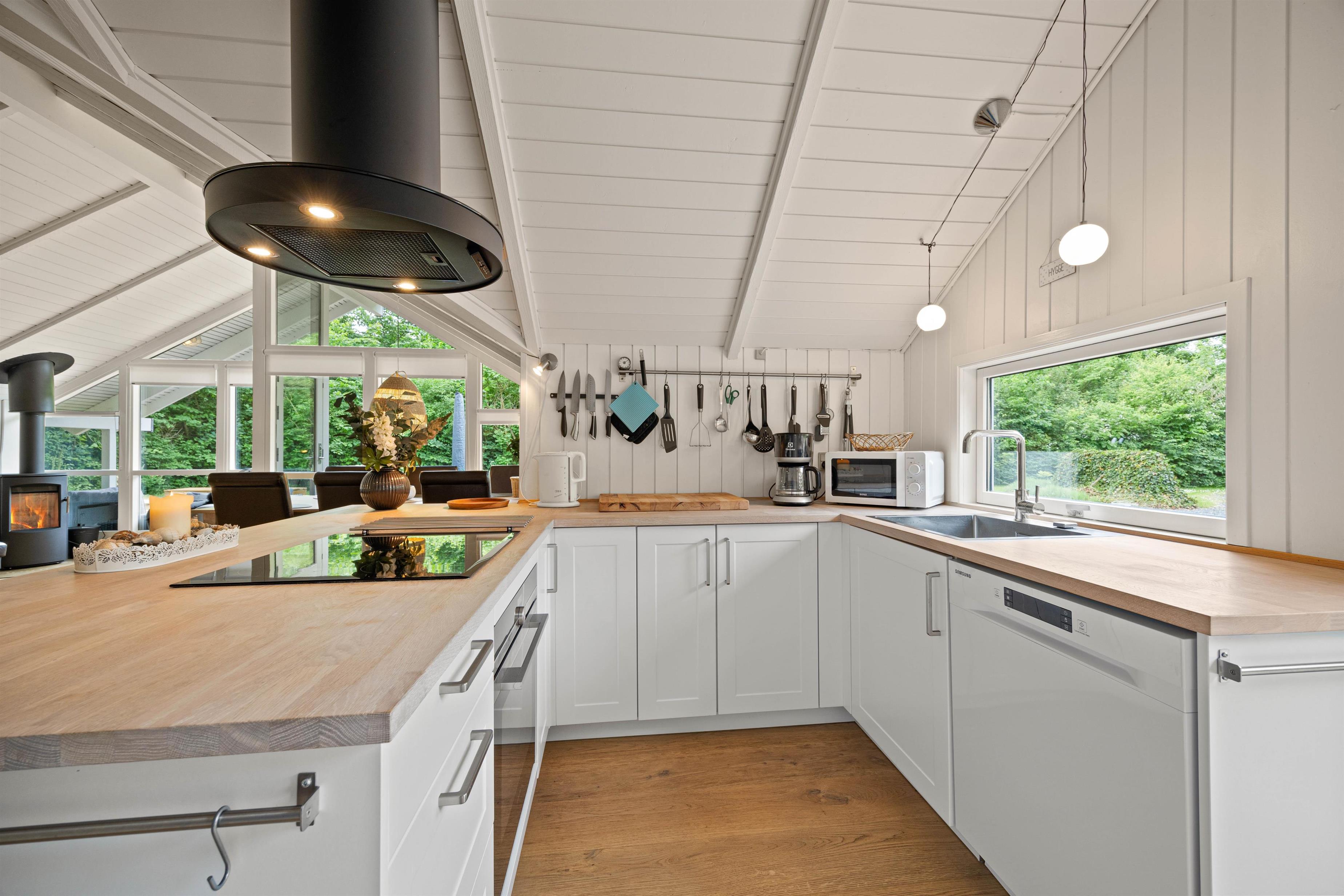 Ferienhuset byder på 3 soveværelser med dobbeltsenge. Værelserne er lyst og venligt indrettet. Efter en god nats søvn og tanken fyldt med energi kan I hygge jer med fælles madlavning i det åben køkkenalrum. Køkkenet er stort nok til at børnene kan deltage, hvad enten det er morgenmaden, aftensmaden eller måske en hjemmebagt kage, der skal fremtrylles. Og når kokkene er færdige med kreationerne, tager husets opvaskemaskine sig af resten.