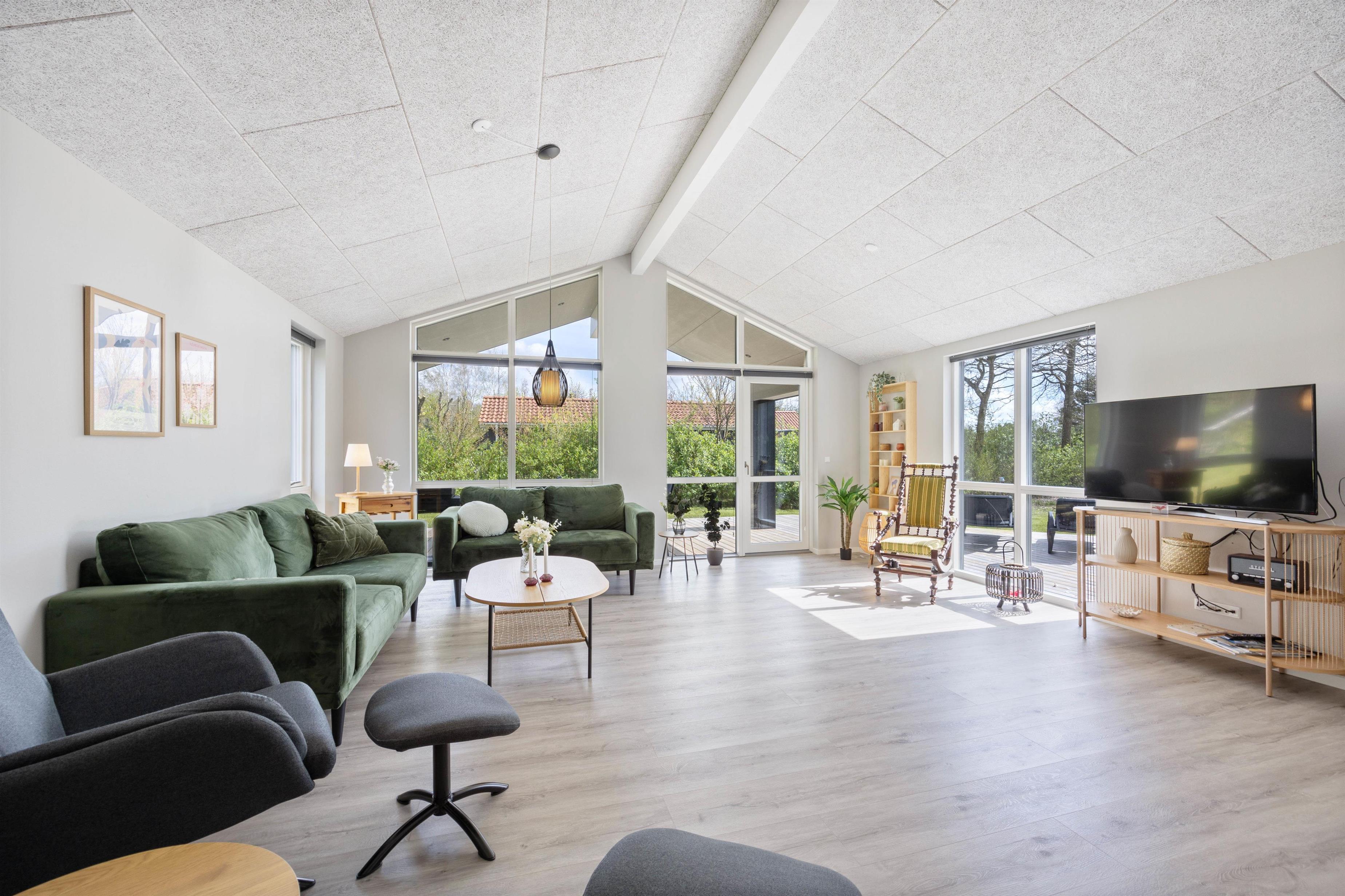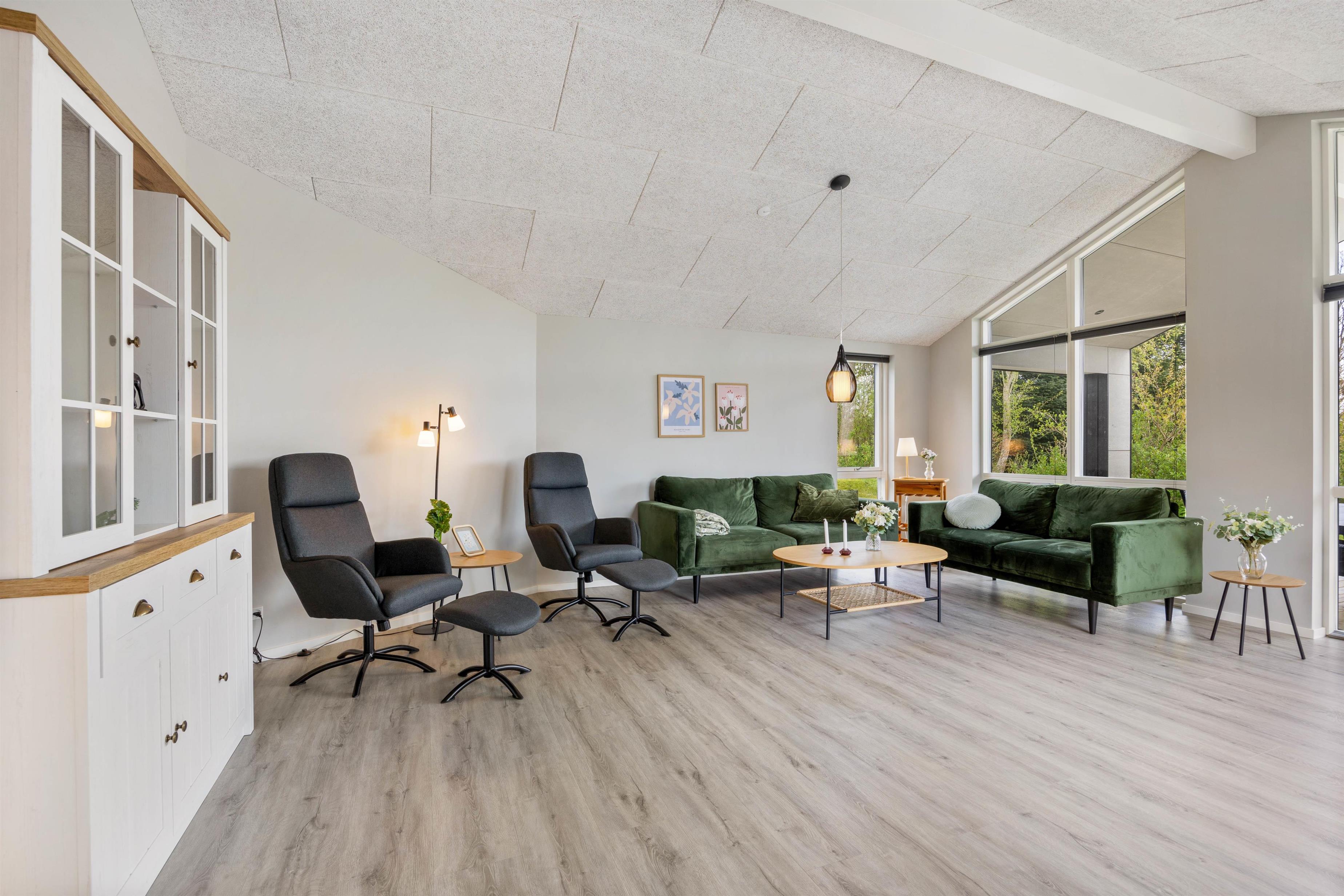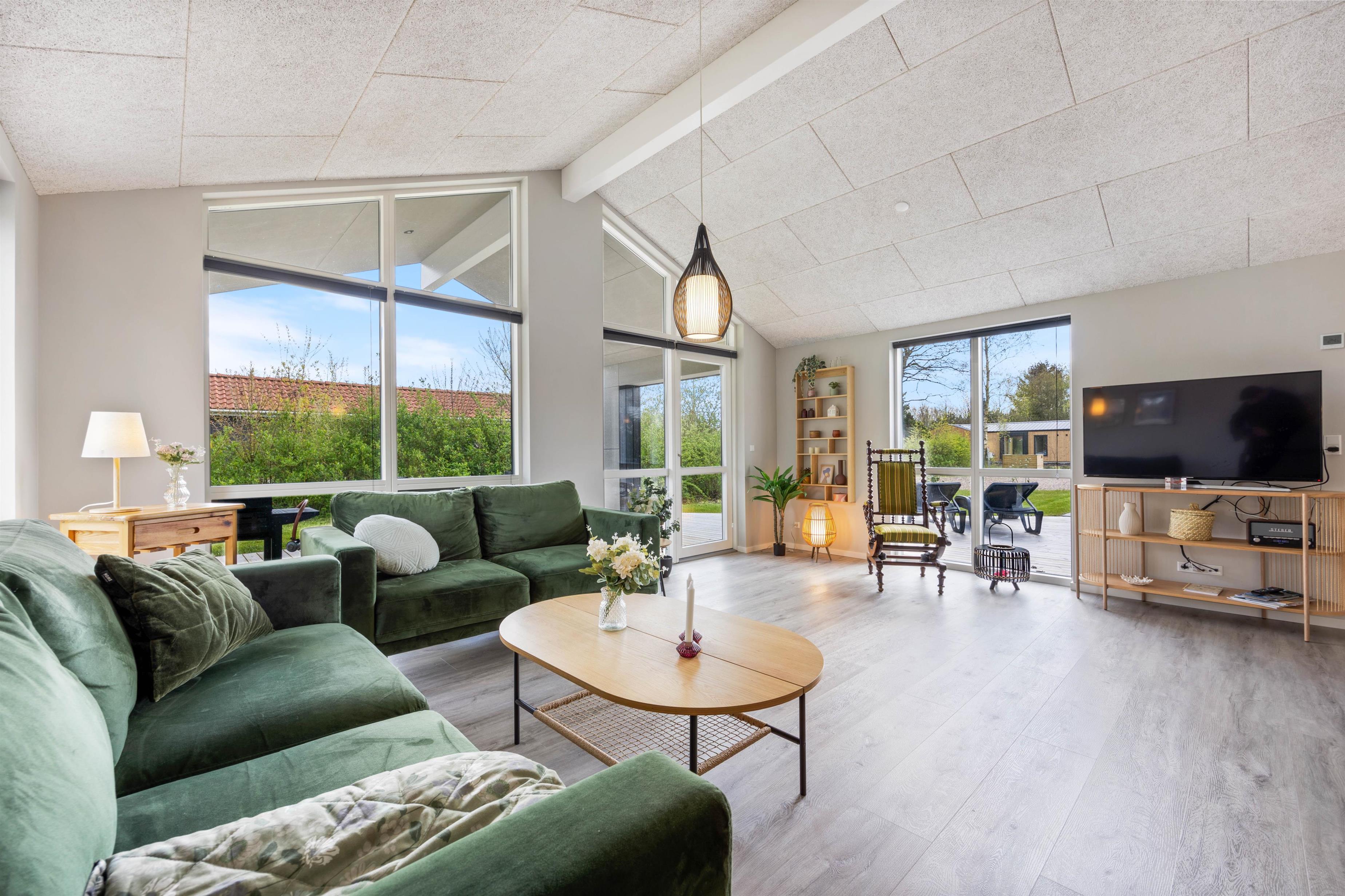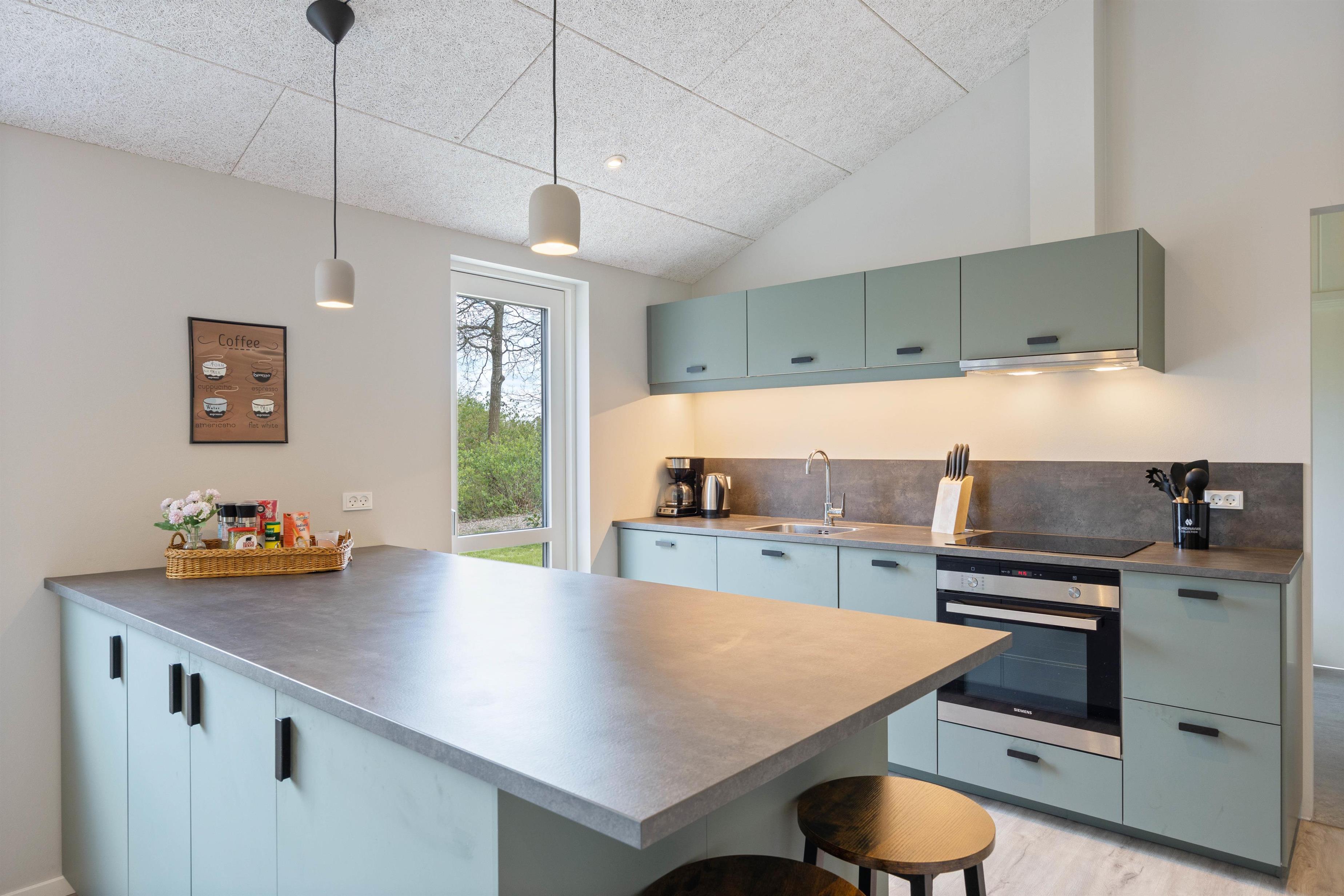 Hjertet af sommerhuset er det store vinklede køkkenalrum, hvor stuen ligger i forlængelse. Ligesom i resten af feriehuset er her en smagfuld indretning, og gennem de store vinduespartier strømmer dagslyset ind. Her kan I grine sammen, lave dejlig mad i det funktionelle køkken og læse en god krimi i en af de behagelige lænestole. Fra stuen kan I hurtigt tilgå aktivitetsrummet, hvor I kan udfordre hinanden i bordfodbold. Også her er der en hyggelig sofakrog, hvor I kan lave jeres egen mini-biograf med en god film og popcorn.
