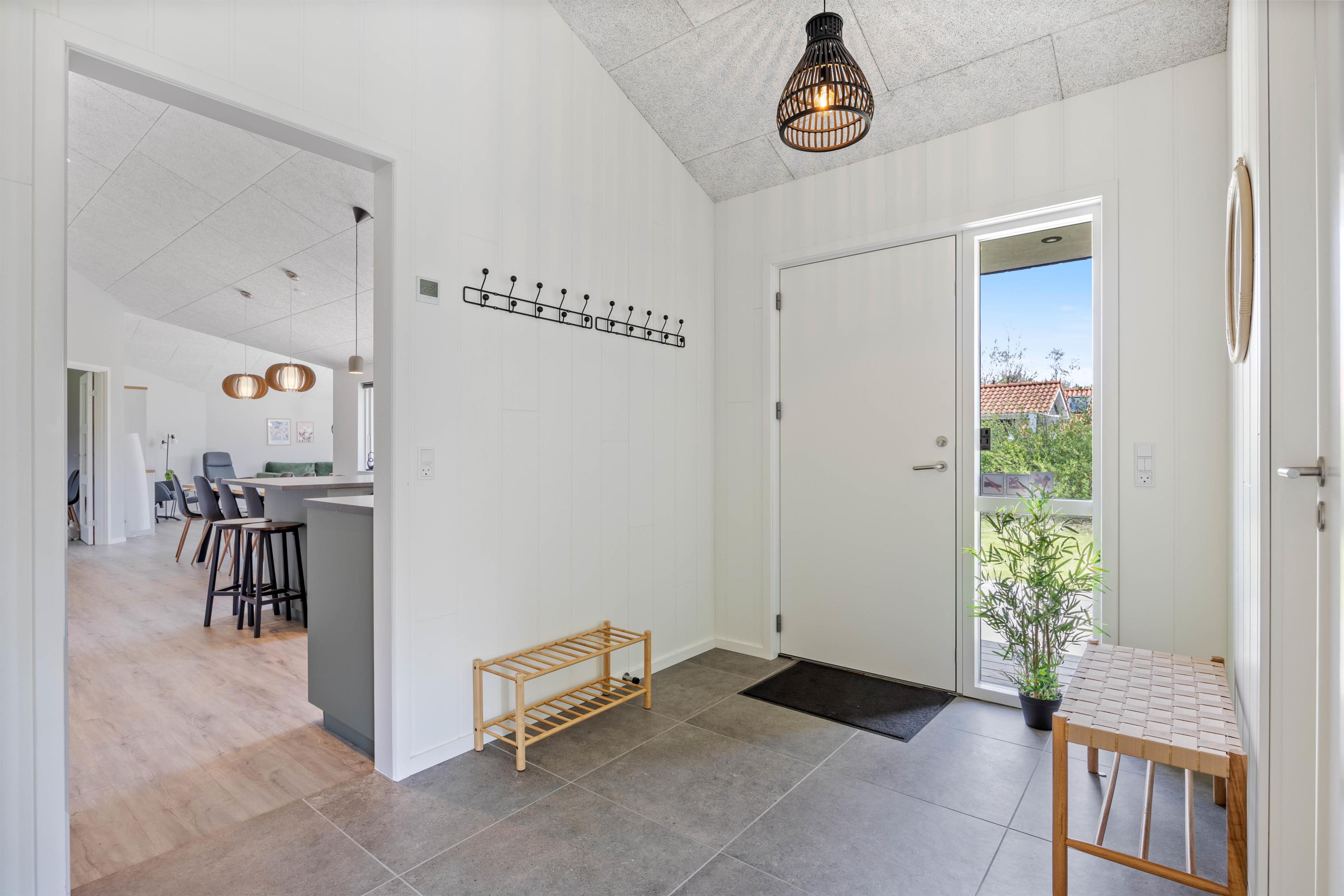 På en stor plænegrundt finder I dette skønne rummelige feriehus. Et moderne og lyst sommerhus til otte feriegæster med et skønt uderum, der blandt andet byder på en lækker terrasse, udespa og udebruser. Fritidshuset er beliggende i børnevenlige Jegum Ferieland nær købmanden og en lille café. Velkommen på Hybenvangen 30!
