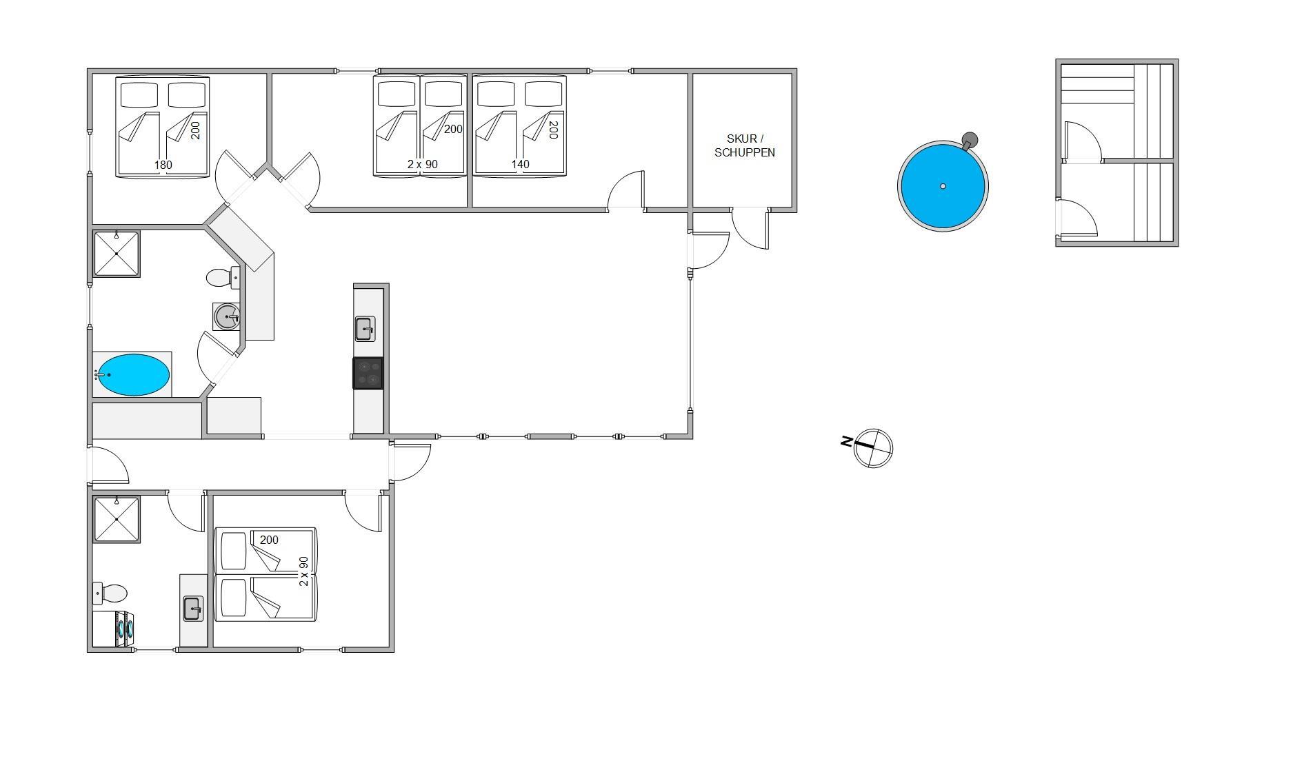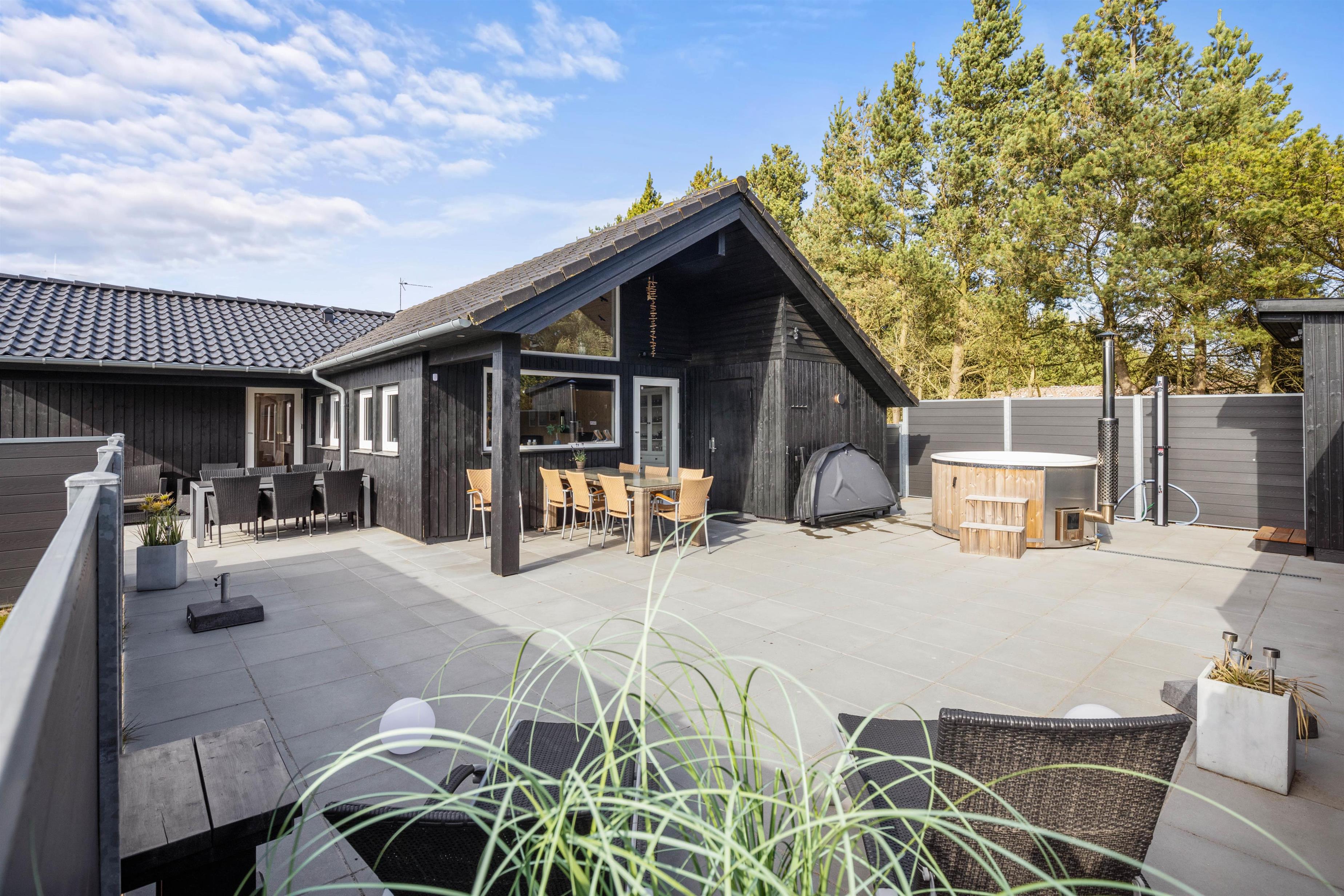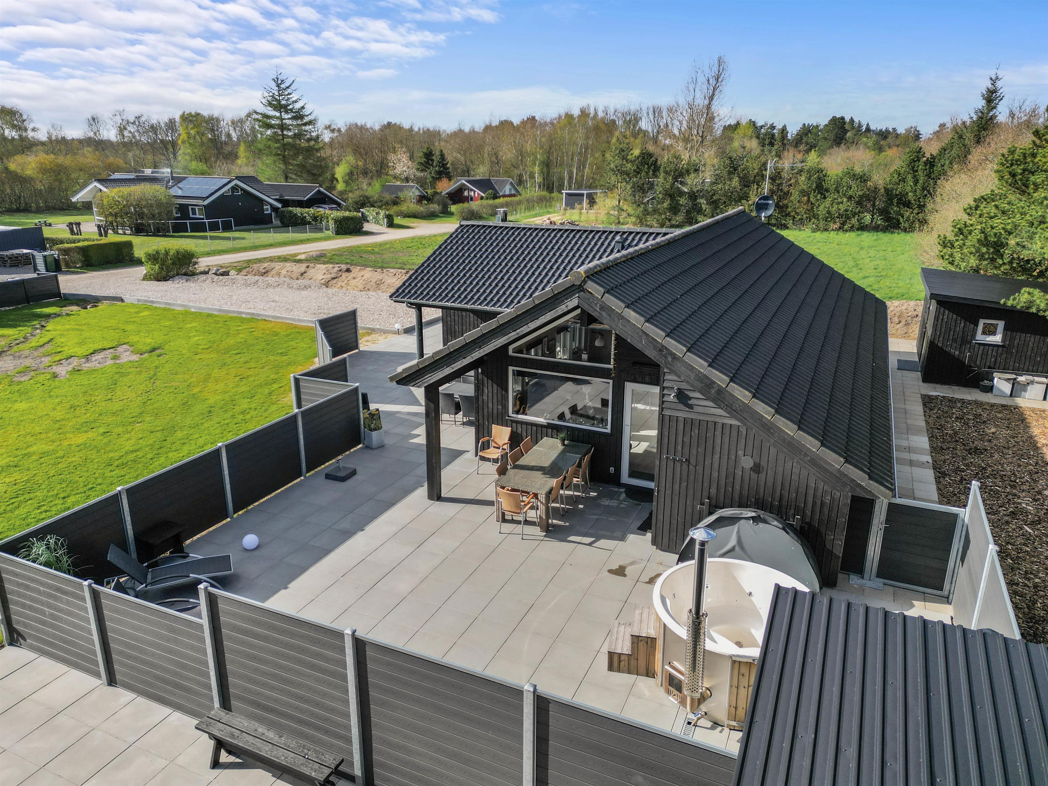 På sommerhusets udeområde venter jer flere skønne højdepunkter, som I kan se frem til på jeres ferie. På udeområdet finder I det skønne vildmarksbad, der inviterer til masser af afslapning under åben himmel. Kan I lide at spille petanque, kan I gøre dette i haven. Her finder I en dejlig stor petanque-bane, med internationale mål på 3,5 x 12m.