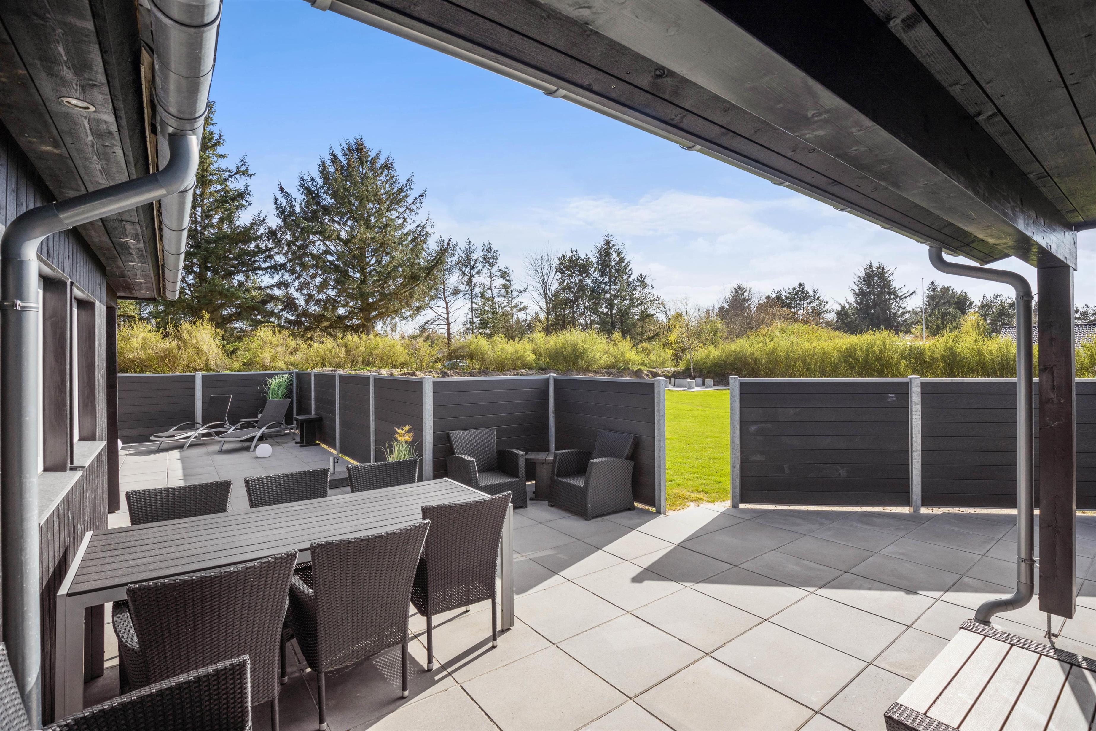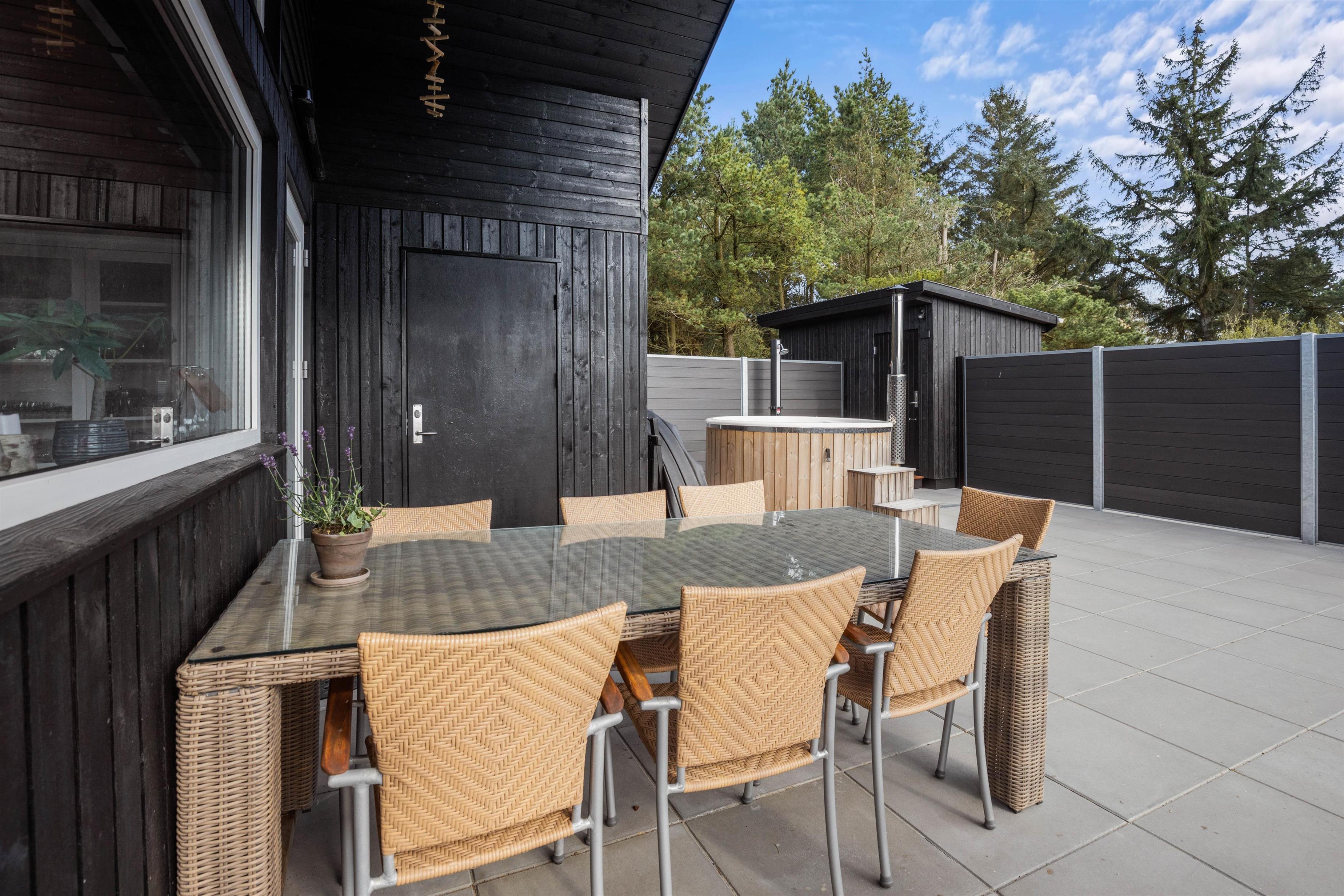 Har I været en tur ved Vesterhavet, kan I skylle jer under udebruseren, som er tilgængelig fra april til november, for at få det sidste sand af tæerne. På udeområdet har I også en terrasse, der er delvist overdækket og afskærmet, hvor I kan finde jer godt til rette i havemøbler og liggestole. Her har I desuden en gasgrill til rådighed, som I kan tilberede en lækker middag på som afslutning på feriedagen.