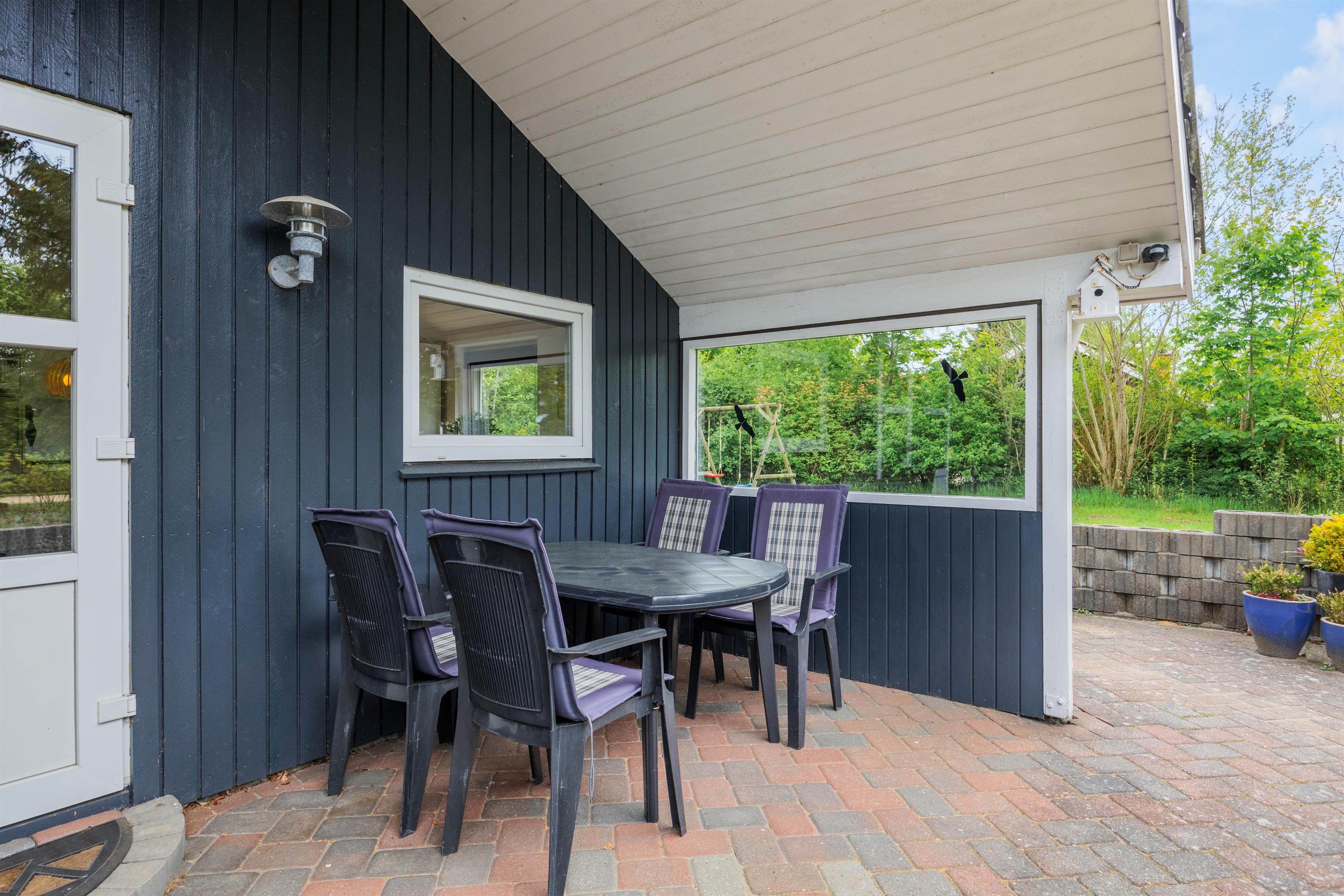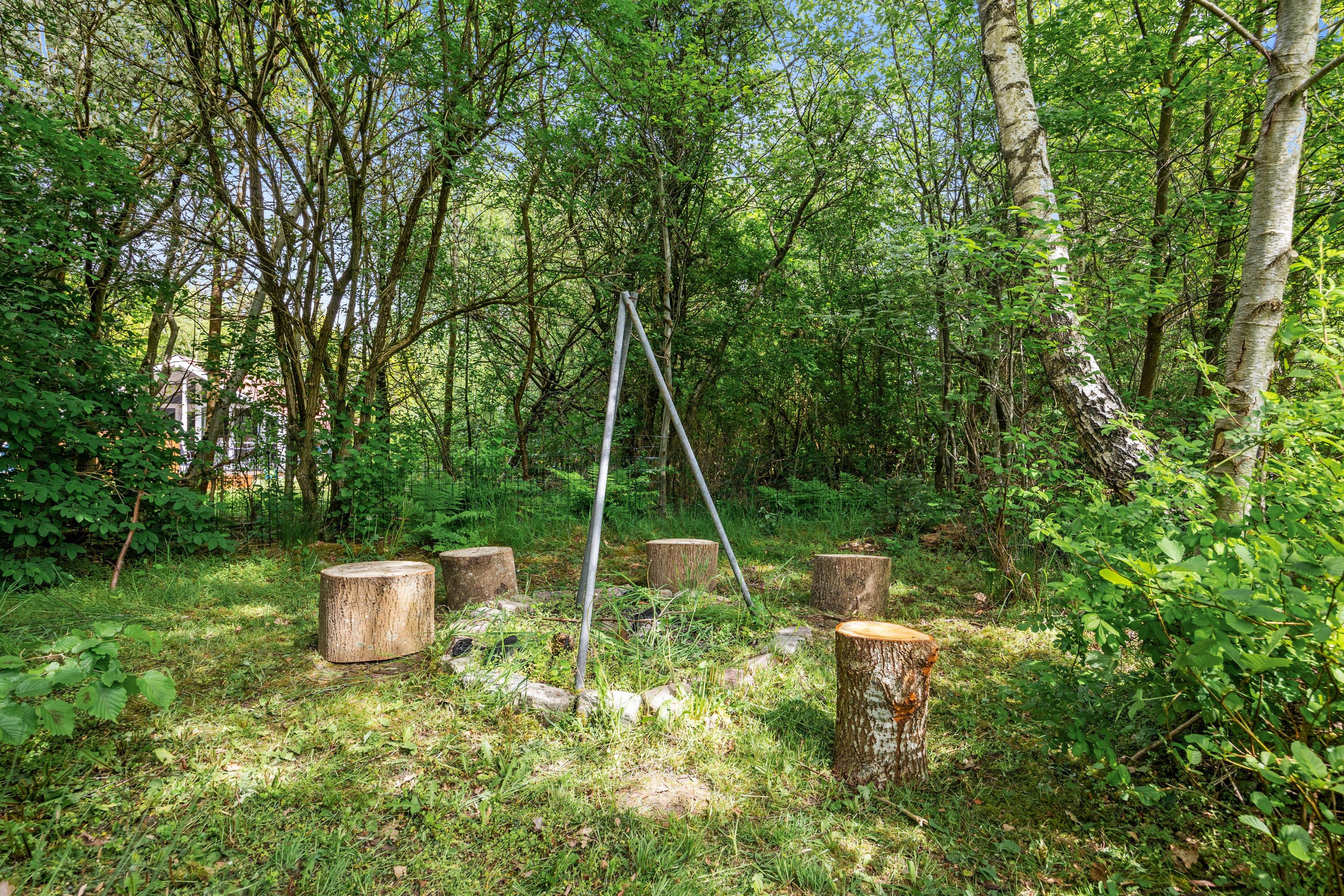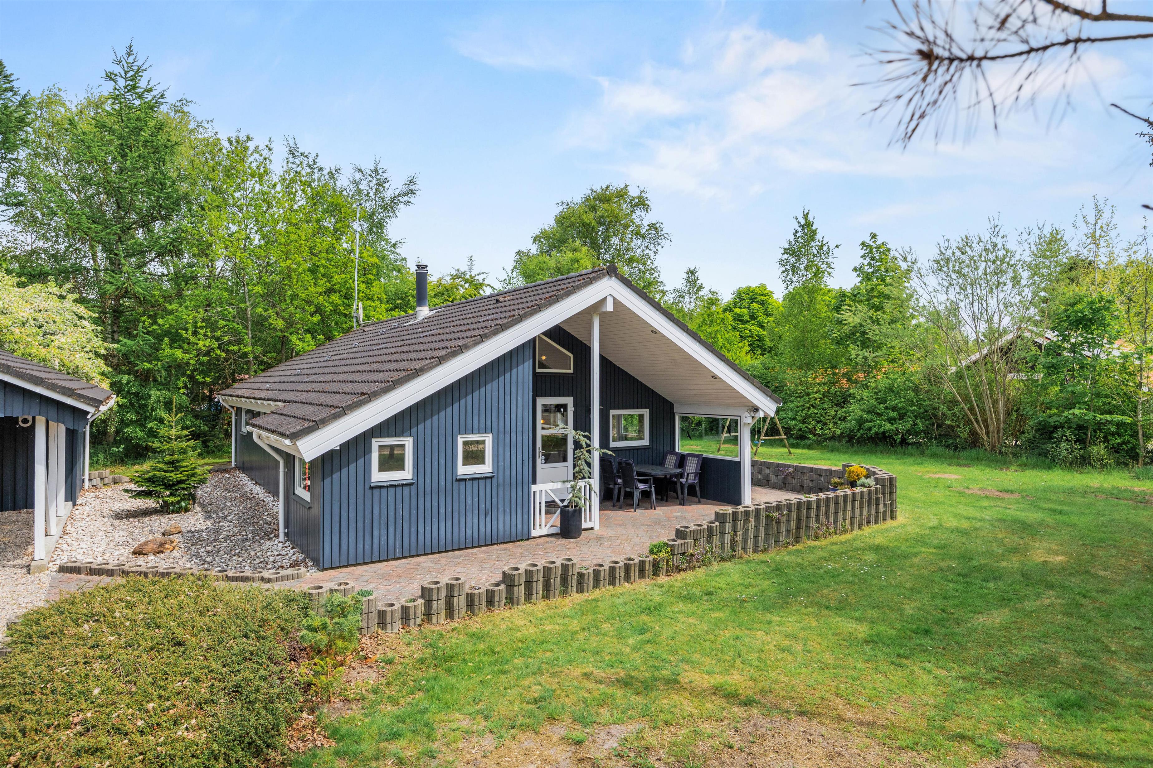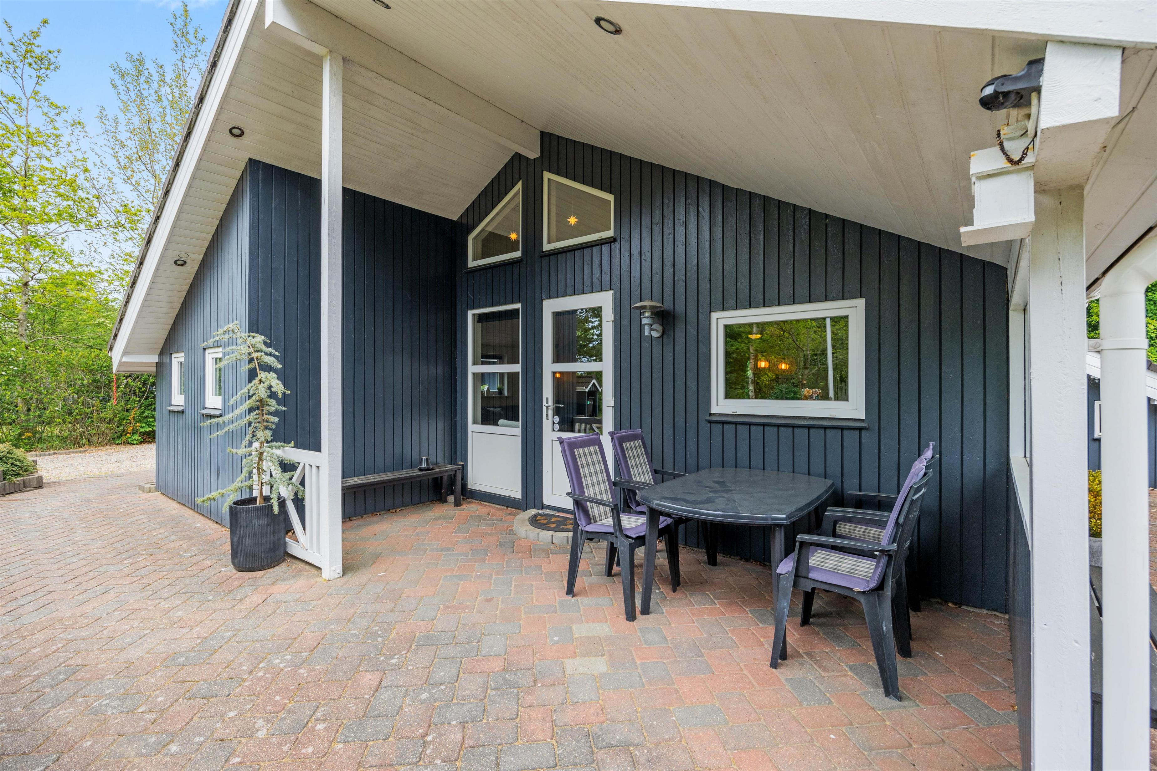 For de voksne er der mulighed for at tænde op i grillen eller samles om bålstedet og nyde en lækker udendørsmiddag på de lune sommeraftener, mens den overdækkede terrasse tilbyder et ideelt sted til både sol- og regnvejrsdage. Her kan I slappe af med en god bog eller nyde morgenkaffen i det fri, alt imens I har udsigt over den skønne natur omkring jer.