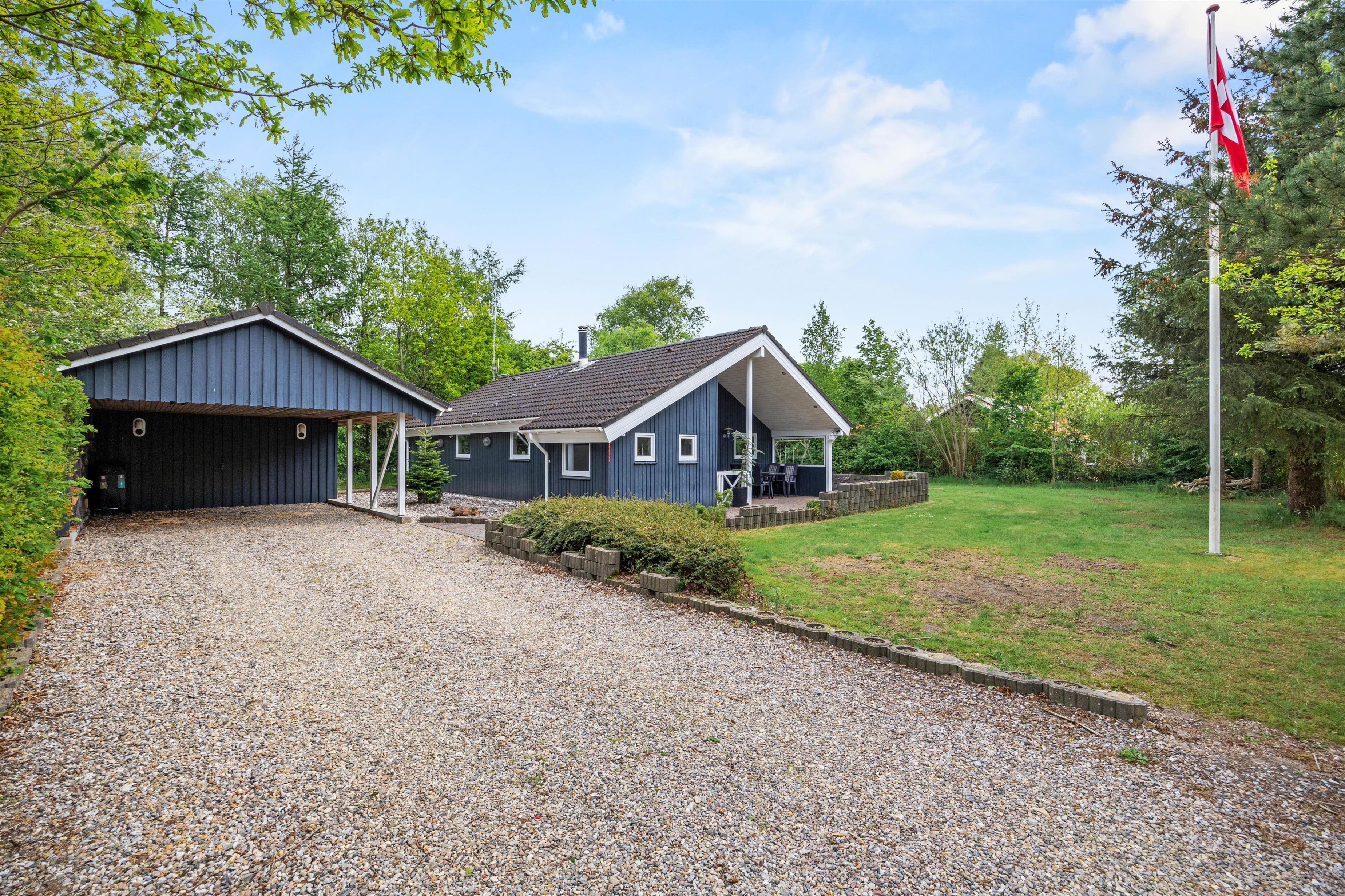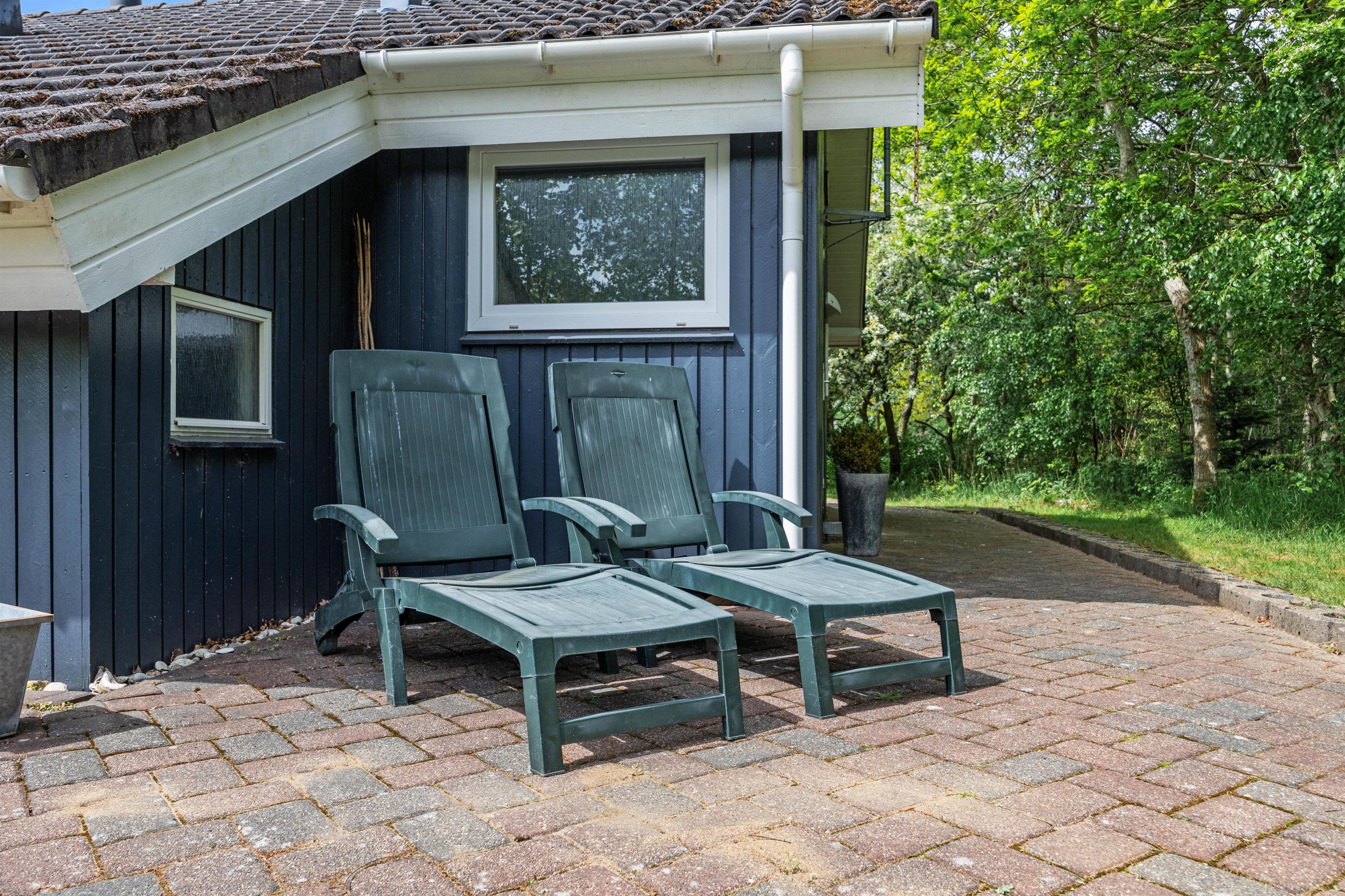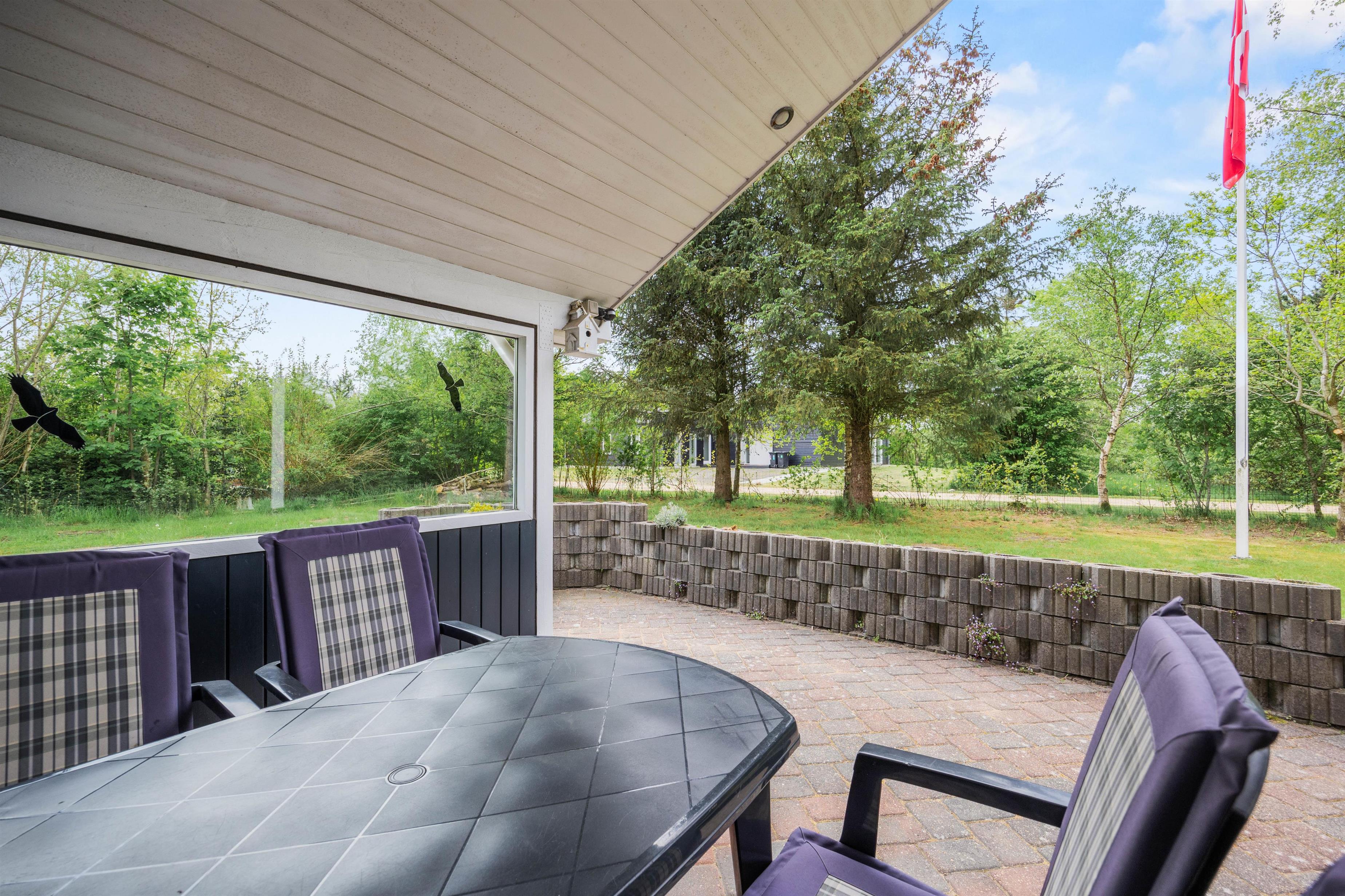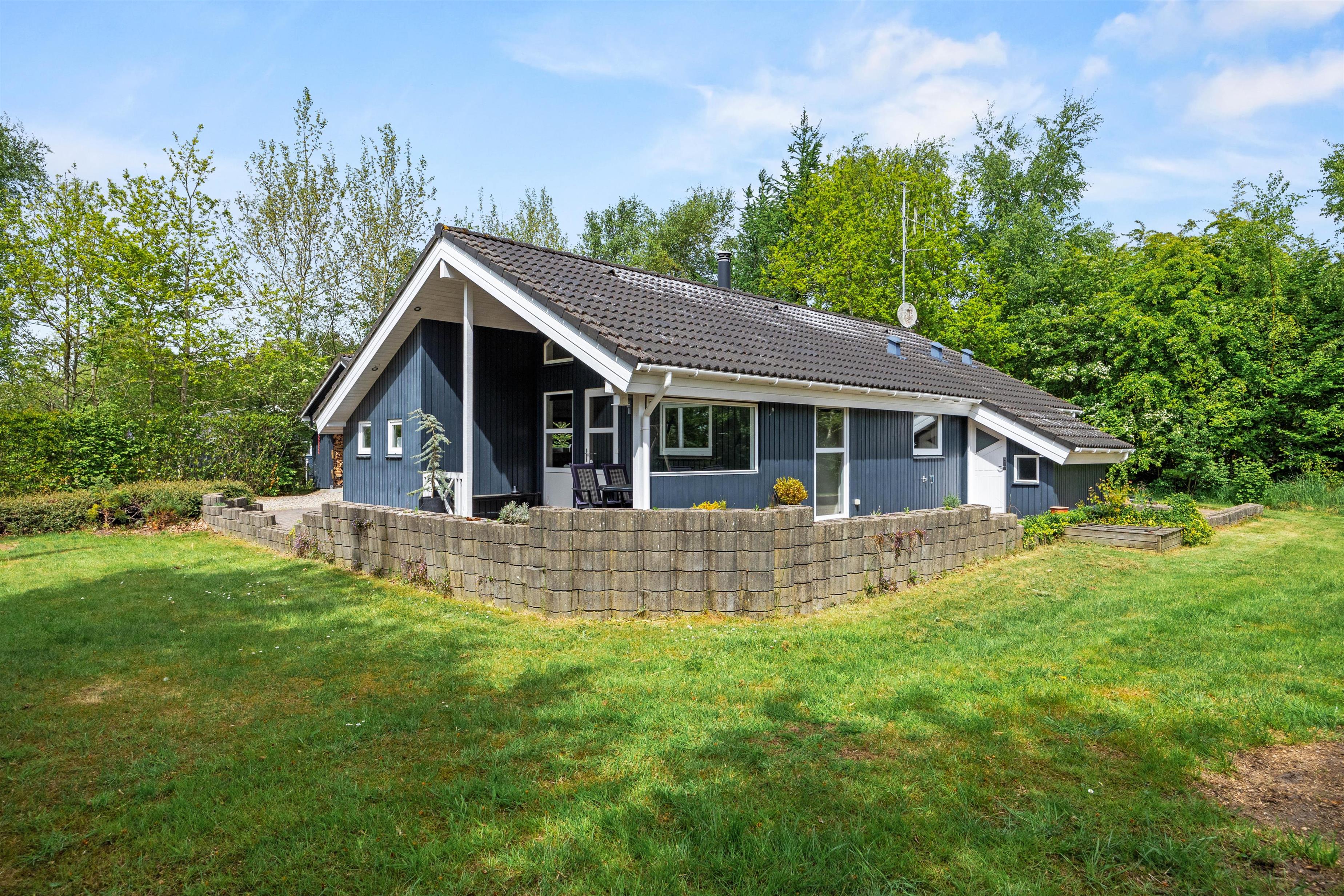 For de voksne er der mulighed for at tænde op i grillen eller samles om bålstedet og nyde en lækker udendørsmiddag på de lune sommeraftener, mens den overdækkede terrasse tilbyder et ideelt sted til både sol- og regnvejrsdage. Her kan I slappe af med en god bog eller nyde morgenkaffen i det fri, alt imens I har udsigt over den skønne natur omkring jer.