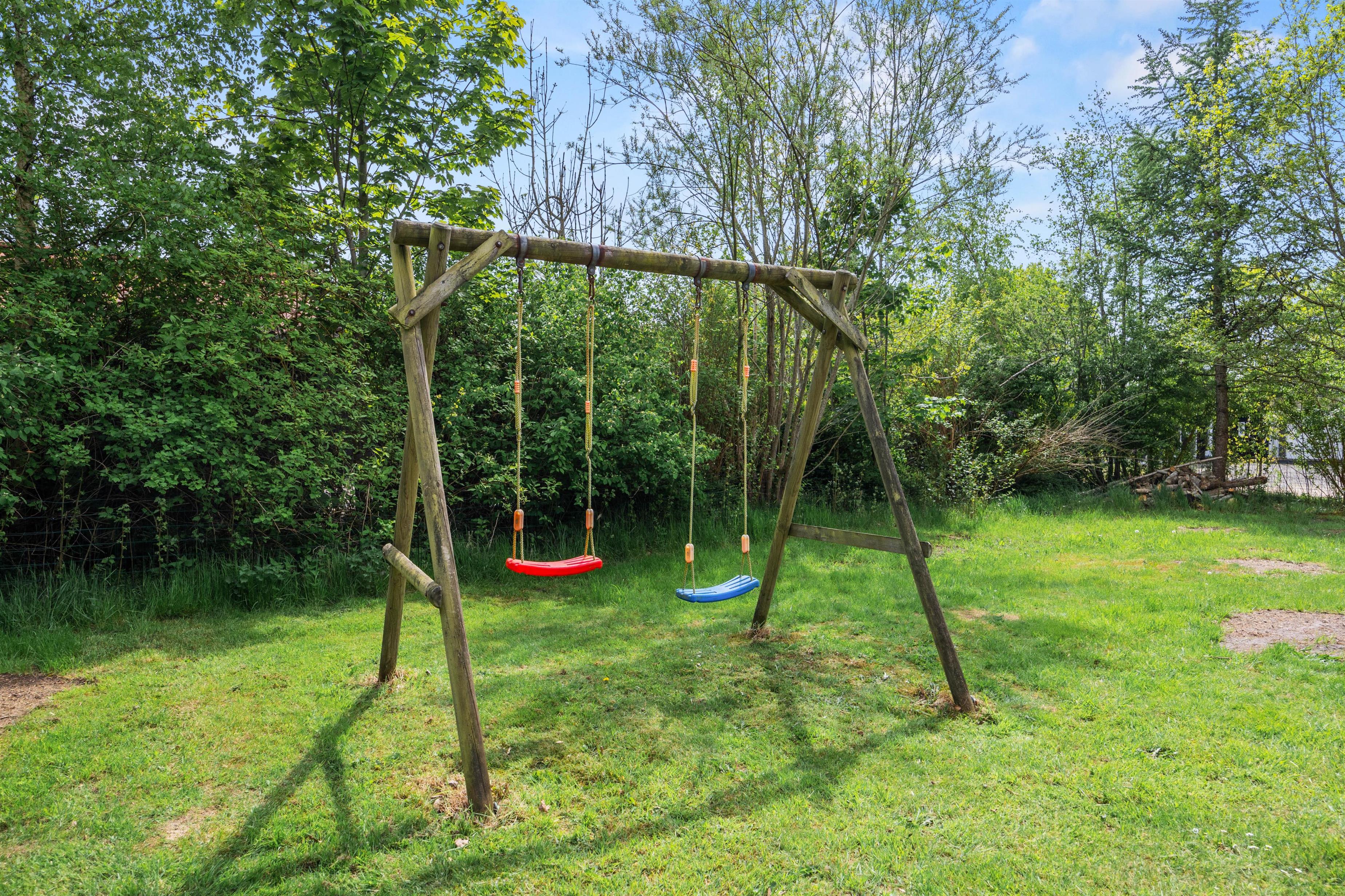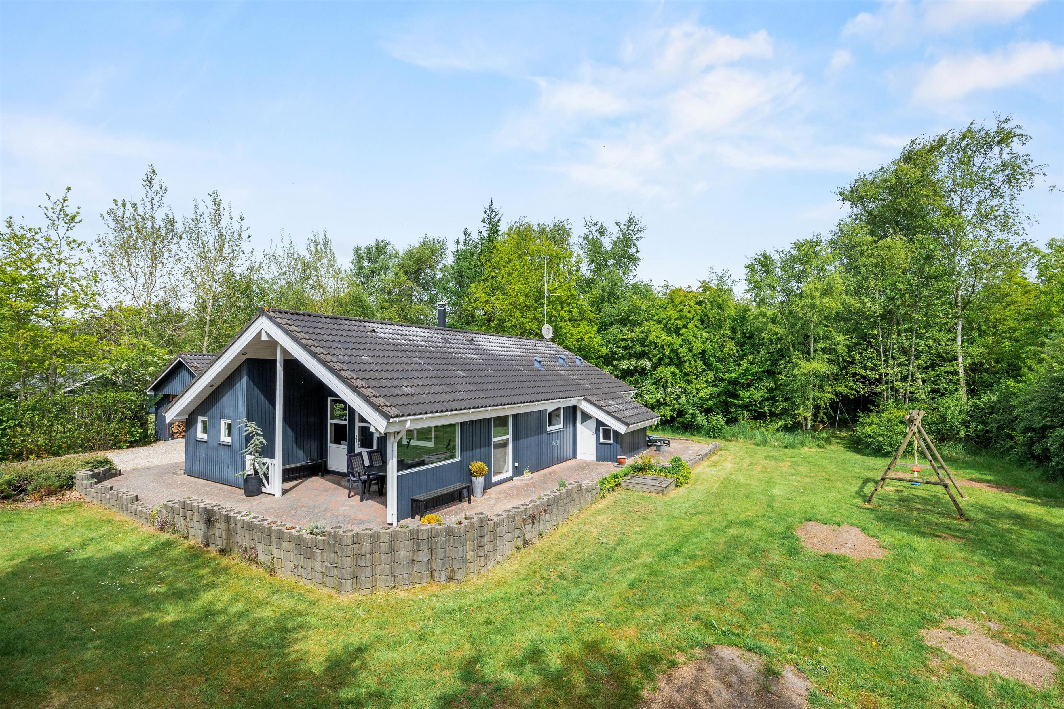 Sommerhusets udeareal strækker sig over en rummelig grund på 1519 m2, hvilket giver jer masser af plads til både afslapning og leg. Den store plænegrund indbyder til spil og aktiviteter for både børn og voksne, og de små vil især nyde sandkassen og gyngen, som er perfekte til utallige timers sjov.