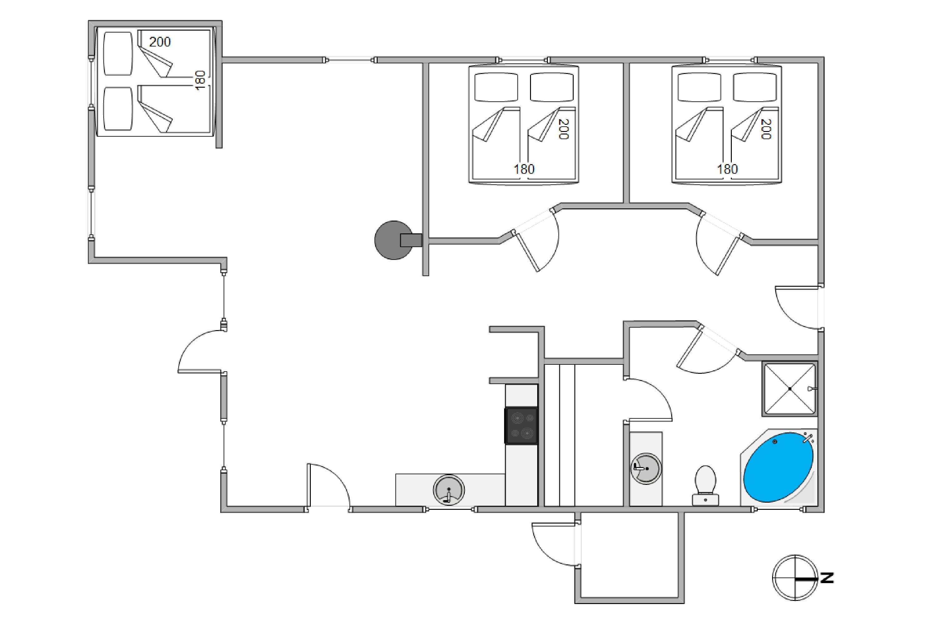 Sommerhuset byder på et velindrettet indeareal med faciliteter, der sikrer en komfortabel og bekvem ferieoplevelse. Når man træder ind i sommerhuset mødes man af fornemmelsen af hygge og samvær. Med 6 sovepladser fordelt på 3 gode soveværelser, er der rigelig plads til hele familien eller en gruppe venner.