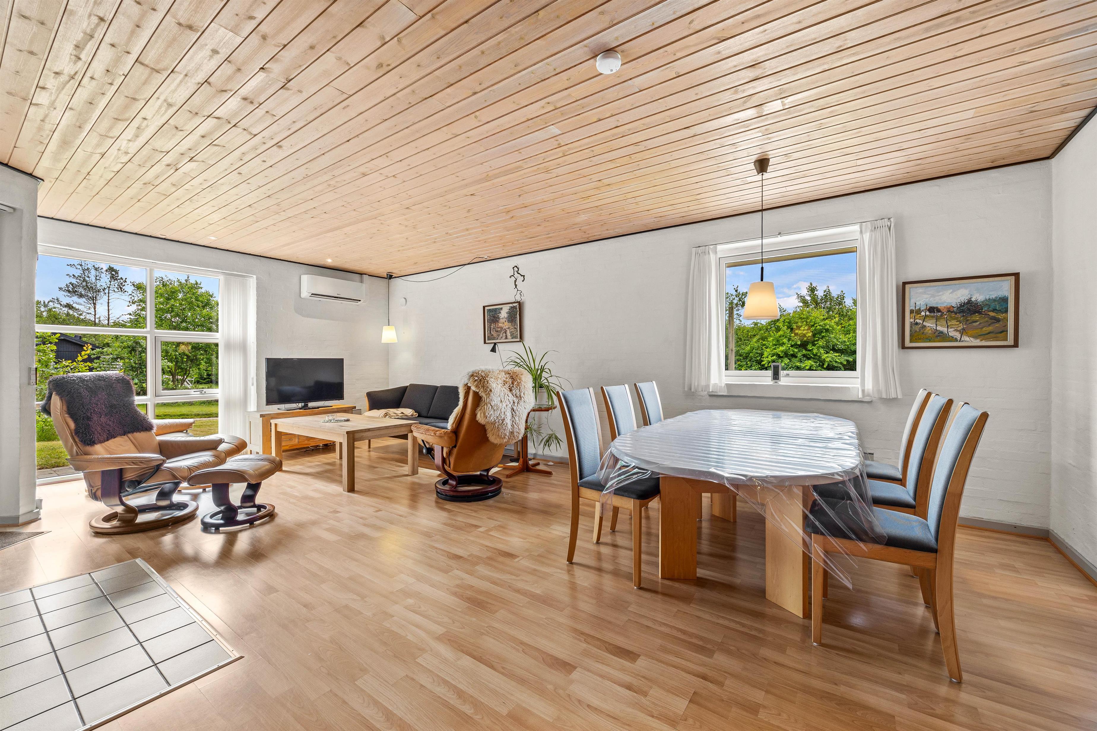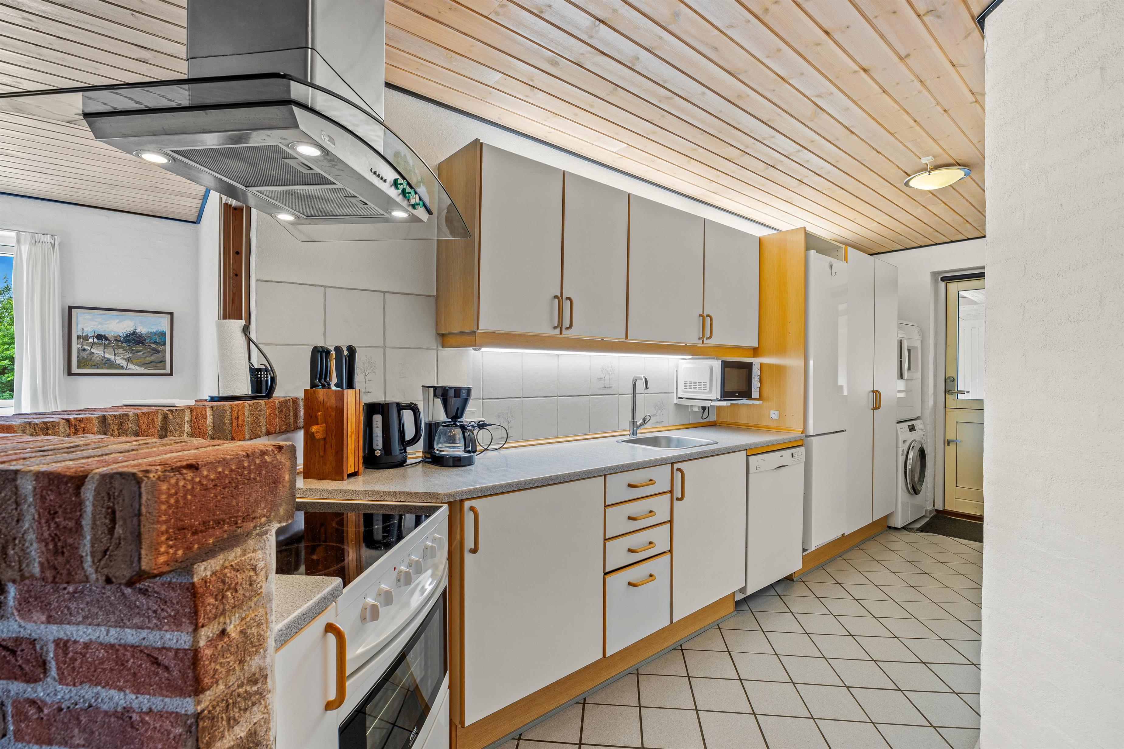 Det rummelige køkkenalrum fungerer som sommerhusets hje rte, hvor I kan samles om madlavningen eller nyde en hyggelig aften med brætspil. I køkkenet er der en opvaskemaskine, som gør det nemt at klare oprydningen, så I hurtigt kan vende tilbage til hyggelige stunder eller give jer i kast med nye aktiviteter.