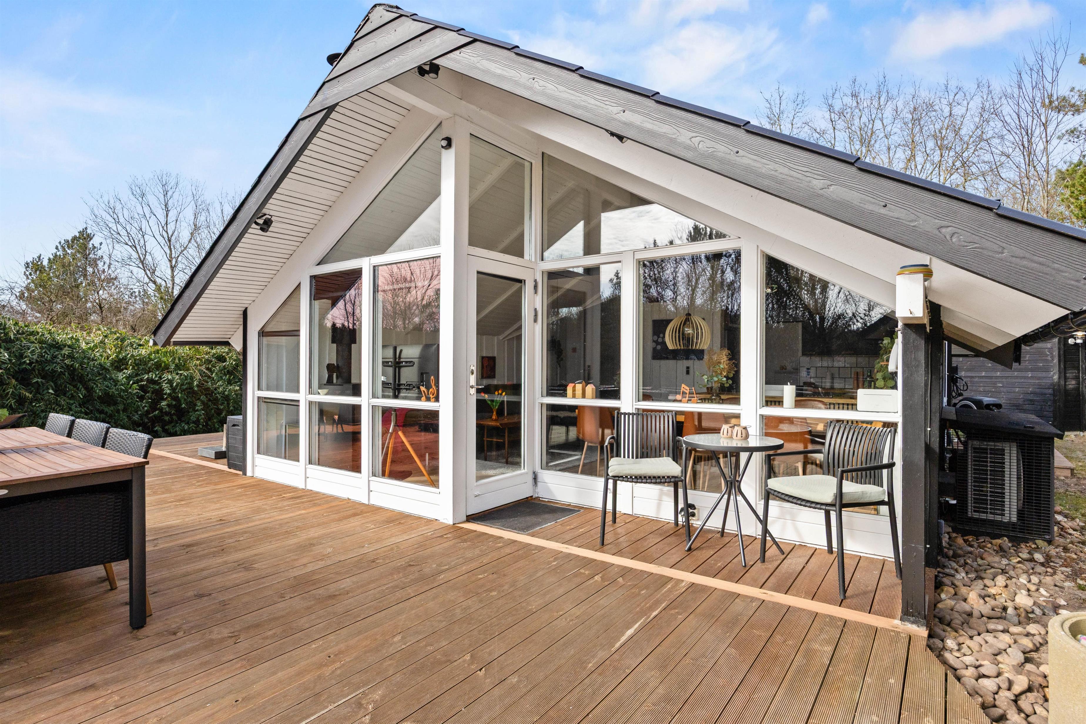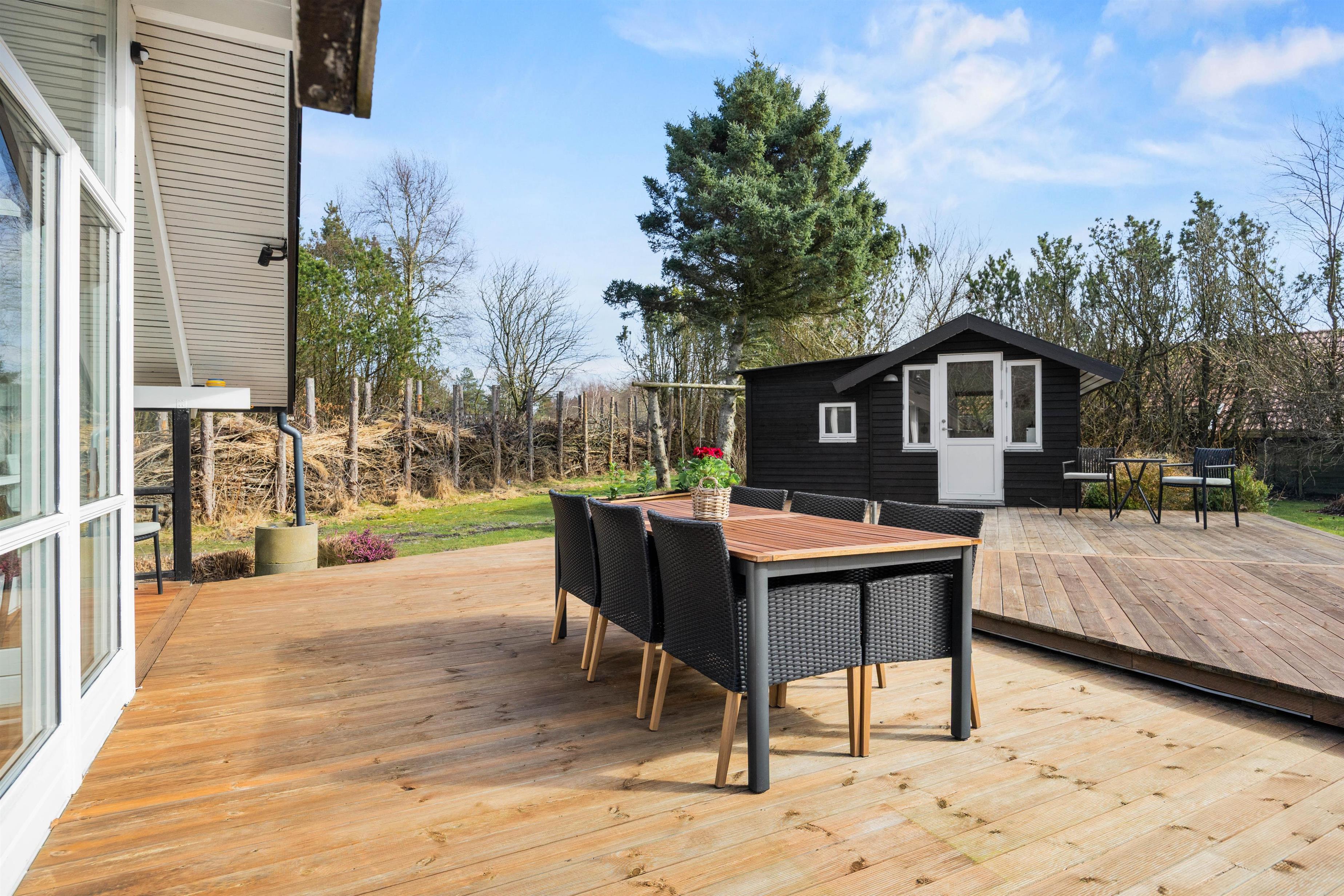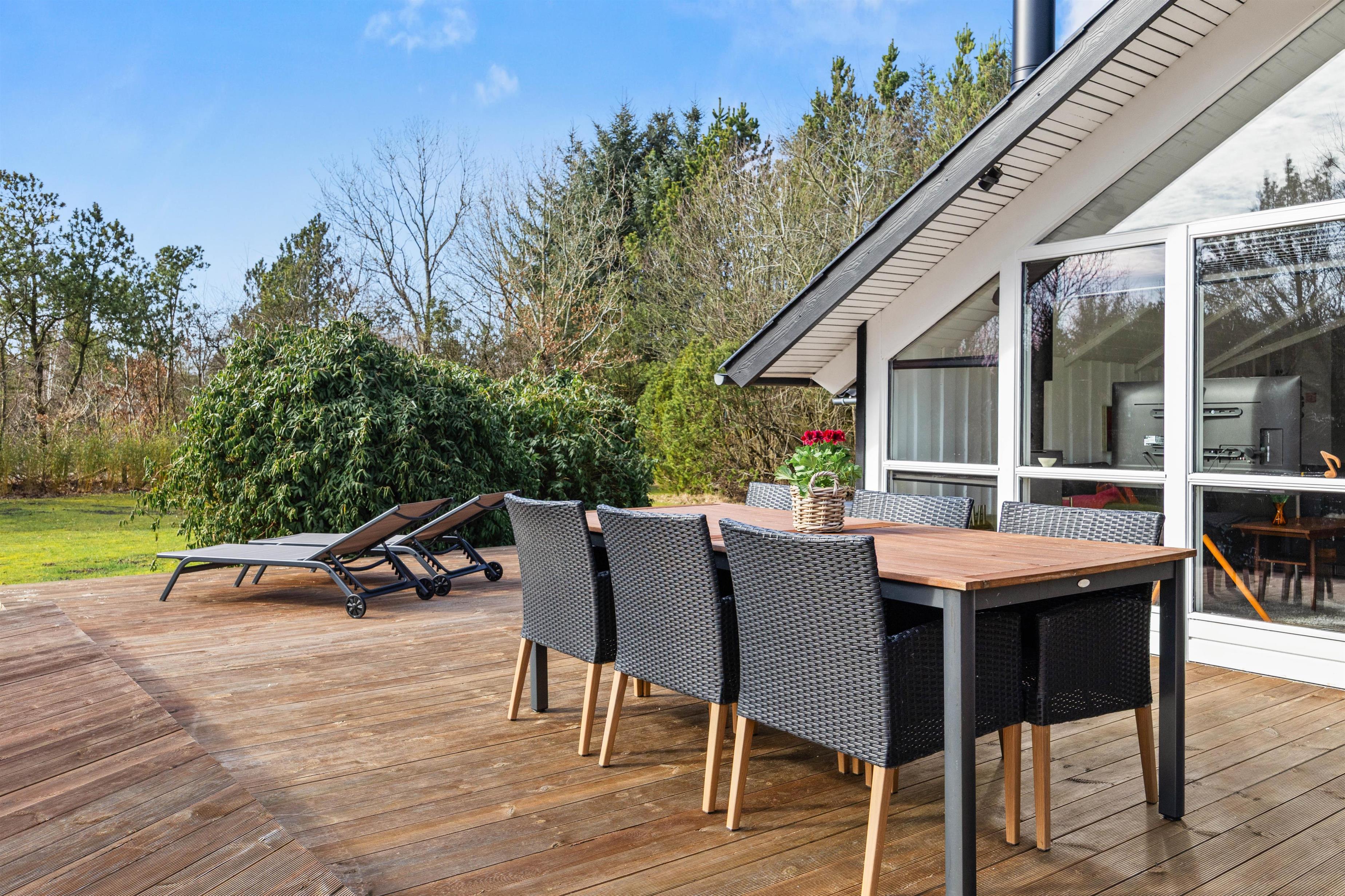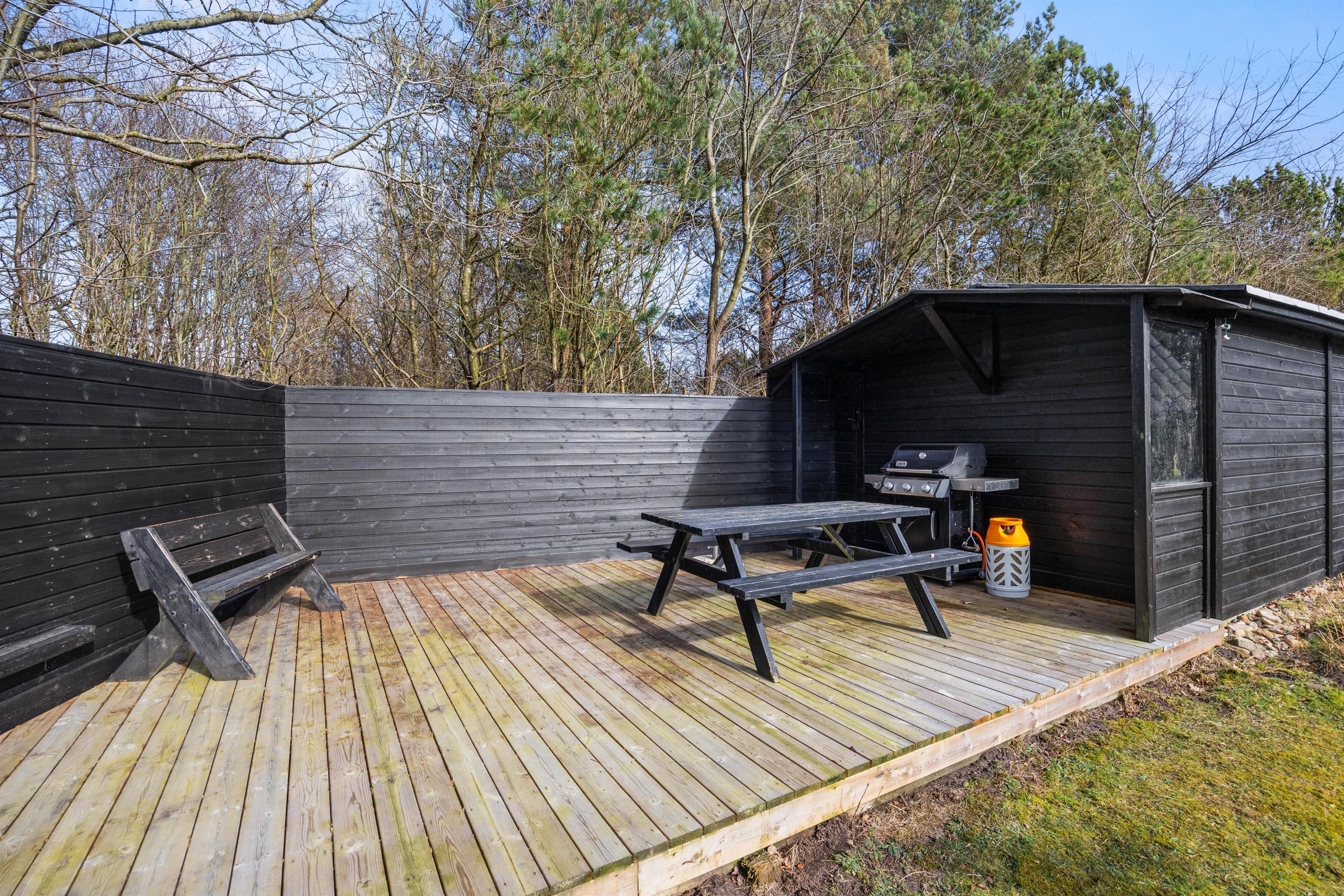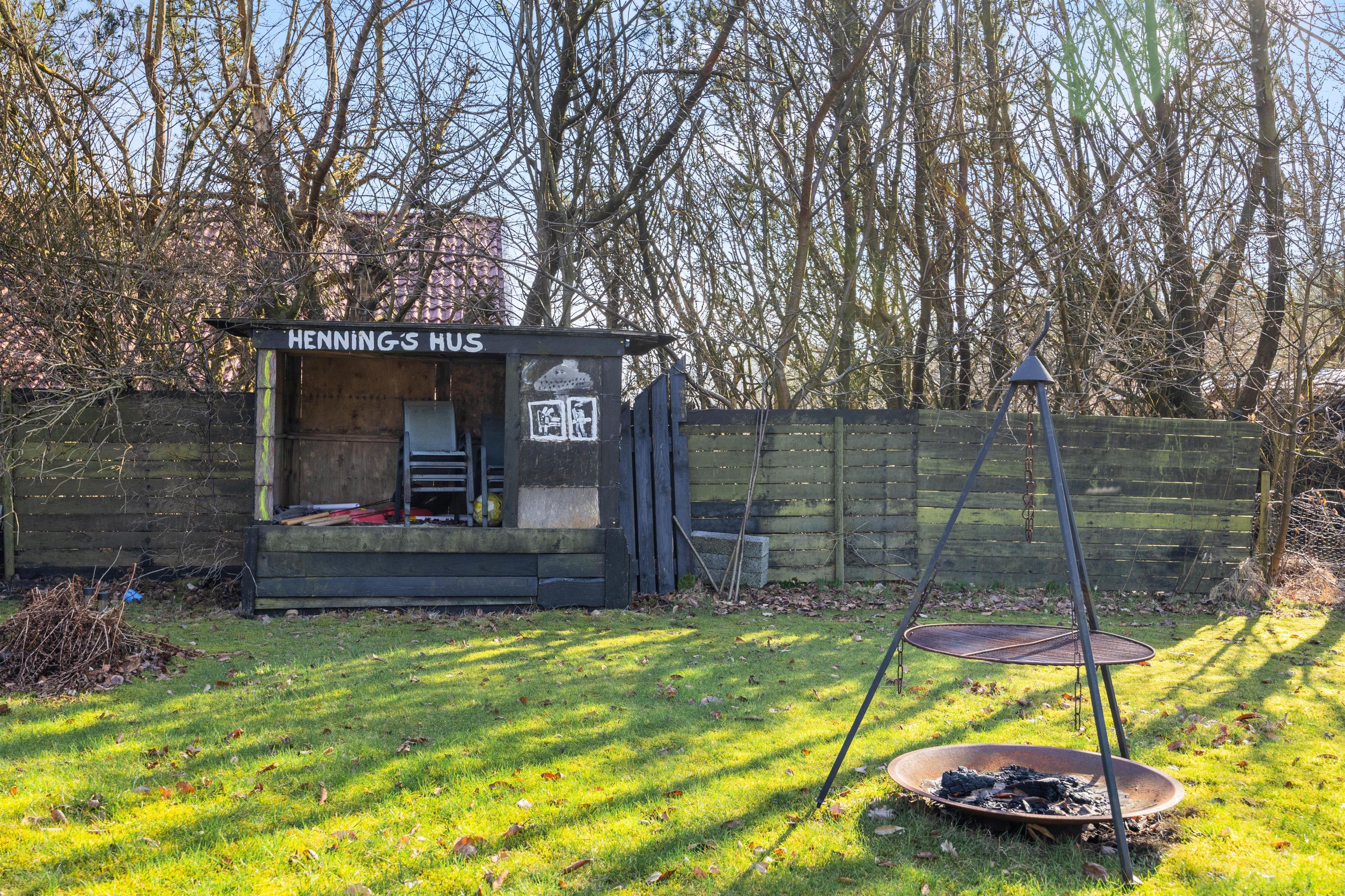 Den 1.826 m² store, delvist indhegnede naturgrund opfylder alle ønsker. Her kan børnene lege på gyngen eller i sandkassen, eller hundene kan løbe frit omkring på den indhegnede have. I kan også nyde en kop varm eftermiddagskaffe på terrassen med komfortable havemøbler eller slappe af på liggestolene i solen. Om aftenen kan I tænde op i gasgrillen og tilberede en lækker middag – den perfekte afslutning på en feriedag.