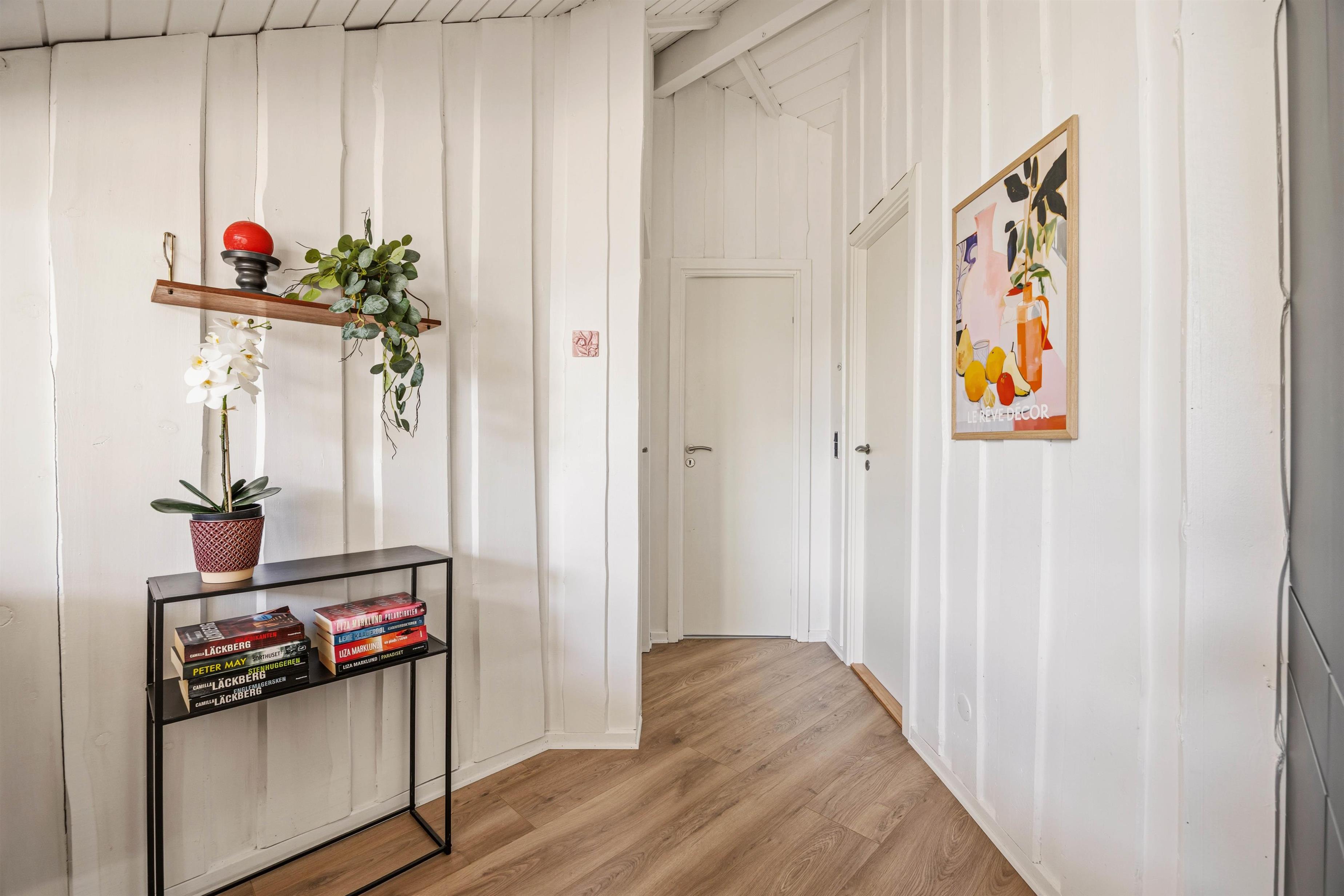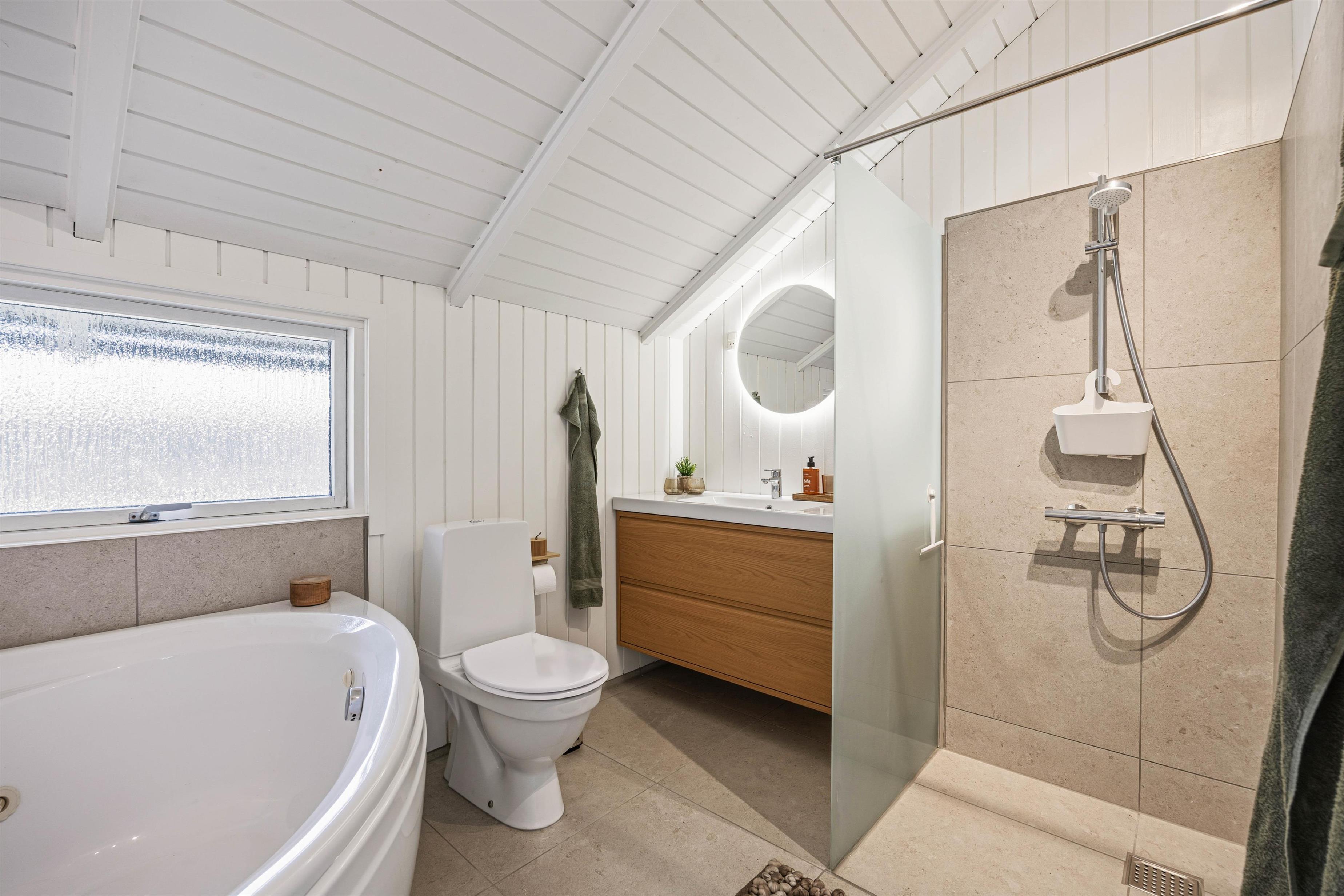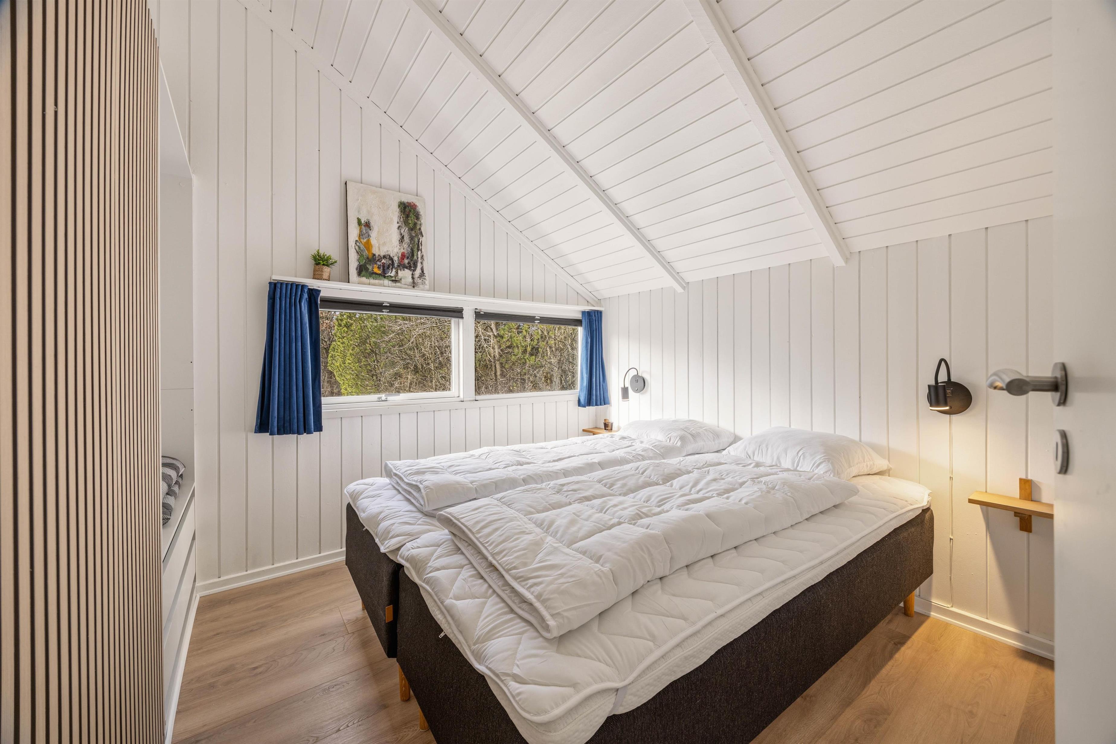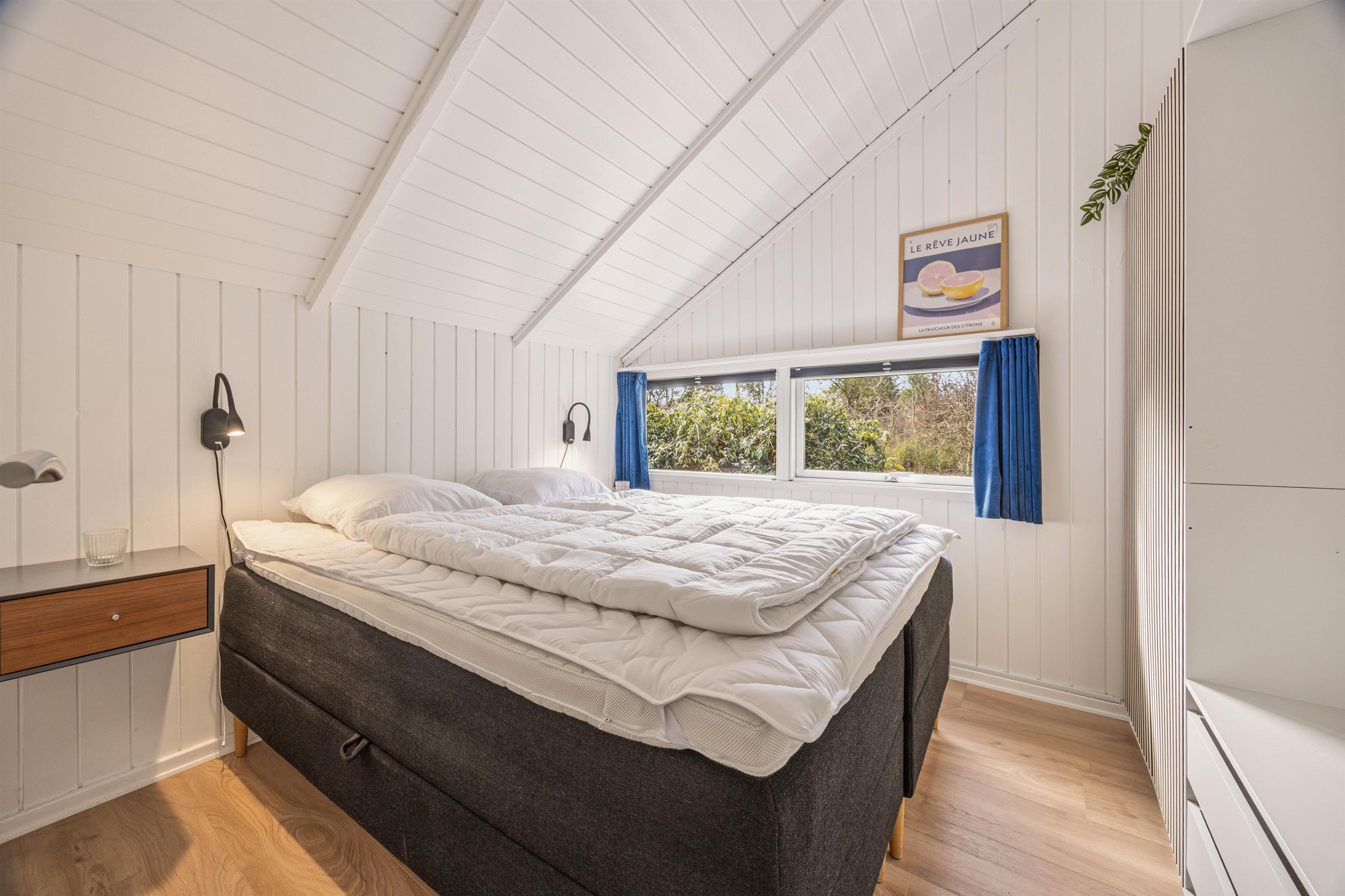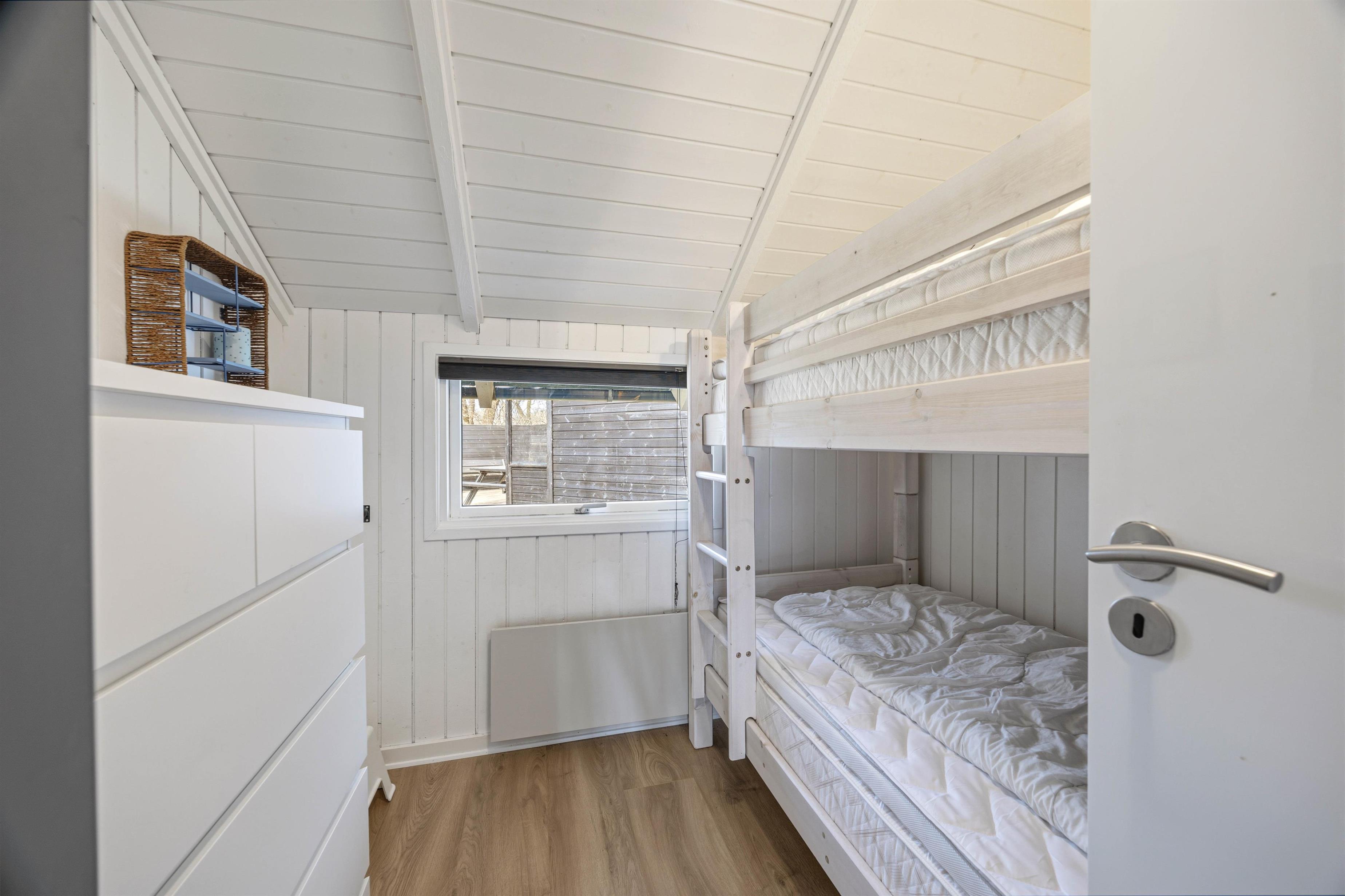 Derudover findes et gæstetoilet i den separate tilbygning, sammen med et af soveværelserne med dobbeltseng. På den måde kan I nemt fordele jer i huset. De 2 øvrige soveværelser med dobbeltsenge samt et værelse med køjeseng ligger i hovedhuset.