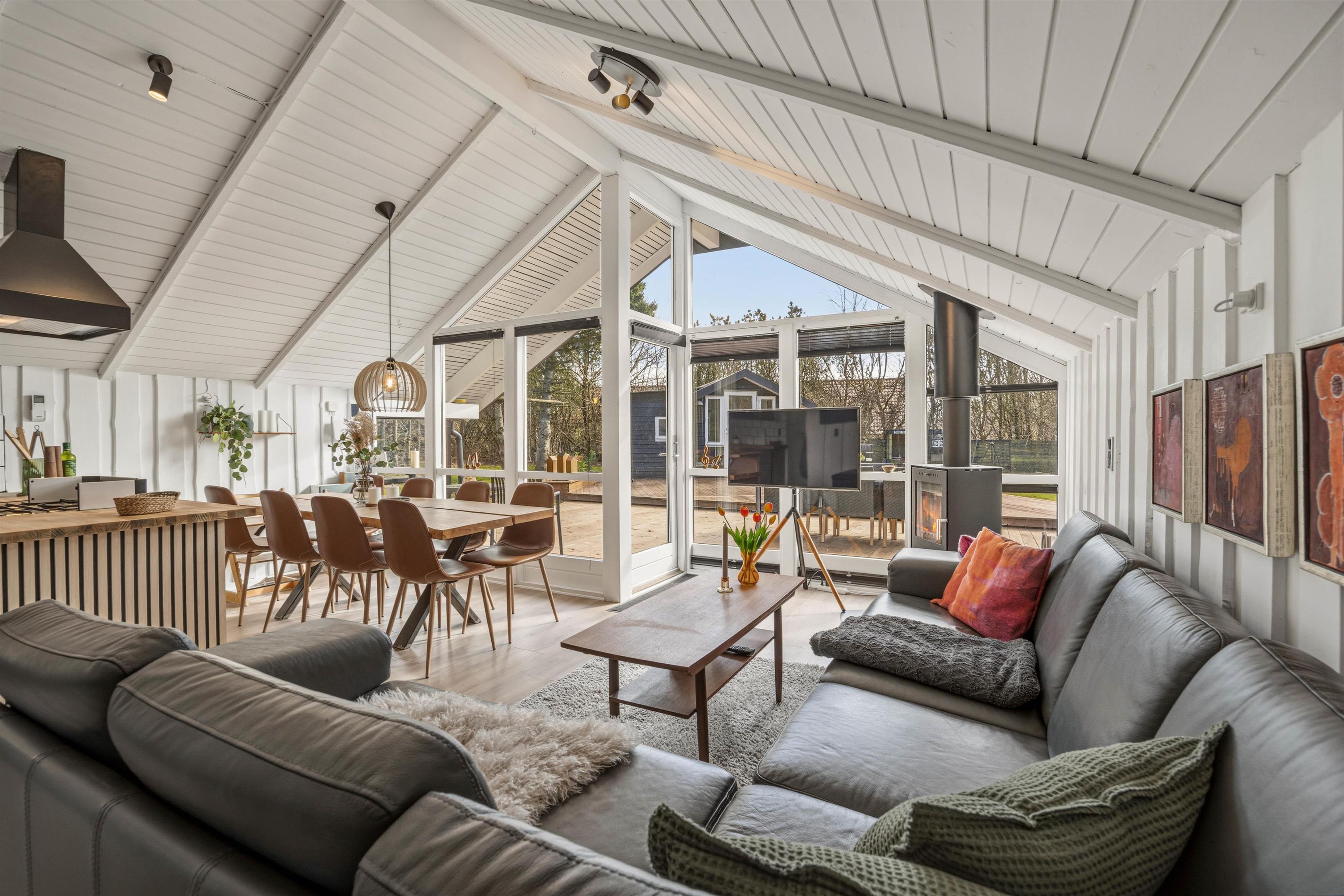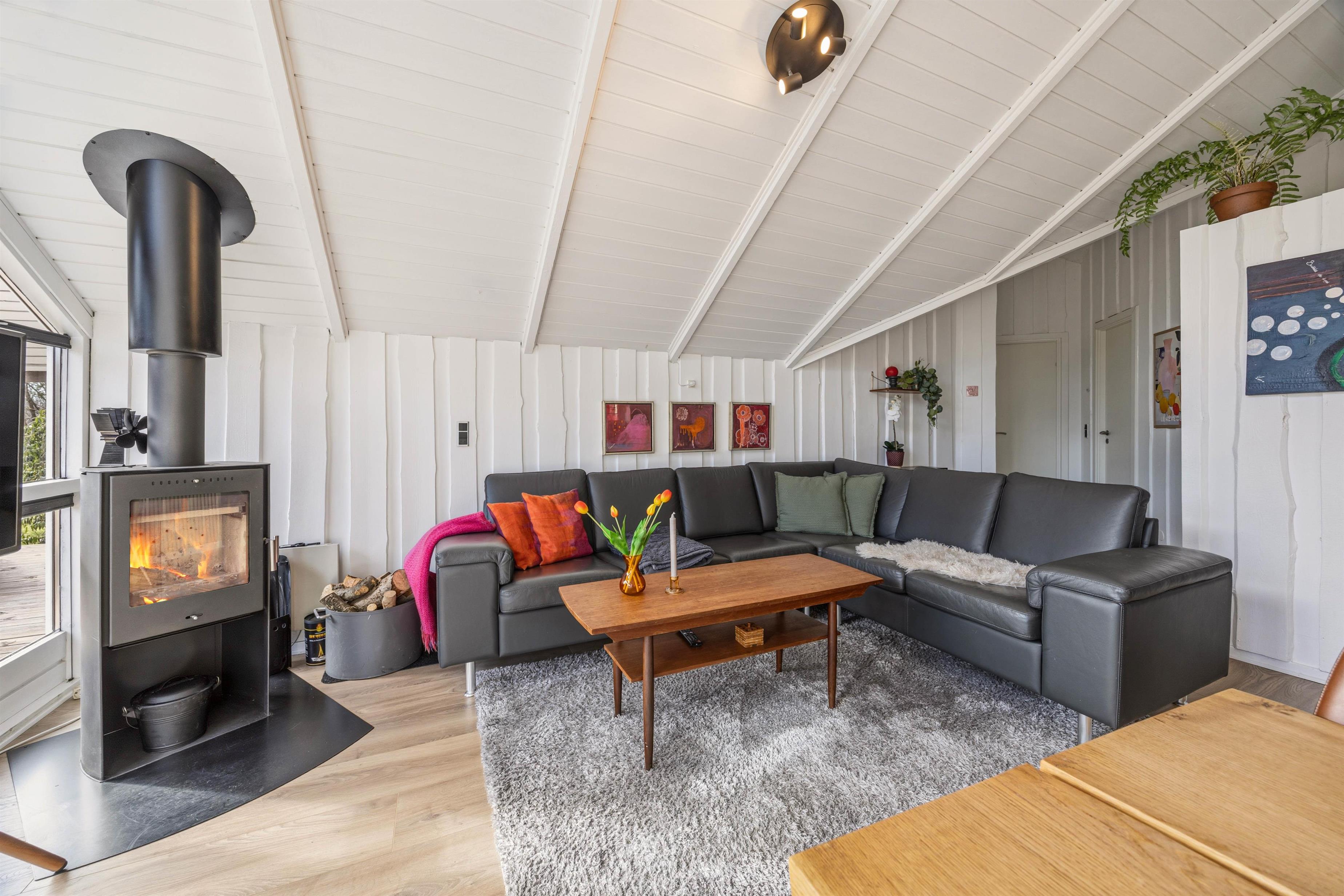 På 85 m² har dette dejlige feriehus plads til op til 6 personer og 2 hunde. Hjerterummet i huset er den åbne opholdsstue, som med komfortable møbler, TV og brændeovn skaber en hyggelig stemning og inviterer til afslapning. Huset opvarmes desuden med en energibesparende varmepumpe.
