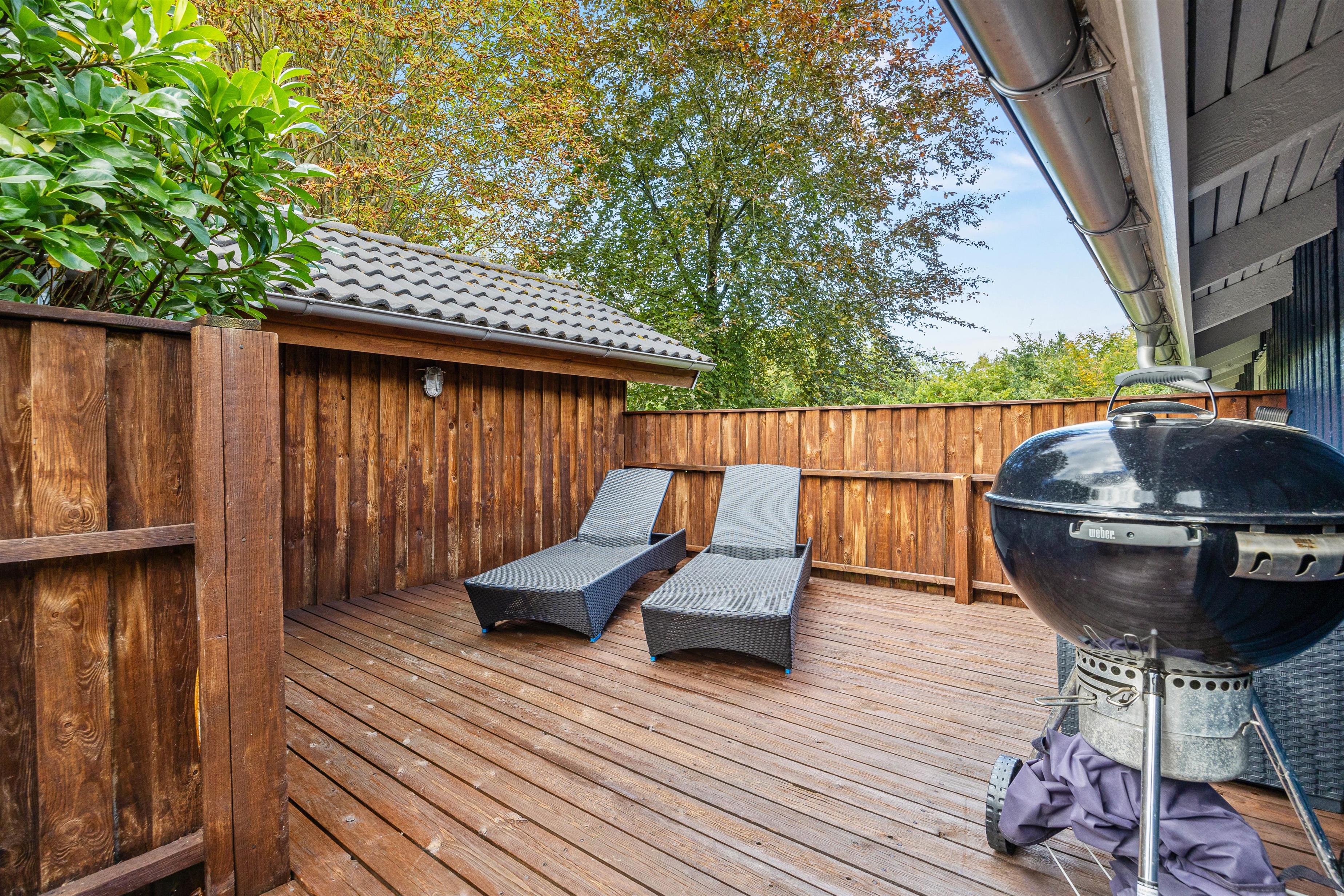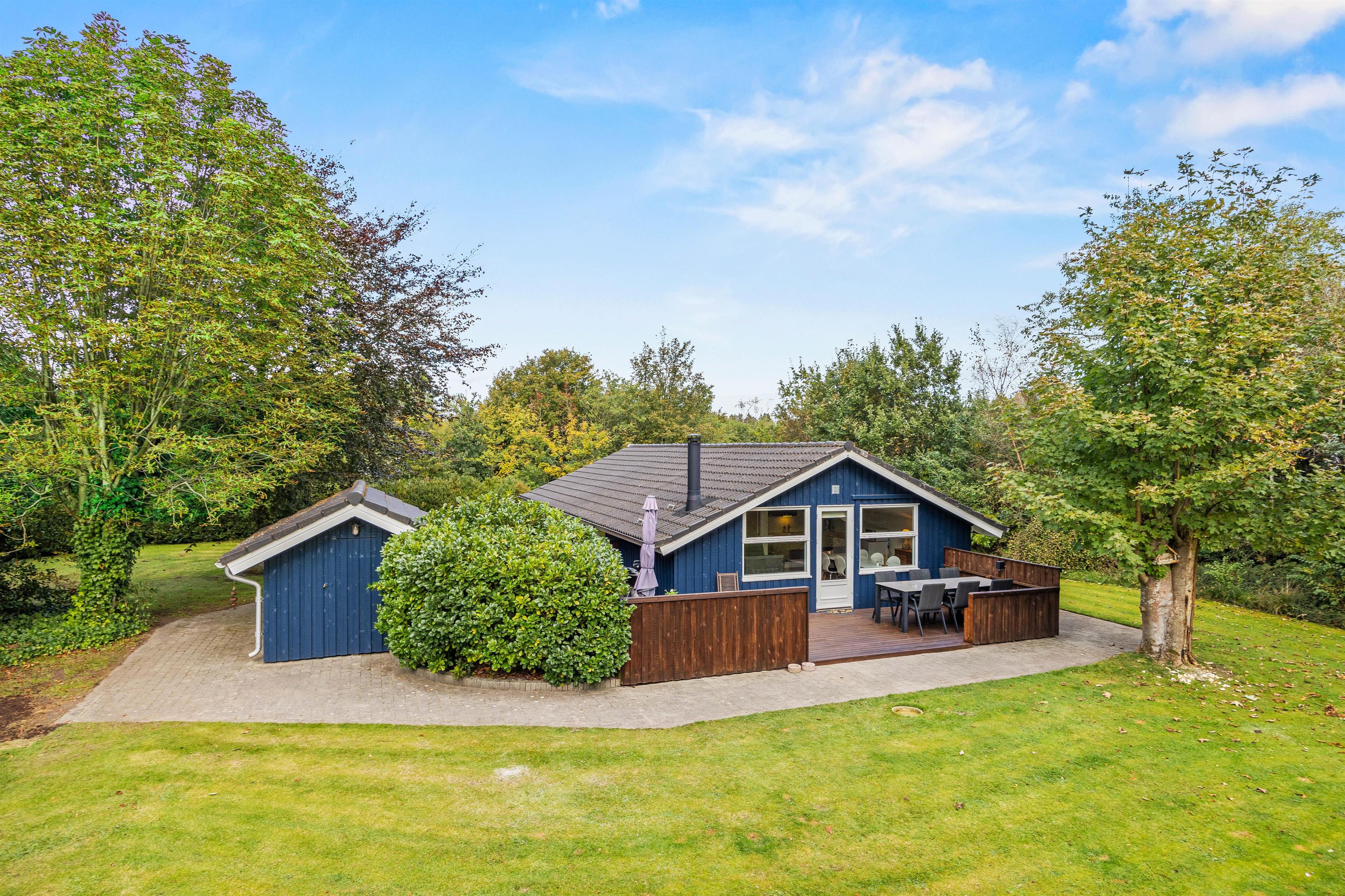 Feriehuset ligger på en stor naturgrund med en samlet størrelse på 1555m2. Her kan I nyde den friske luft og den rolige natur i fulde drag. Den afskærmede terrasse indbyder til hyggelige timer i det fri, og grillen er perfekt til fælles måltider med jeres kære. Dertil tilbyder havemøblerne en ekstra komfort under jeres ophold.