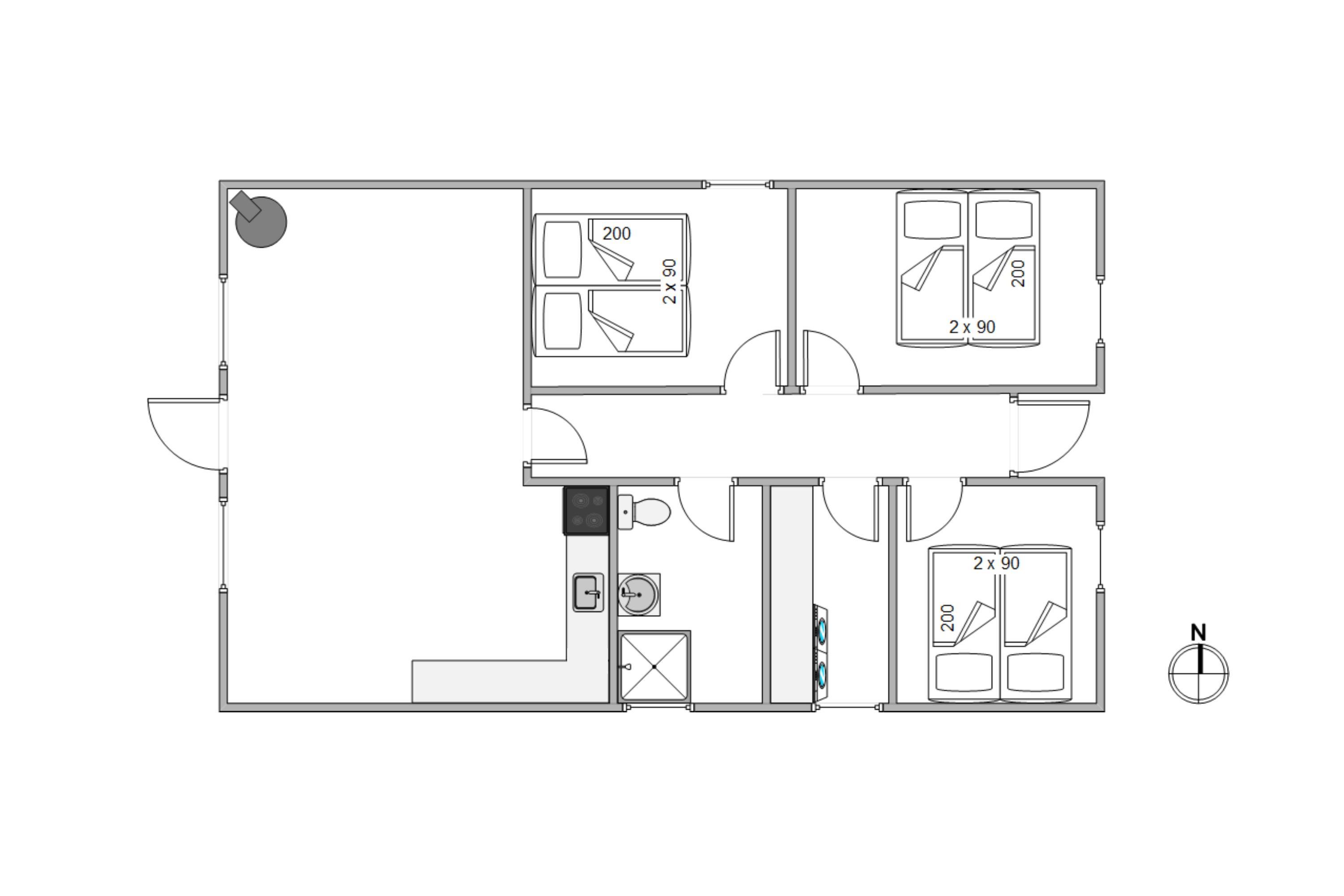 Feriehuset tilbyder 91m2 boligareal, og har plads til 6 personer. Med 3 autentiske soveværelser, hver med en komfortabel dobbeltseng, har I rig plads til at trække jer tilbage og nyde en god nats søvn. Det lyse og rummelige badeværelse med bruseniche har gulvvarme og god opbevaringsplads.