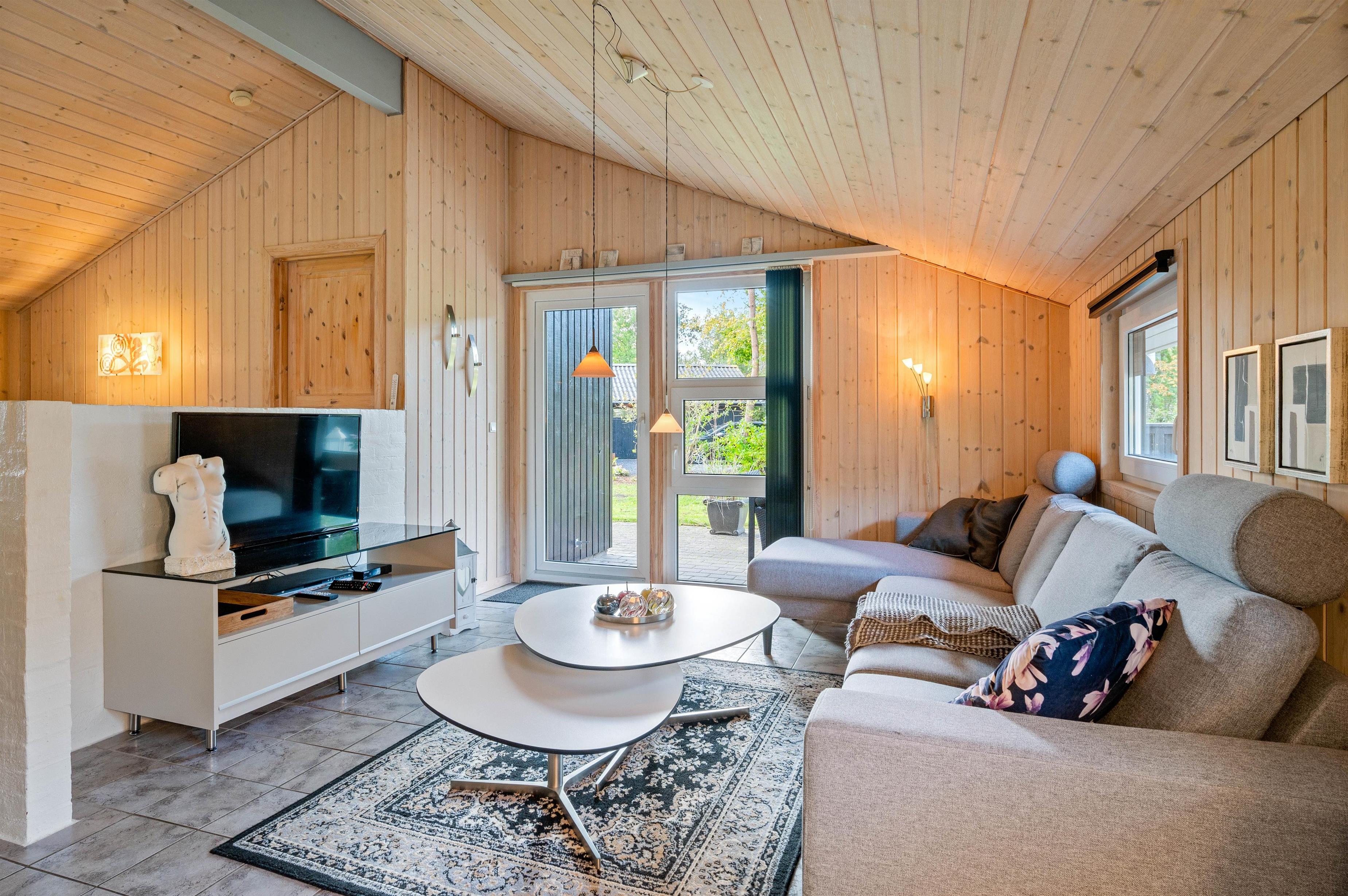 På Blåbærvangen 6 står dette fine sommerhus blandt de høje grønne fyrretræer. Huset er perfekt til en familie eller vennepar, er dejlig lyst og venligt indrettet og har tilmed spabad og sauna. Nyd ferien og solen i den lukkede have med to fine terrasser.