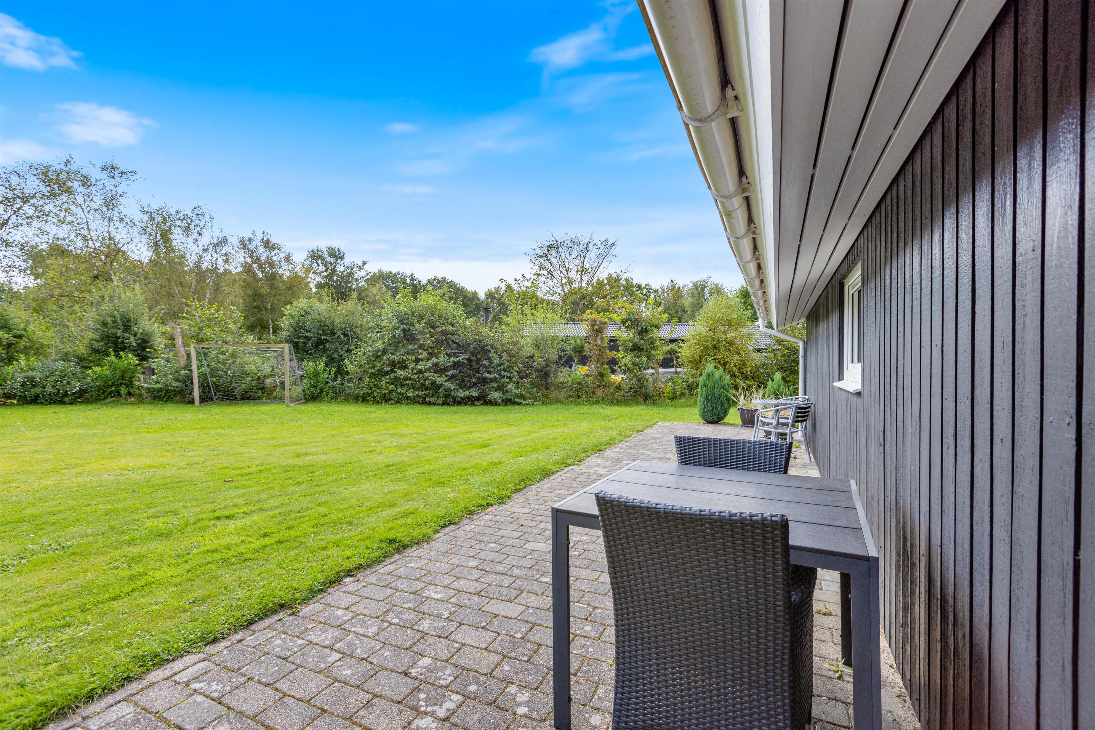 Den skønne udendørs oase omkring sommerhuset på Blåbærvangen 6 tilbyder en vidunderlig ramme for afslapning og leg. Den overdækkede terrasse er det ideelle sted for familiemiddage eller en stille stund med en god bog, uanset vejret. Her kan I nyde lange sommeraftener med grill og hygge. Det grønne område omkring huset giver børnene frihed til at lege og udforske naturen, mens gyngen hurtigt bliver et populært samlingspunkt for familiens yngste. Udendørsarealet indbyder til både aktivitet og afslapning, hvilket giver jer mulighed for at få det bedste ud af jeres ferie i Jegum Ferieland.