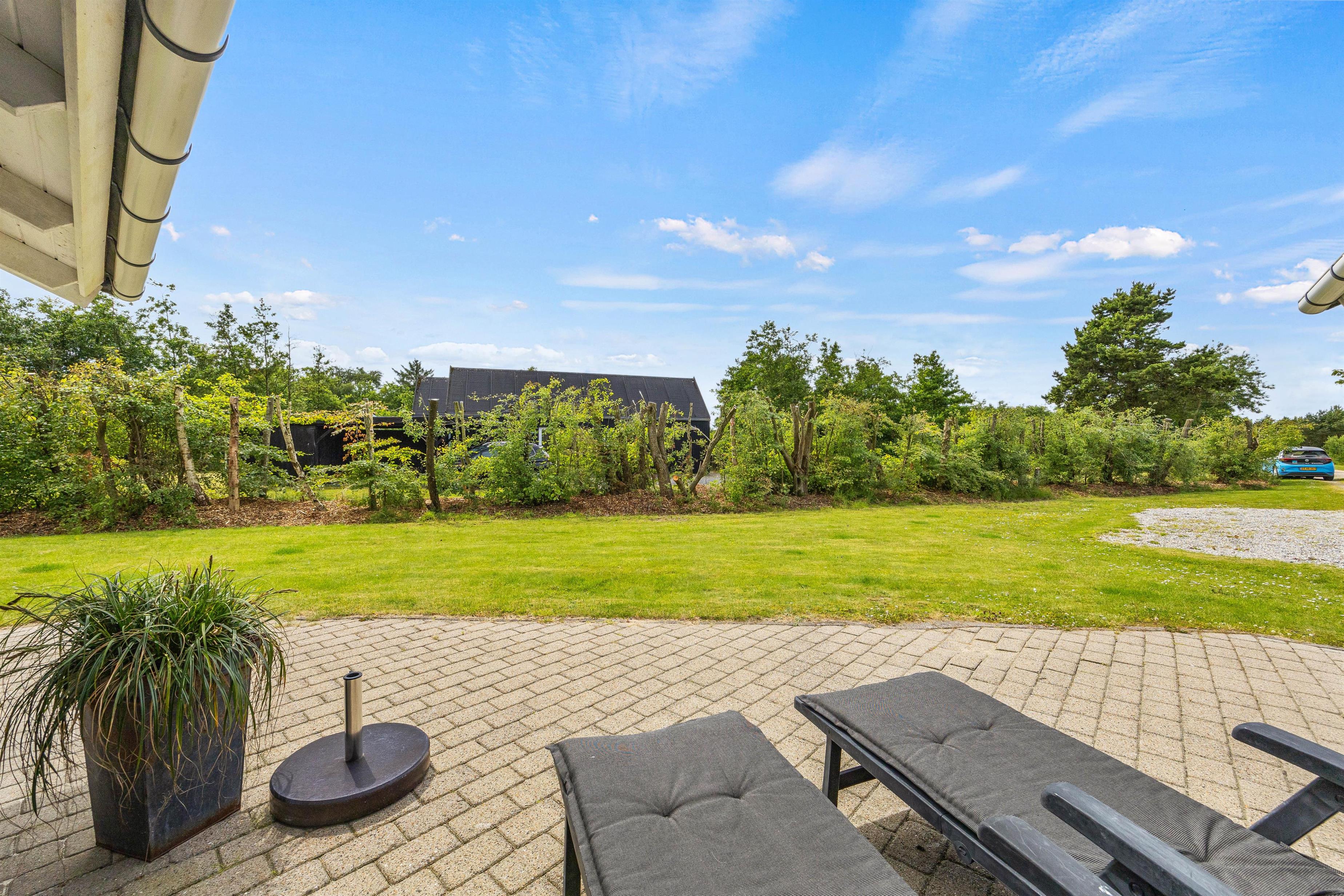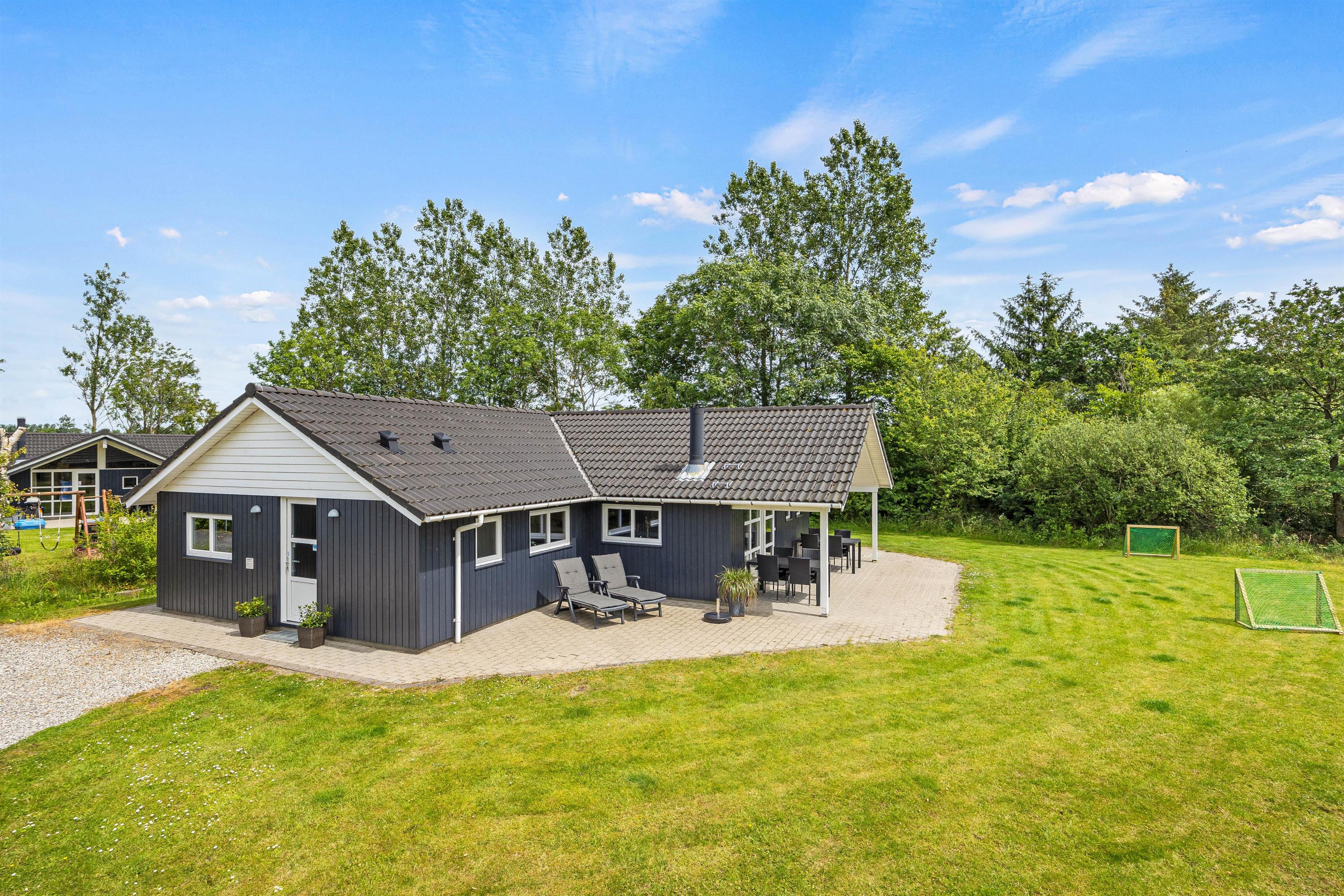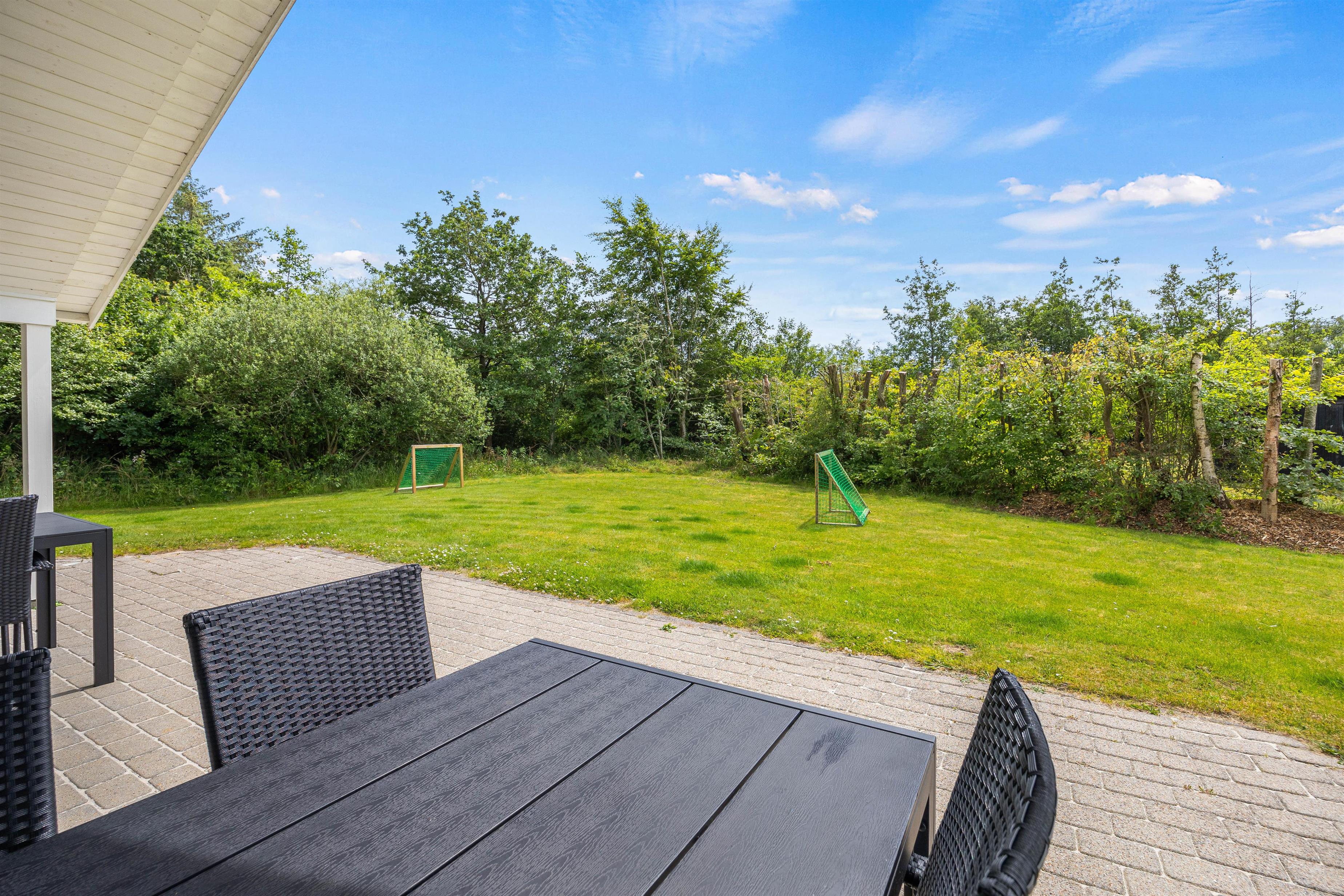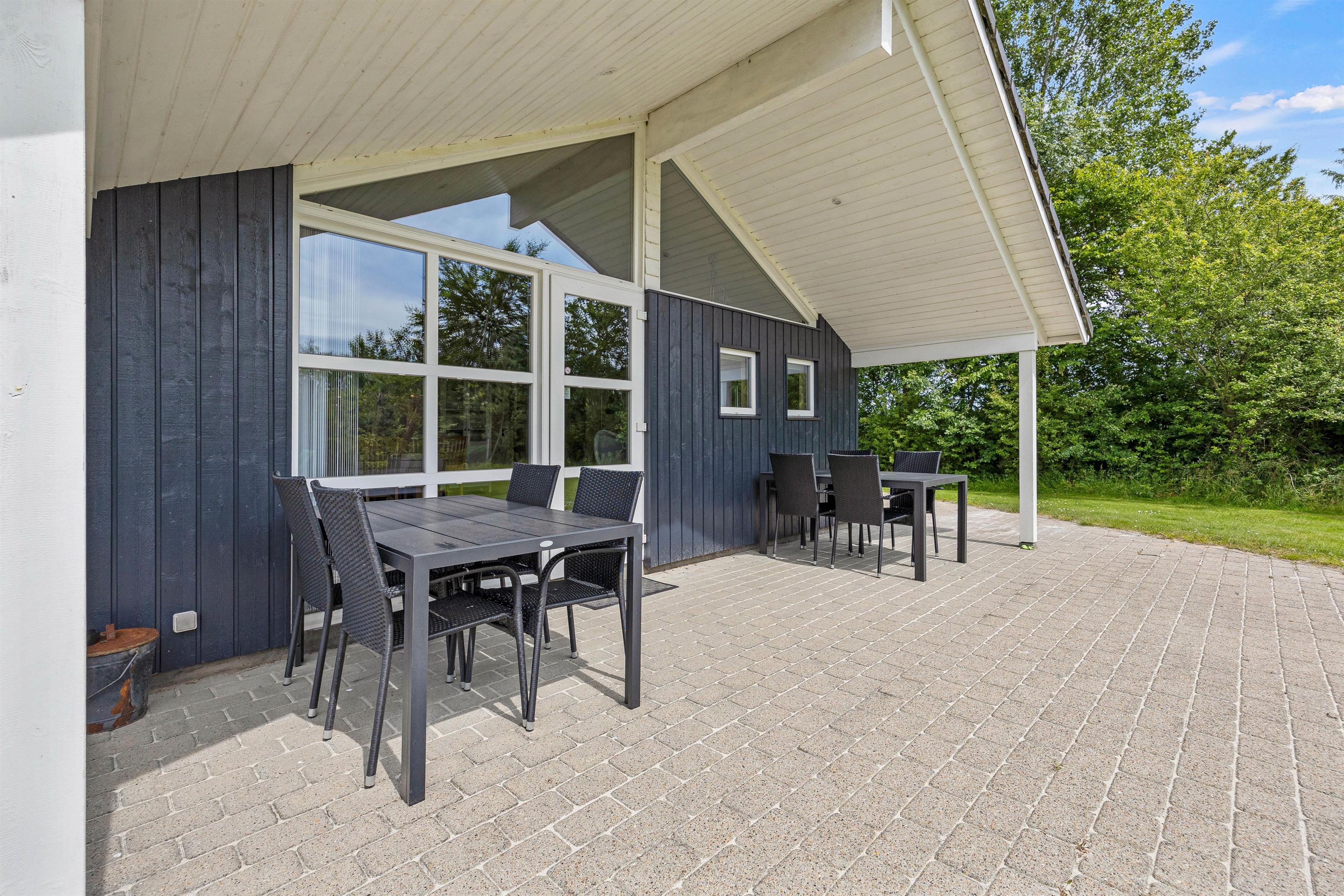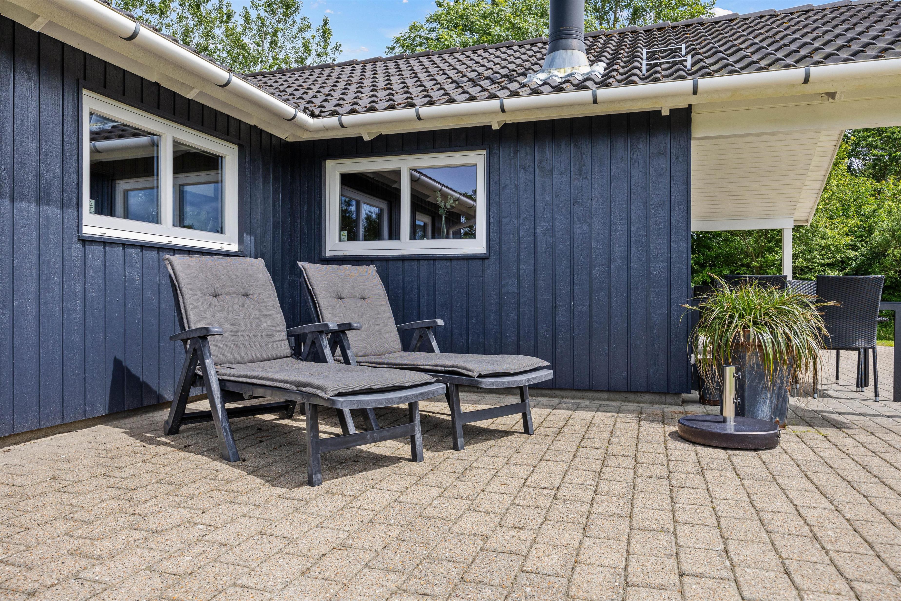 Udendørs byder sommerhuset på en indbydende kombination af både åbne og overdækkede terrasser, hvilket giver jer mulighed for at nyde udendørslivet uanset vejret.
