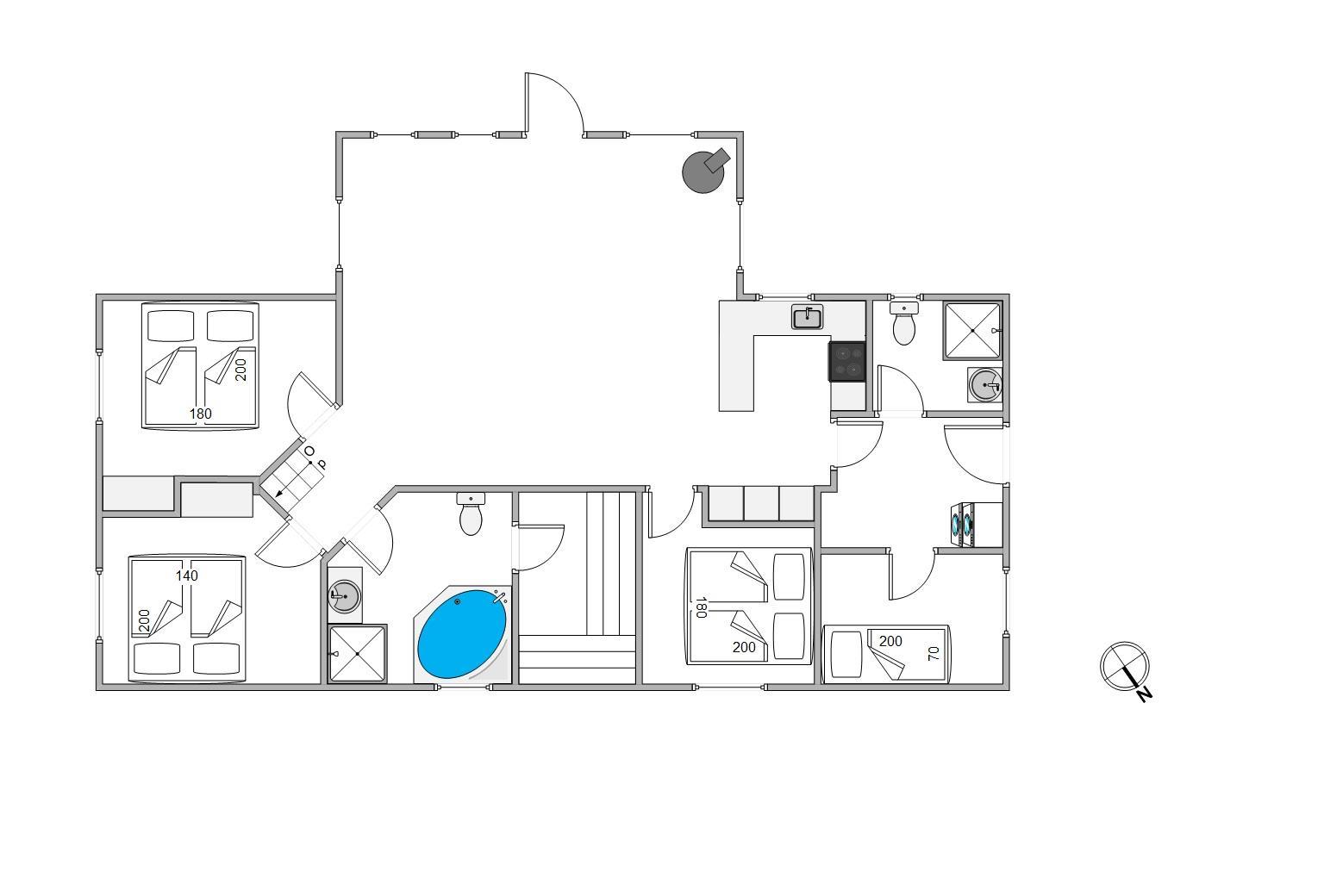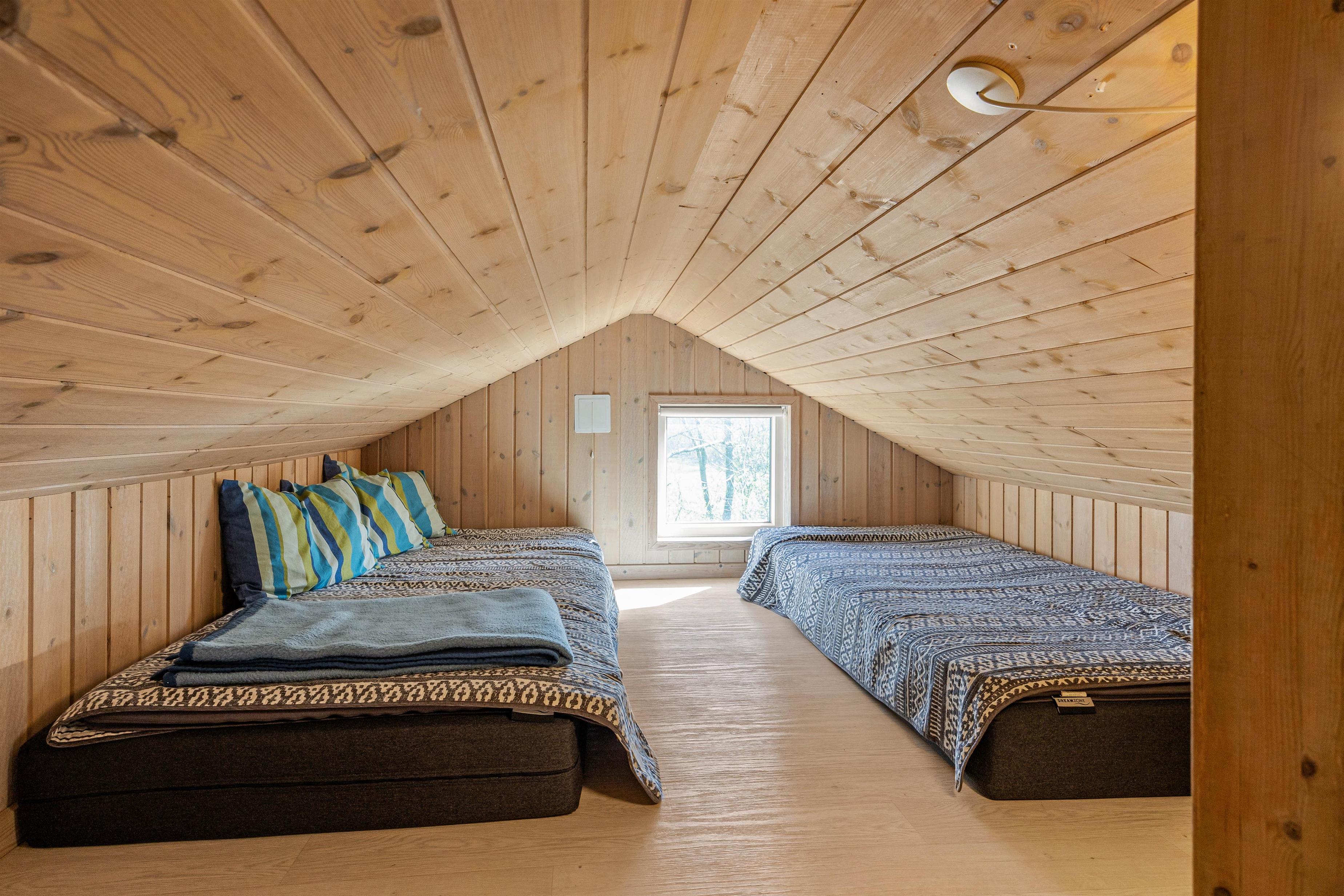 Sommerhuset tilbyder gode sovefaciliteter, der sikrer en behagelig nattesøvn for alle gæster. Der er 4 rummelige soveværelser, som hver især er indrettet med komfortable senge, der inviterer til afslapning og ro efter en lang dag. Hertil kommer en hyggelig hems. Denne opdeling gør huset ideelt for større grupper som familier eller venner, der ønsker at dele oplevelsen af en ferie sammen, men samtidig værdsætter privatliv og komfort.