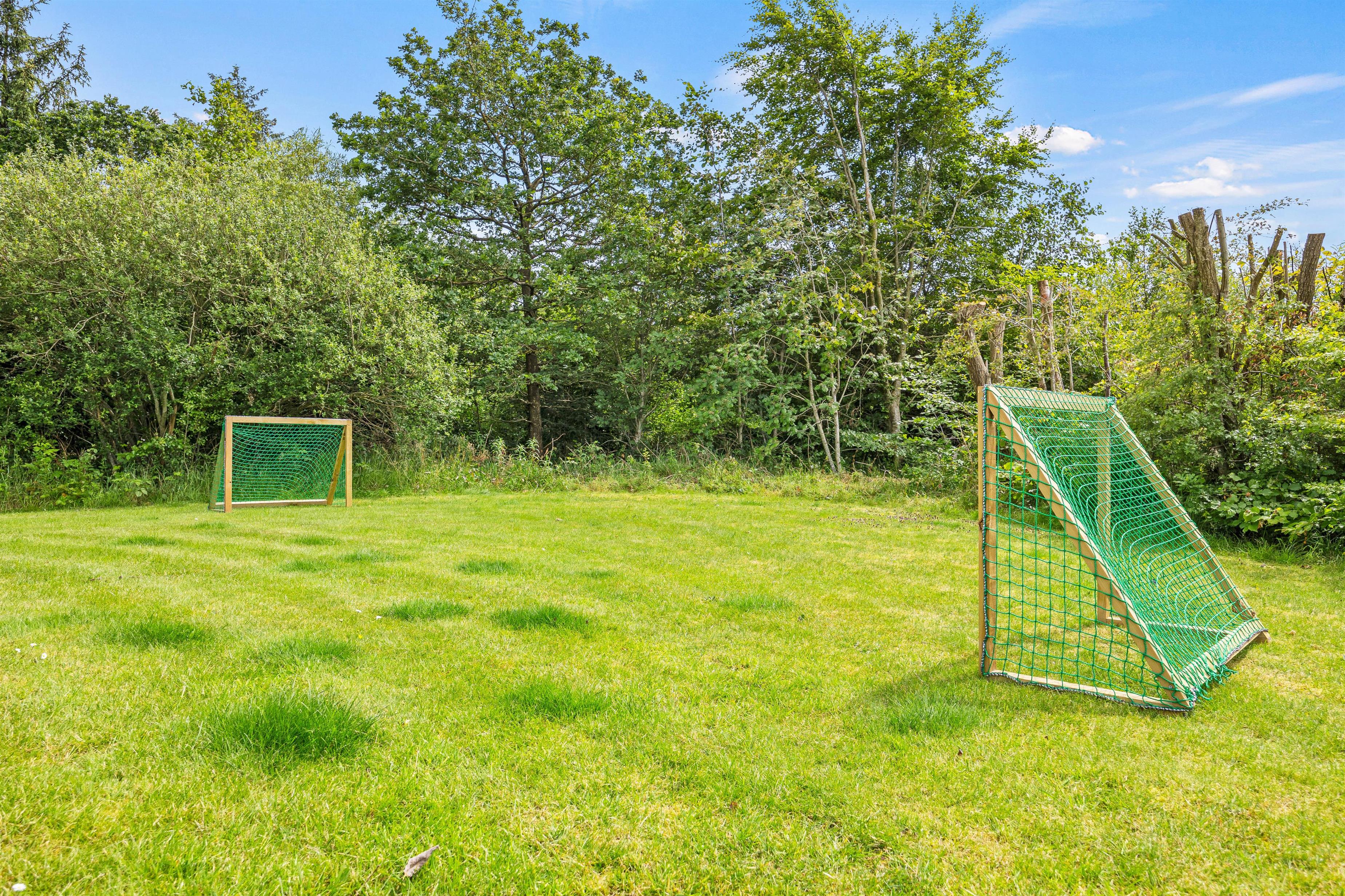Sommerhuset er placeret på en stor plænegrund, der ikke kun bidrager til en dejlig udsigt, men også giver masser af plads til børn og voksne at lege og udforske. Her kan I organisere forskellige udendørsaktiviteter, fra boldspil til stille bålstunder.